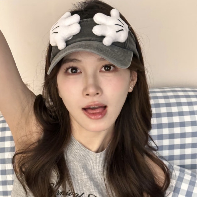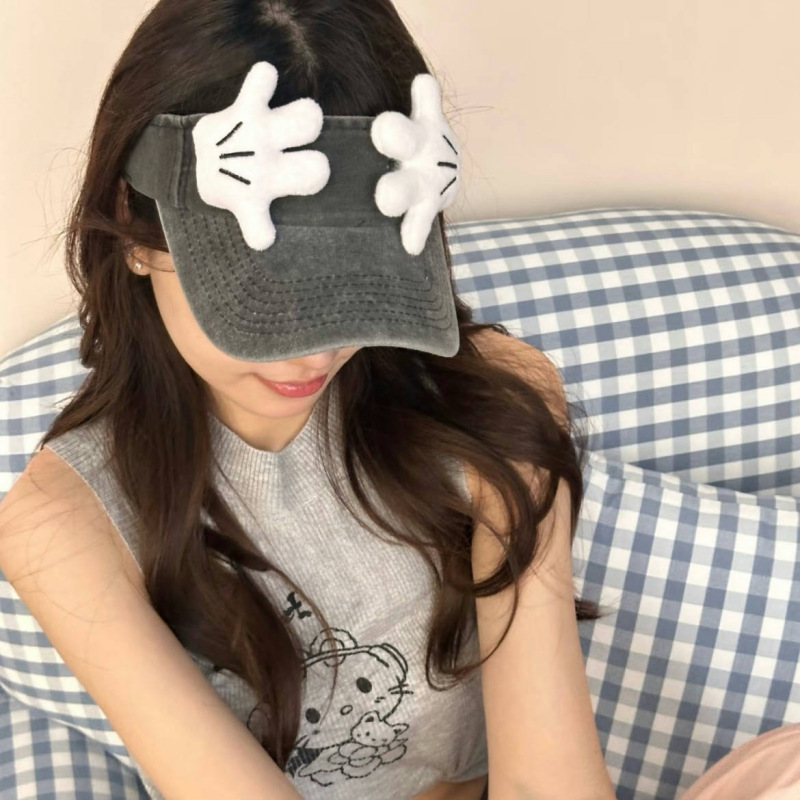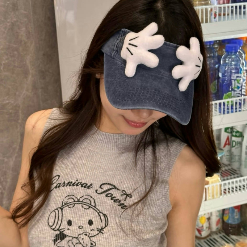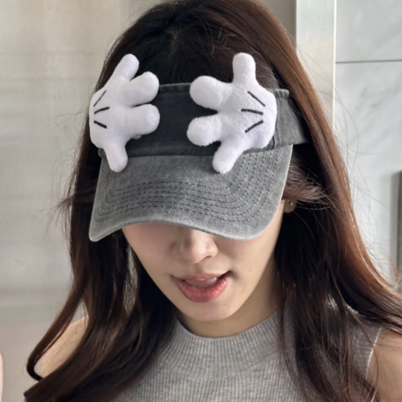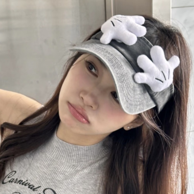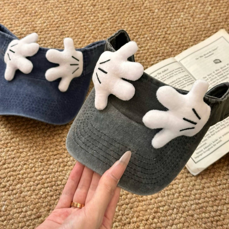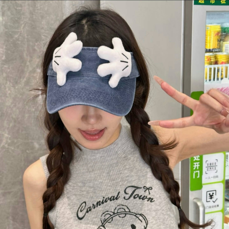 귀여운 데님 미키 팜 선 스크린 모자 여름 귀여운 안티 UV 선 스크린 인터넷 인기 자전거 야외 만화 여성스토어 가기