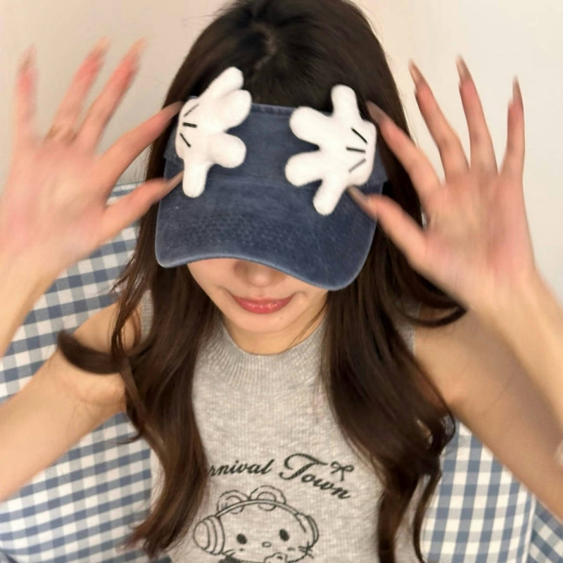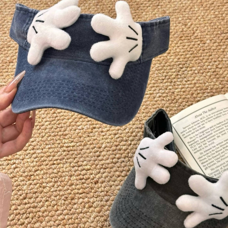 귀여운 데님 미키 팜 선 스크린 모자 여름 귀여운 안티 UV 선 스크린 인터넷 인기 자전거 야외 만화 여성
