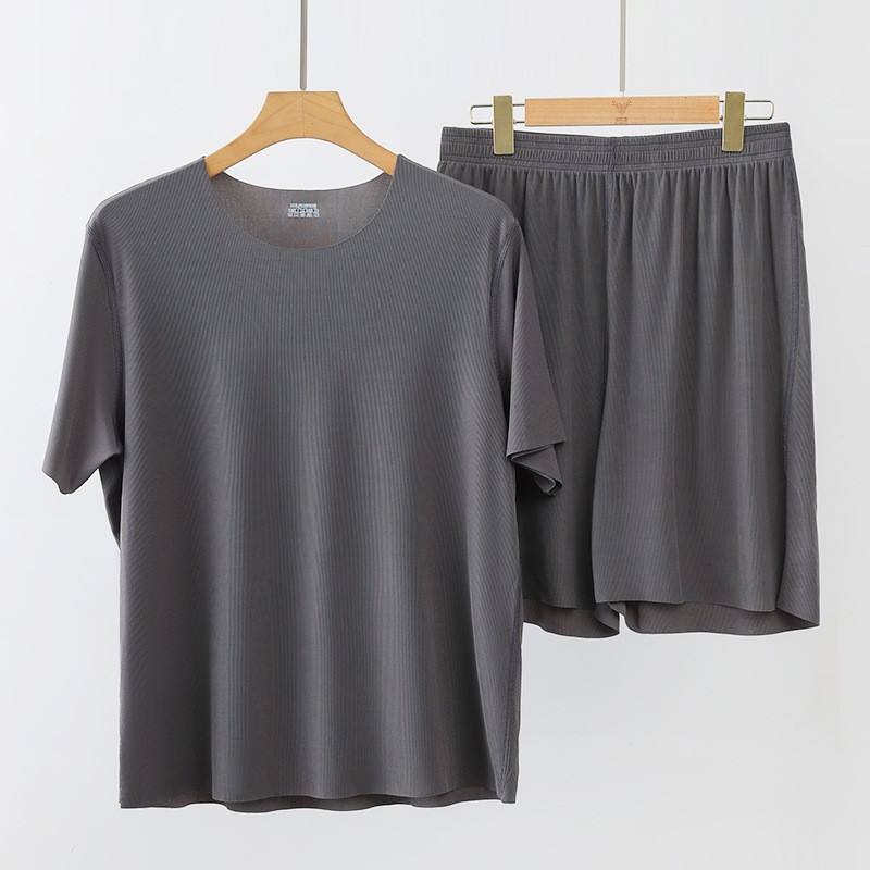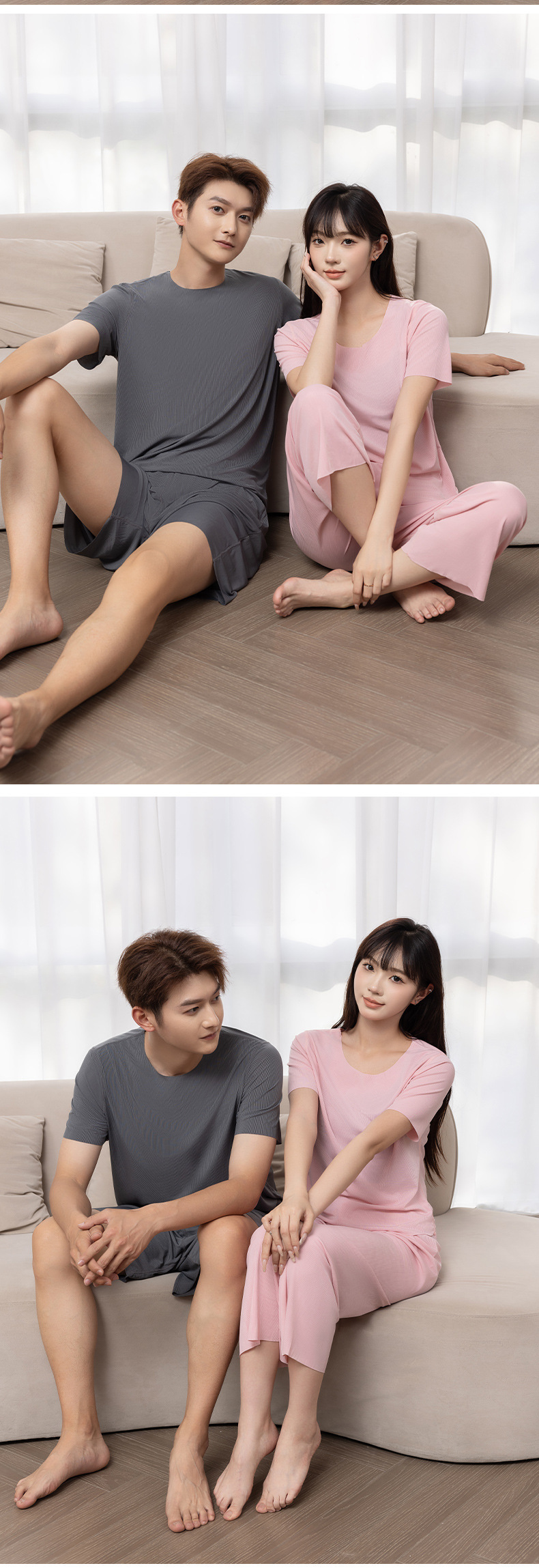 커플의 멋진 잠옷 여성의 여름 아이스 실크 스레드 얇은 홈 바지 아웃웨어 반팔 홈 의류 세트