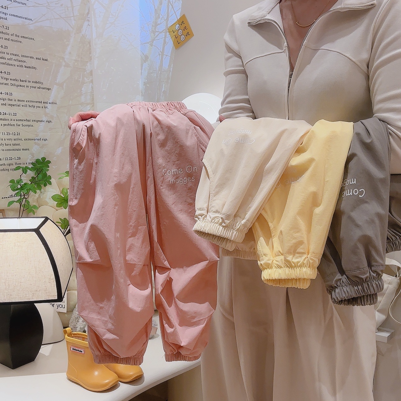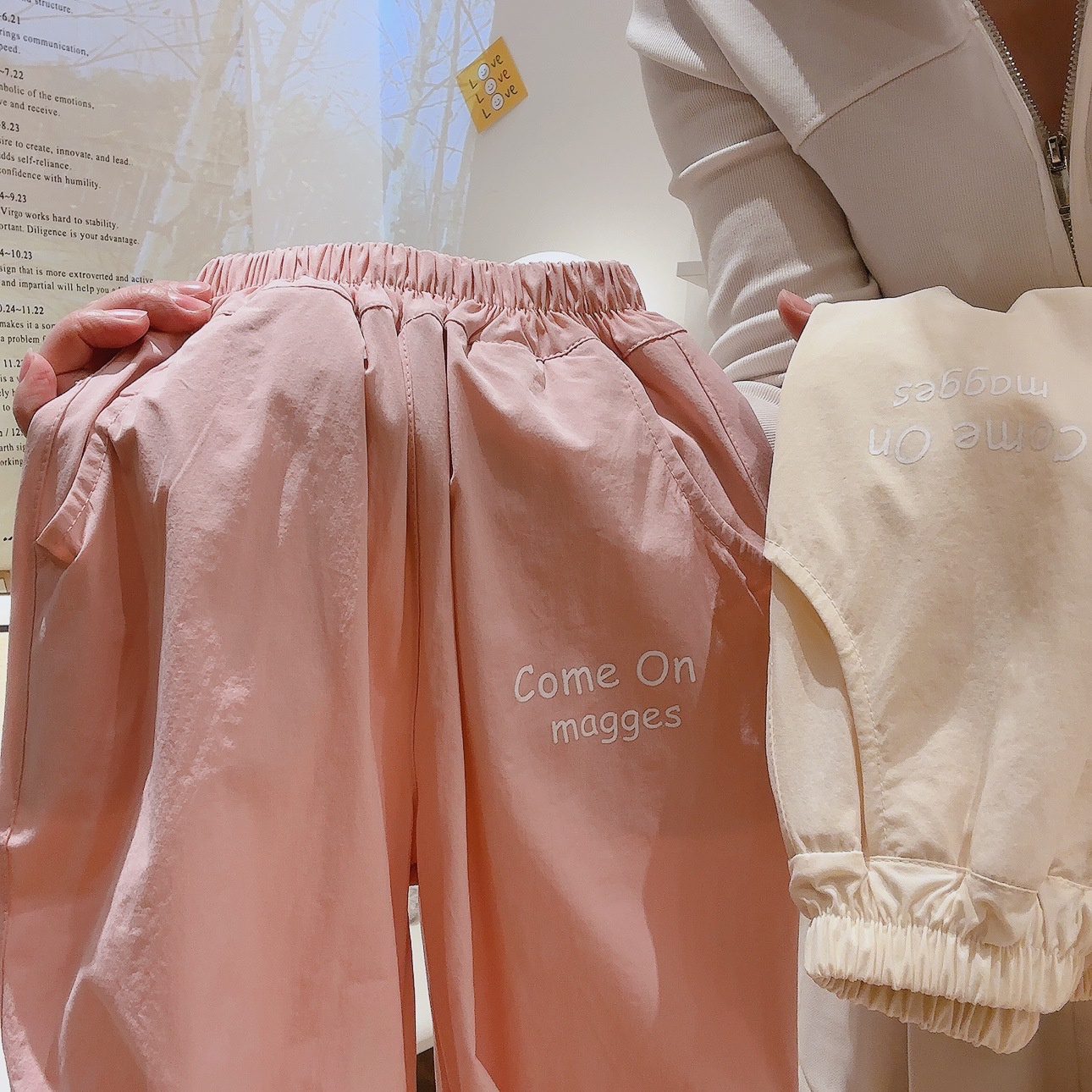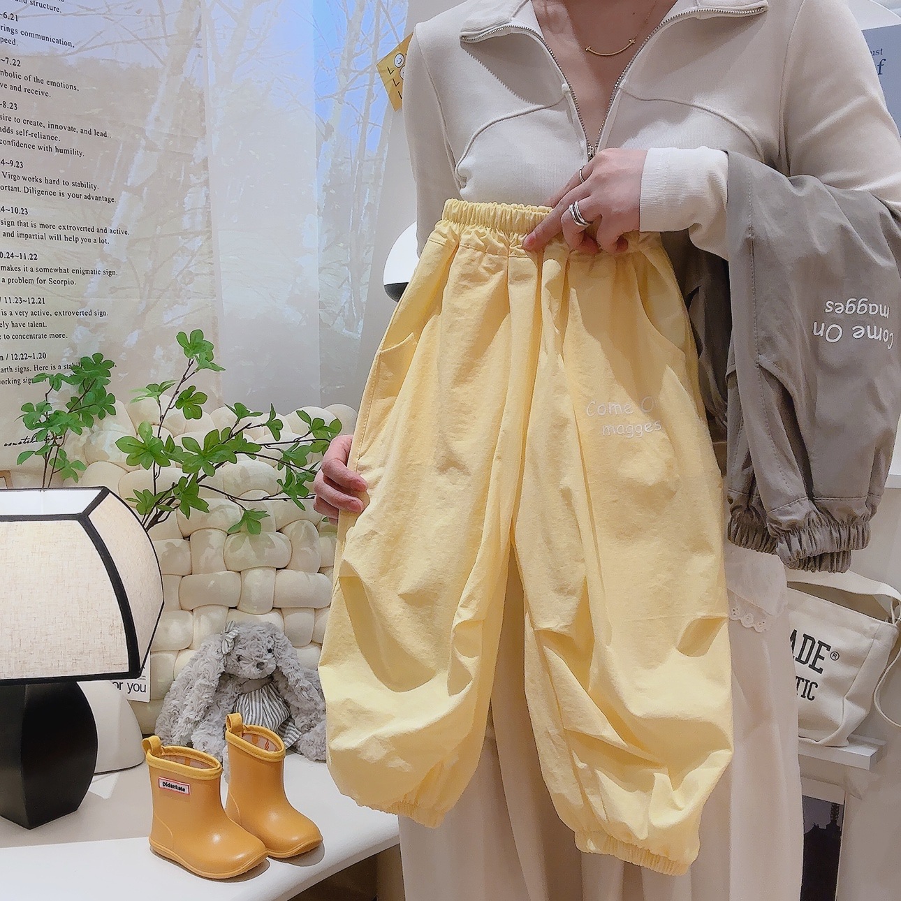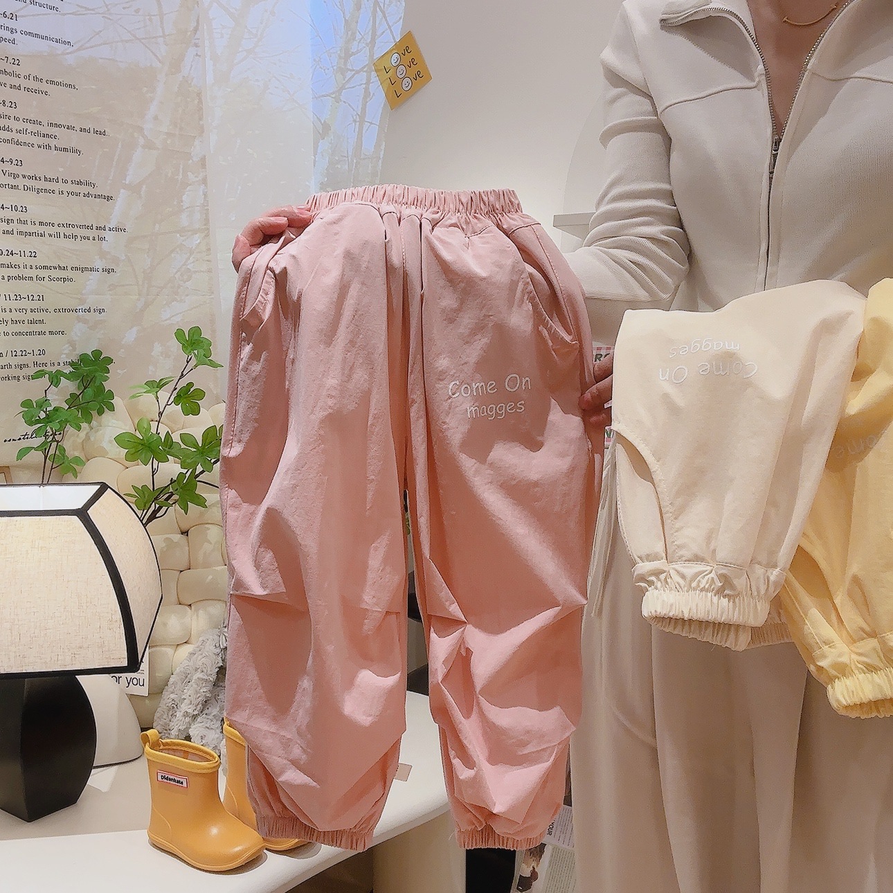 아동 작업복 바지 단색 주름 디자인 나일론 속건 스포츠 바지 얇고 헐렁한 모기 방지 바지 어린이용스토어 가기