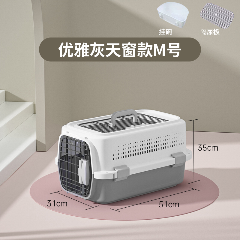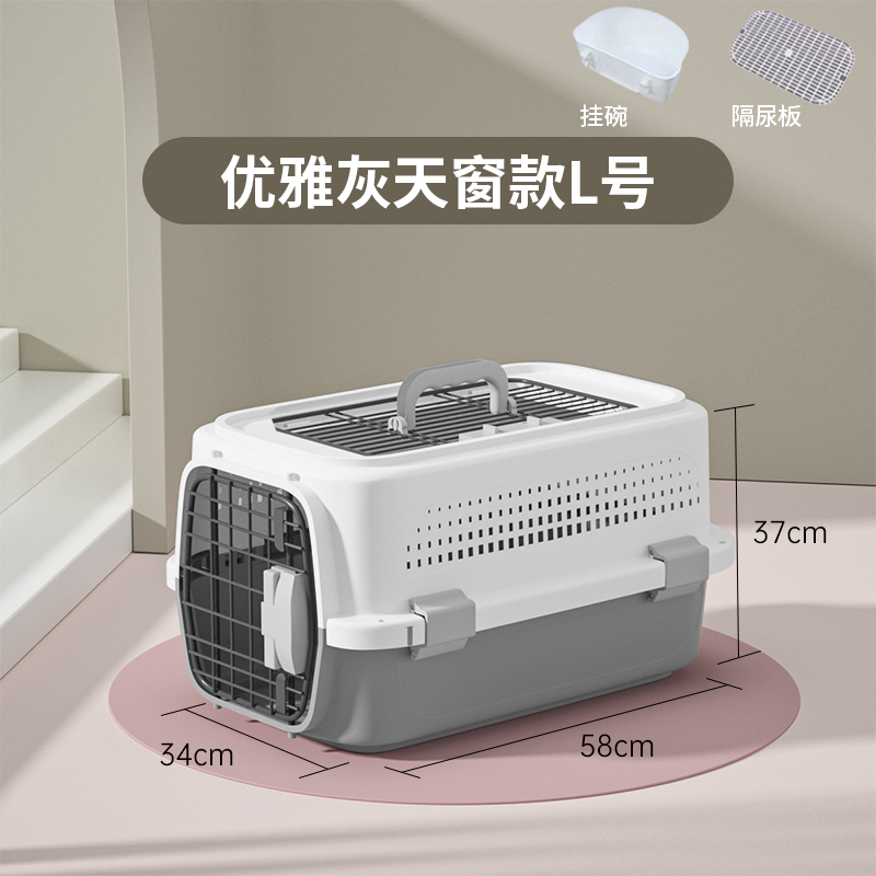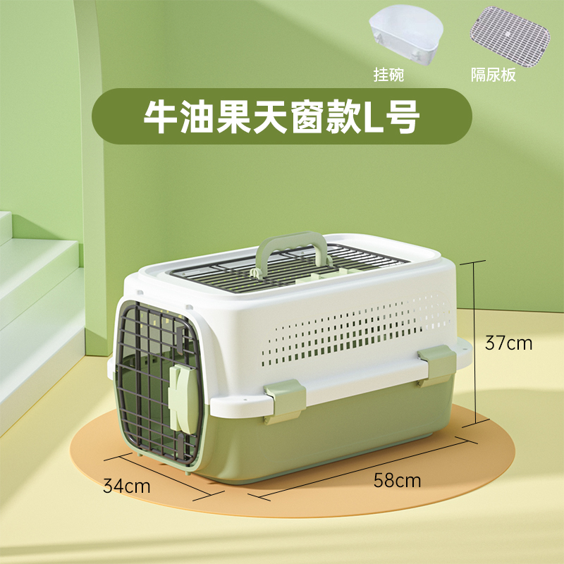 • 애완동물 복지 그래파이트 그린 항공 상자 + 걸이 그릇 + 소변 보드, 개와 고양이에게 적합(1세 미만 개와 고양이에게 권장)