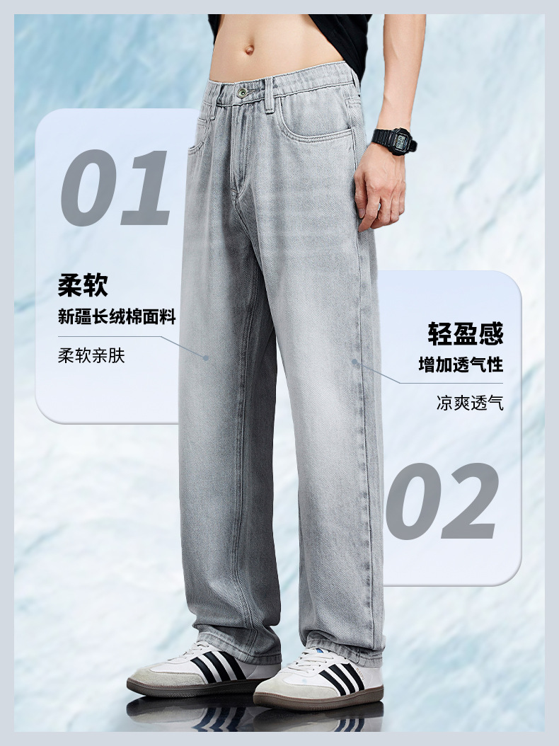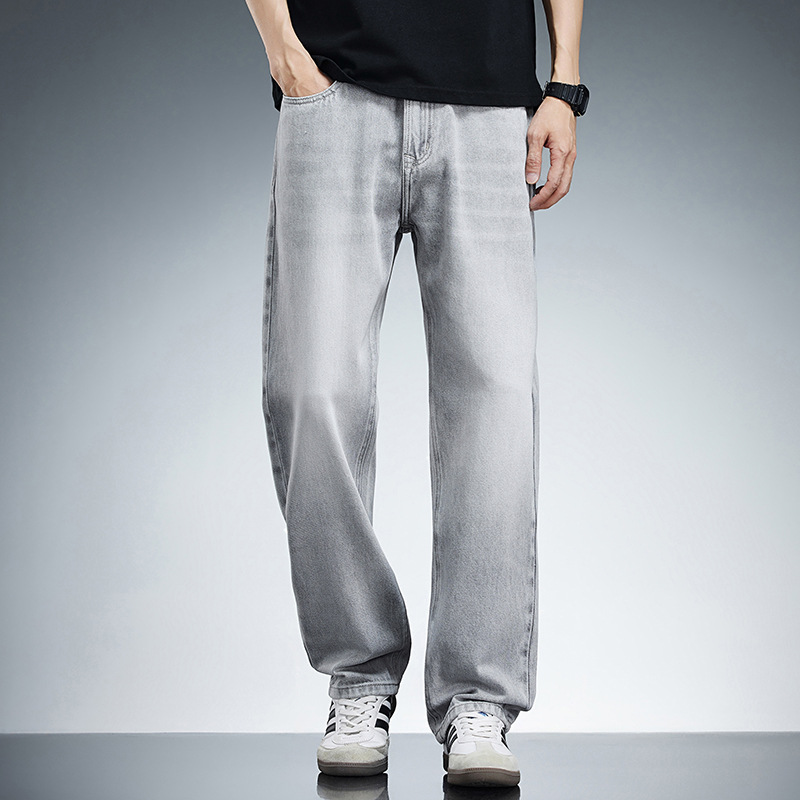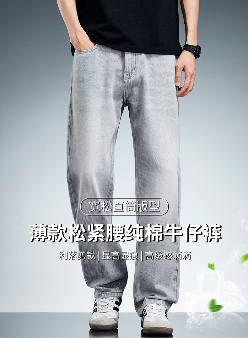 9915 플러스 사이즈 남성 여름 새로운 미국 스타일 하이 스트리트 퓨어 코튼 청바지 남성용 느슨한 얇은 세탁 스트레이트 바지