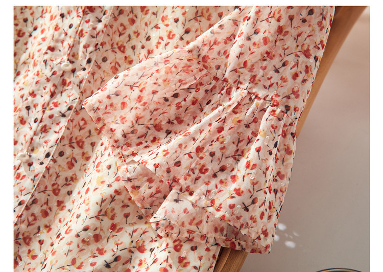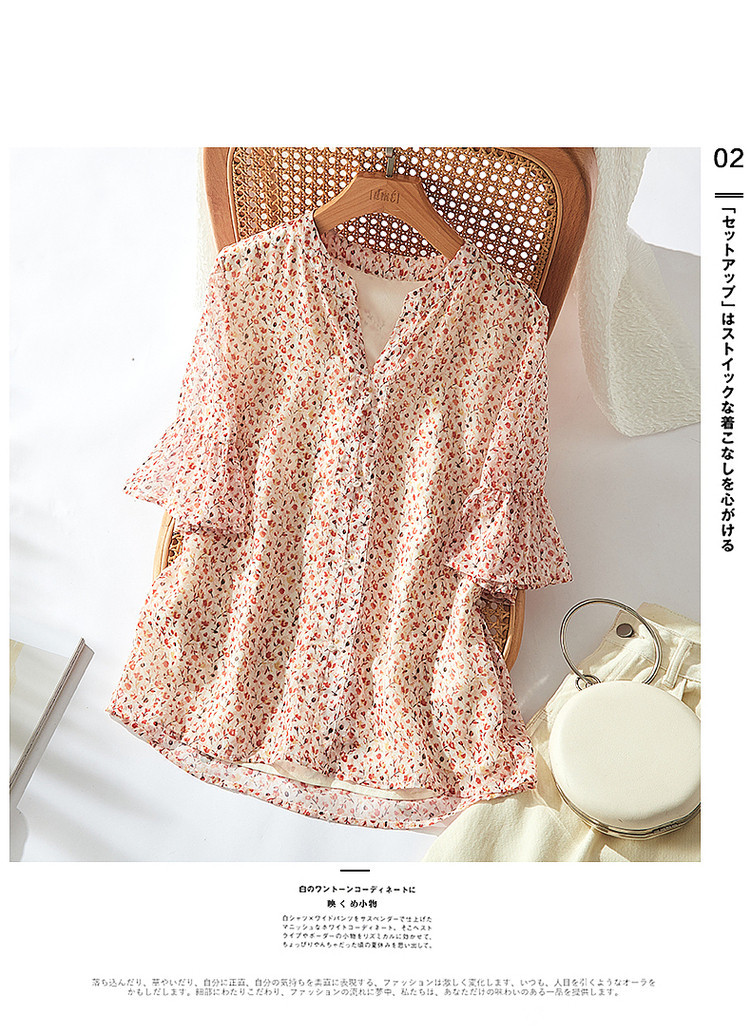 2025 년 여름 새로운 도착 칼라 예술적 주름 인쇄 셔츠 여성 최고 경량 꽃 쉬폰 셔츠