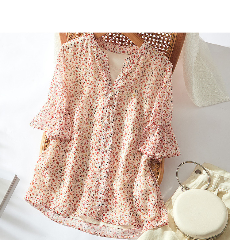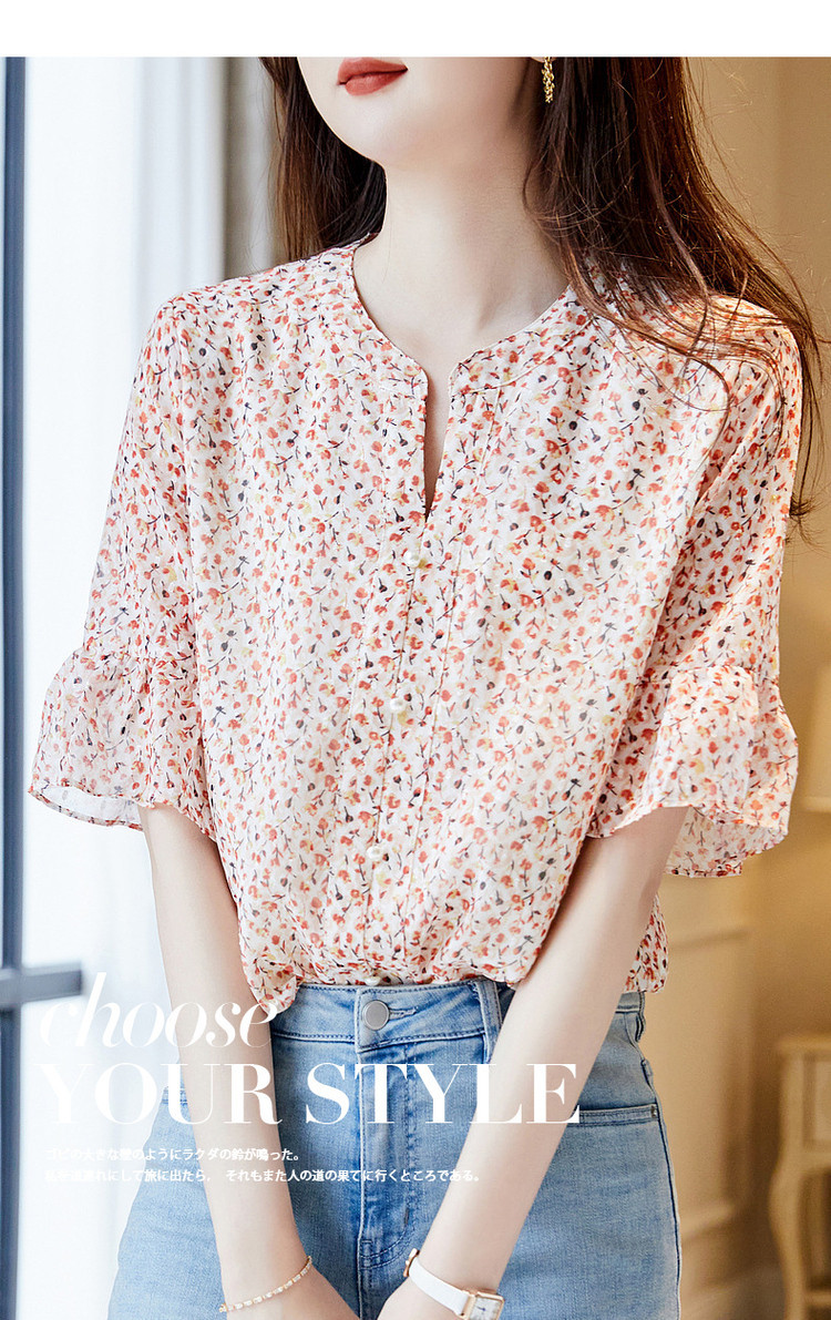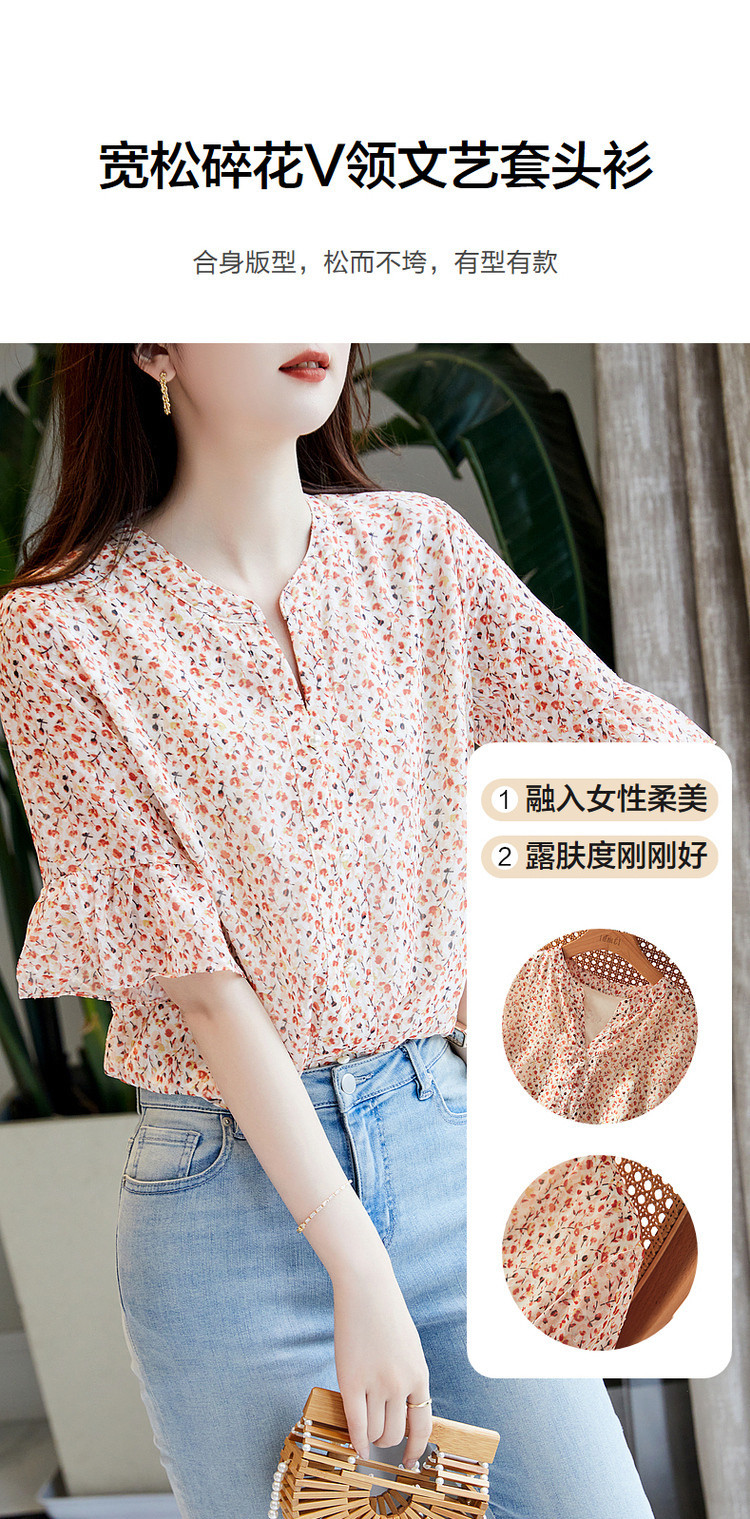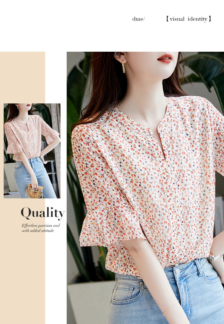 2025 년 여름 새로운 도착 칼라 예술적 주름 인쇄 셔츠 여성 최고 경량 꽃 쉬폰 셔츠스토어 가기
