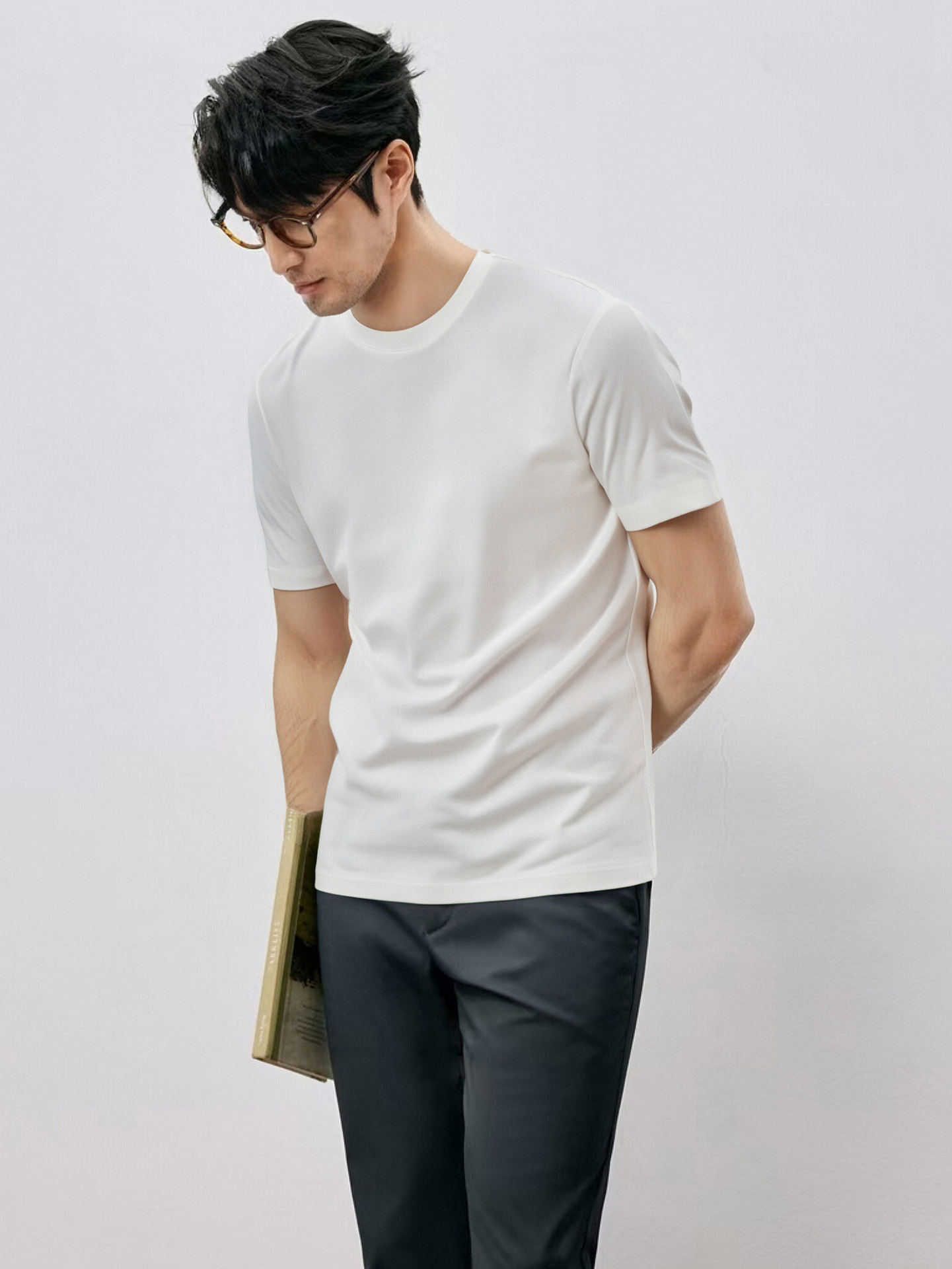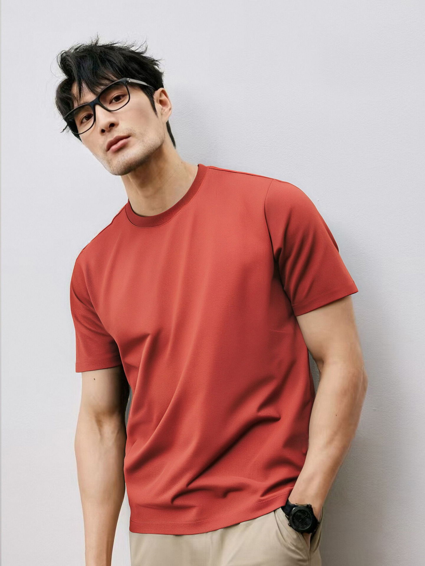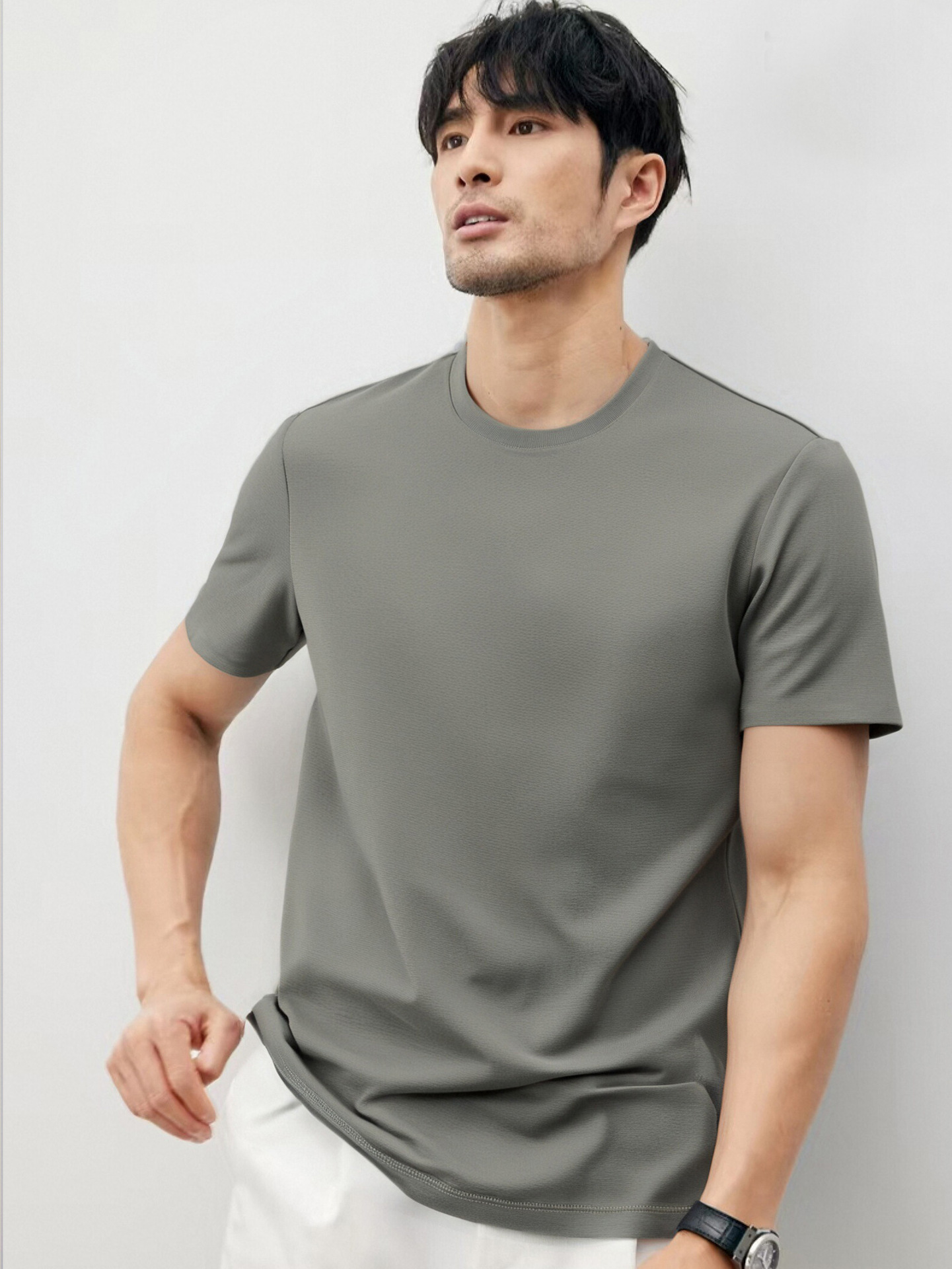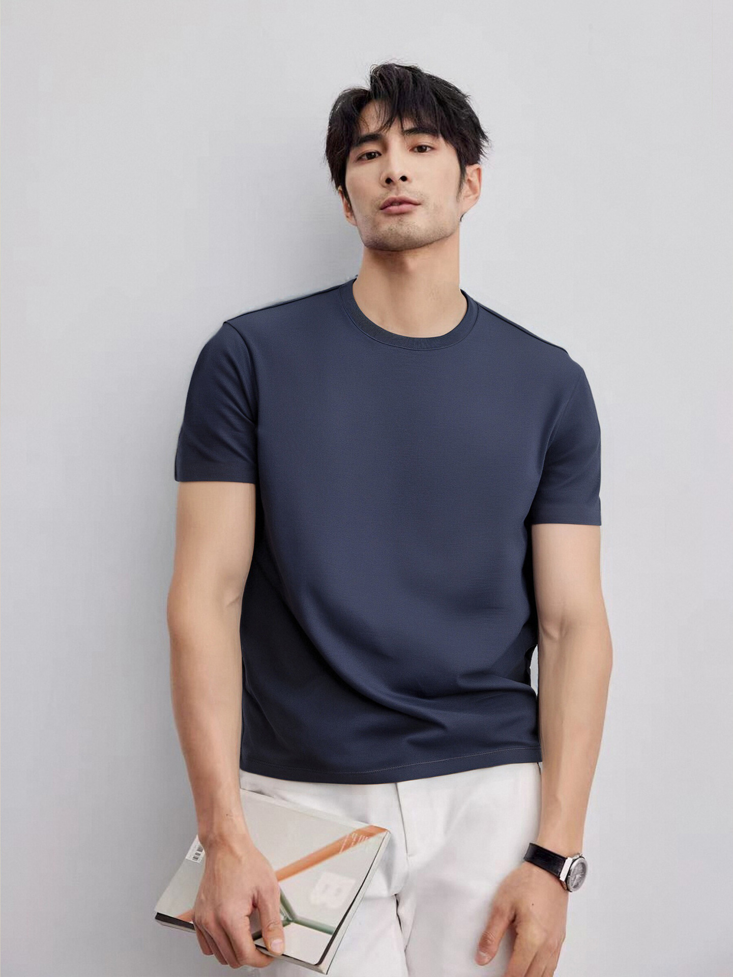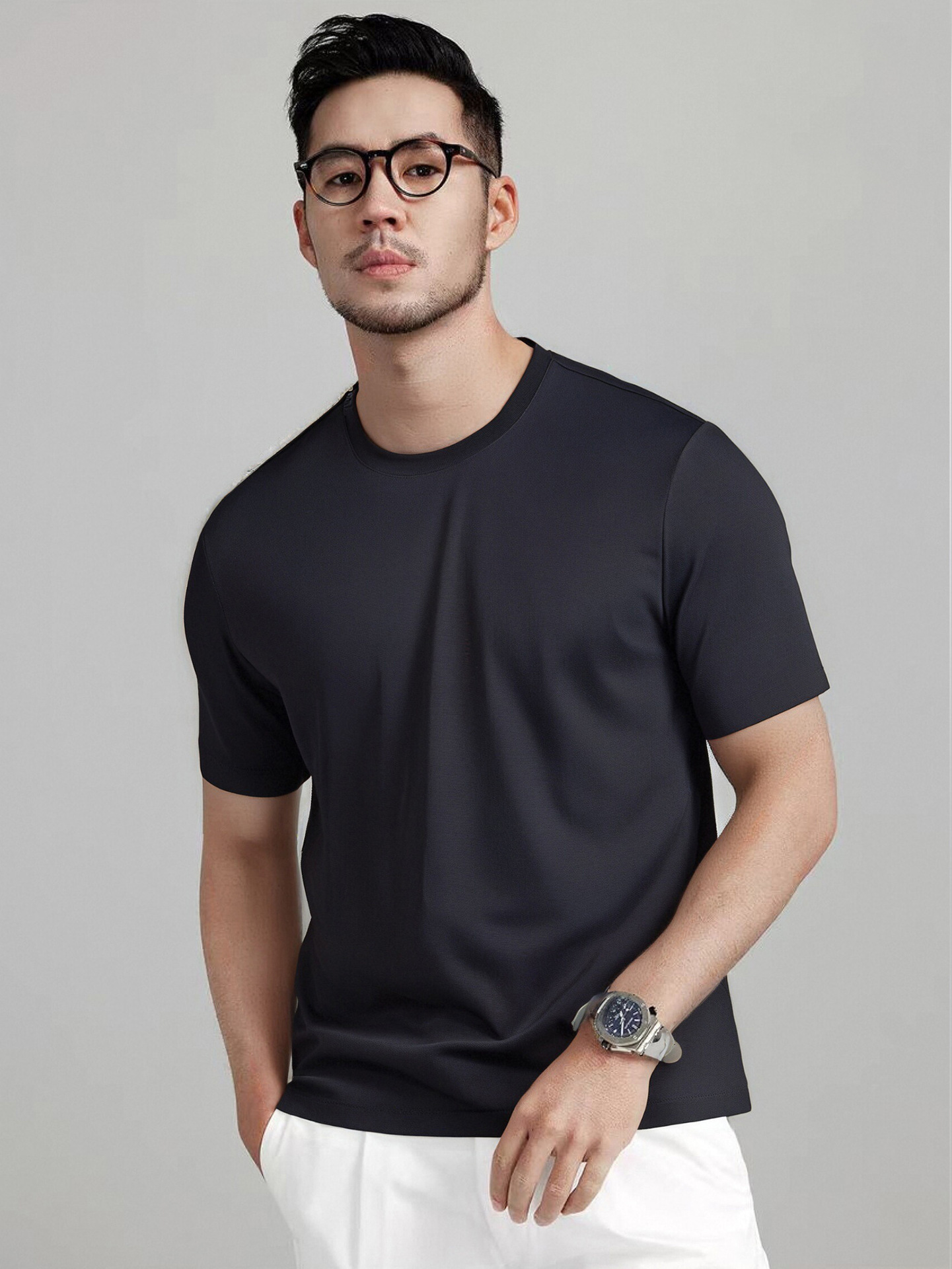 하이 엔드 액체 암모니아 소프트 코튼 반팔 티셔츠베이스 여름 캐주얼 라운드 넥베이스 셔츠 남자의 단색 올 매치 탑