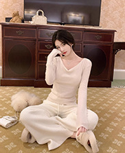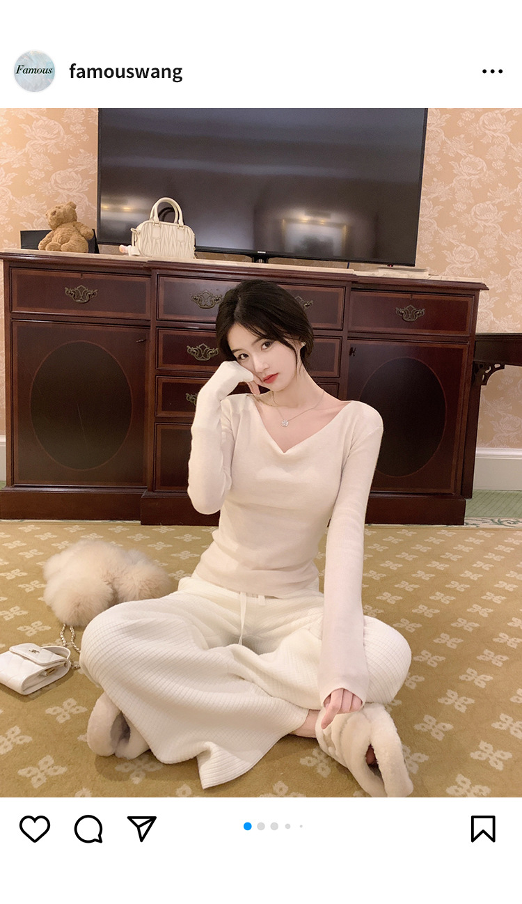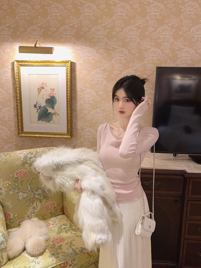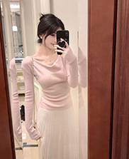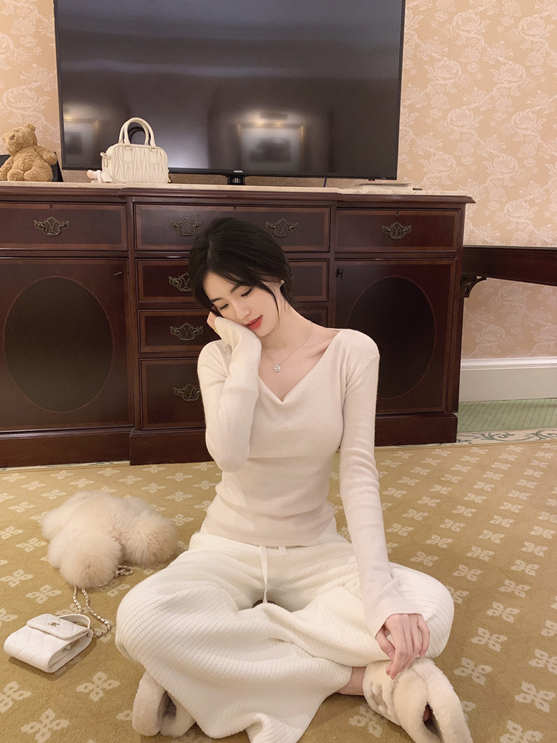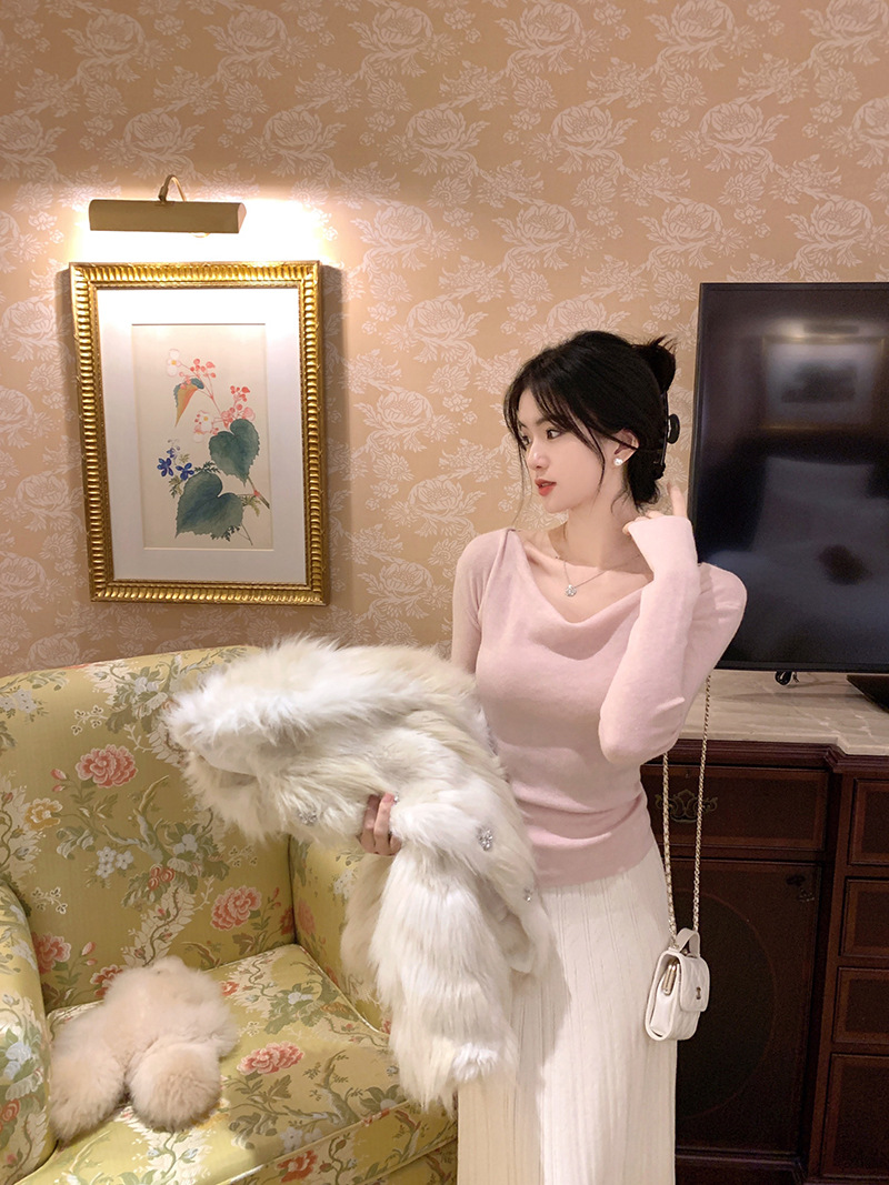 봄과 가을 새로운 불규칙한 니트 스웨터 긴팔 티셔츠 스웨터 바닥 셔츠 여성 스윙 칼라 슬림 슬리밍 탑스토어 가기