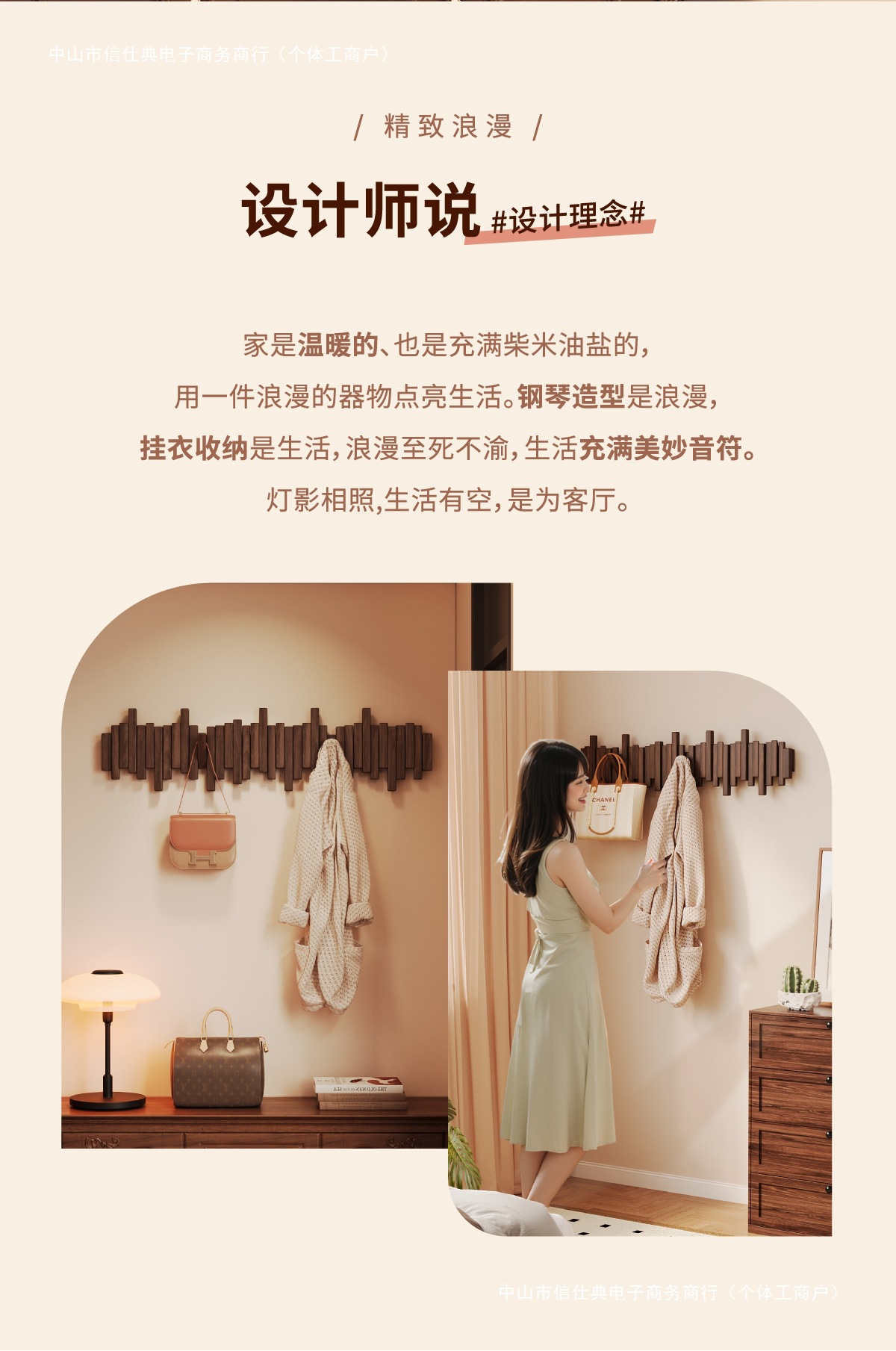 피아노 건반 옷걸이, 원목 벽걸이 후크, 침실 현관 입구, 펀치 없는 코트 랙스토어 가기