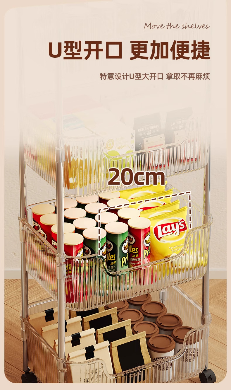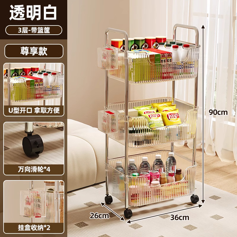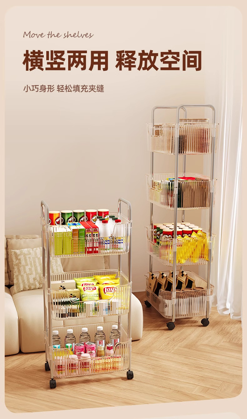 아크릴 스낵 보관함 바닥에서 천장까지 다층 이동식 트롤리 고급스러운 가정용 거실 도서 보관함스토어 가기