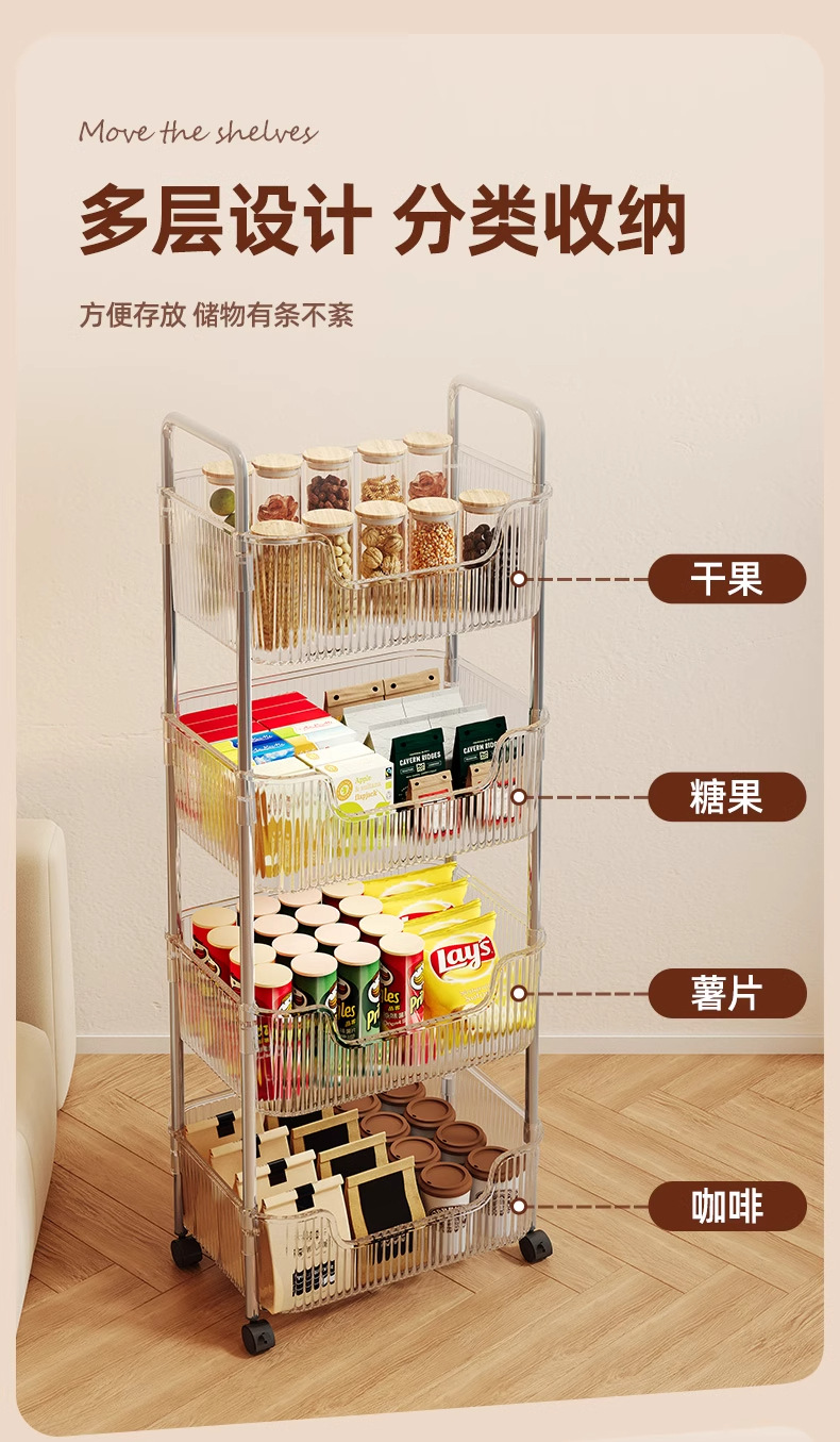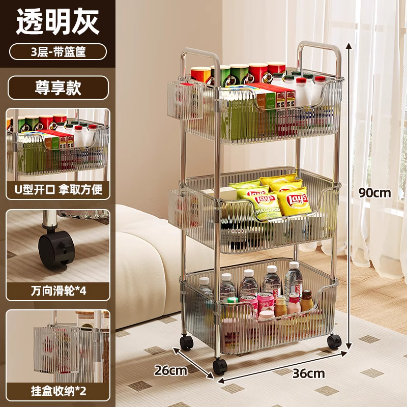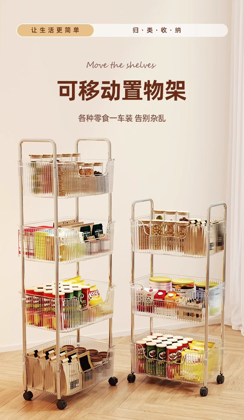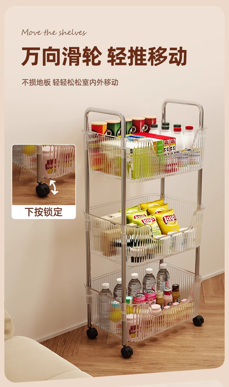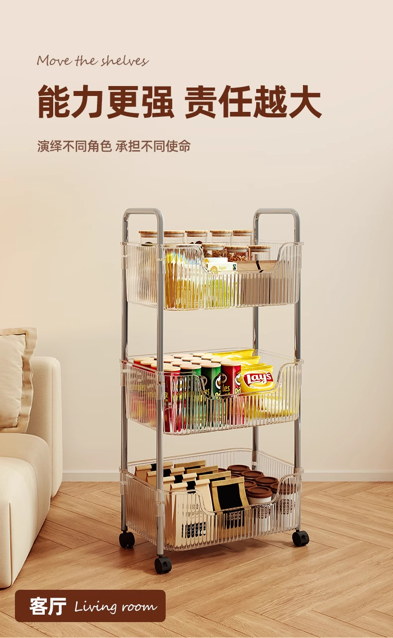 아크릴 스낵 보관함 바닥에서 천장까지 다층 이동식 트롤리 고급스러운 가정용 거실 도서 보관함