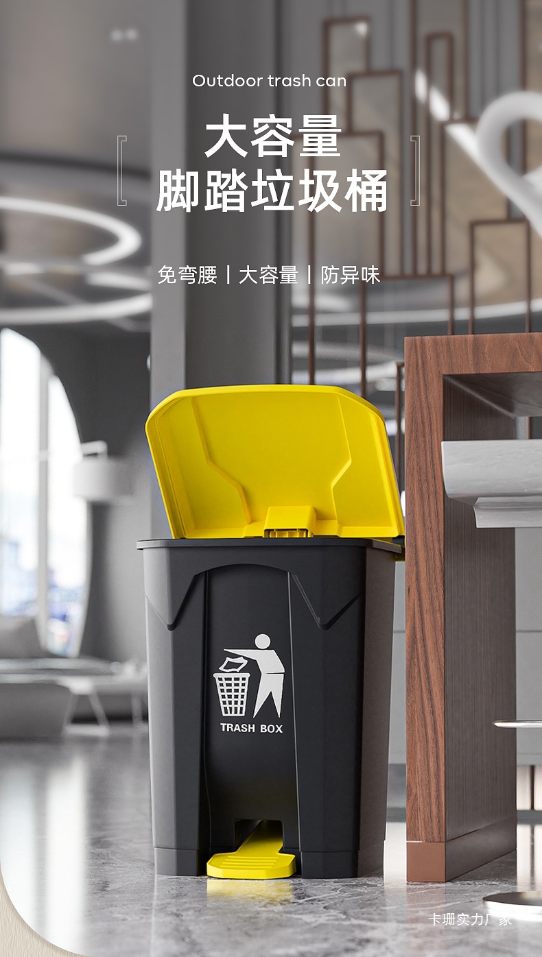 뚜껑이 있는 상업용 대형 페달식 쓰레기통, 대형, 대용량, 주방, 거실, 야외 위생 마당, 안뜰