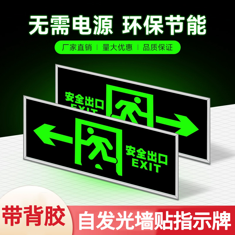 안전구출표지판, 두꺼운 은색 테두리 벽 스티커, 전원 연결 없이 자체 발광 야광 표시판, 화재 표시판