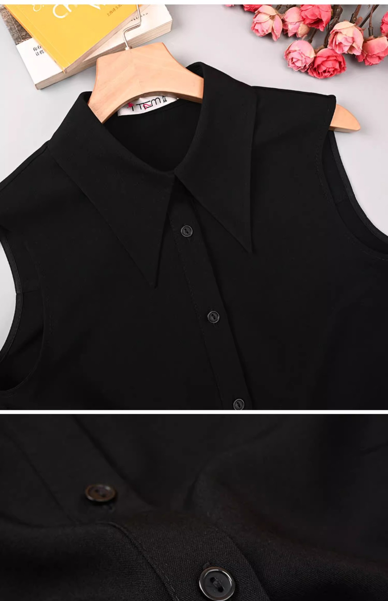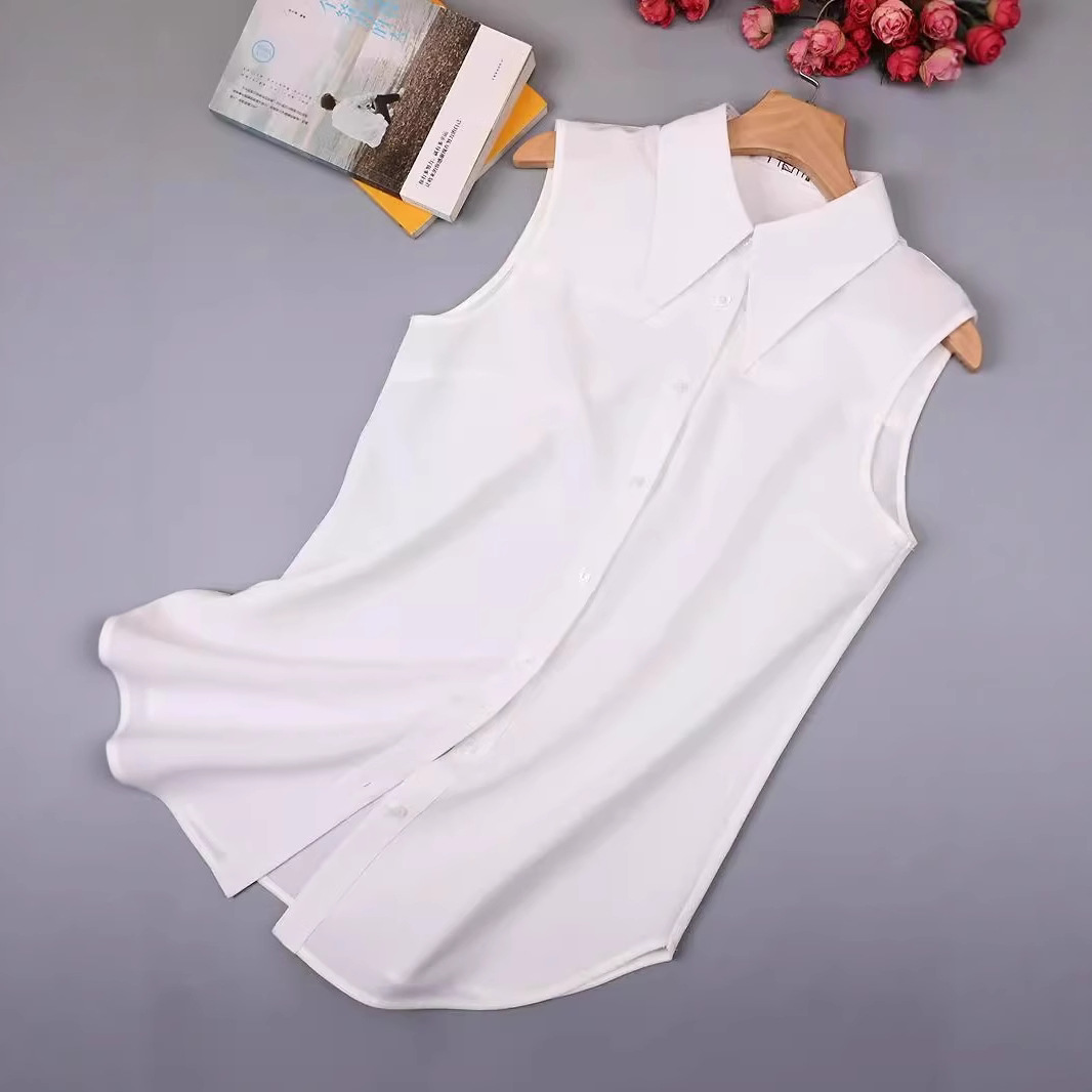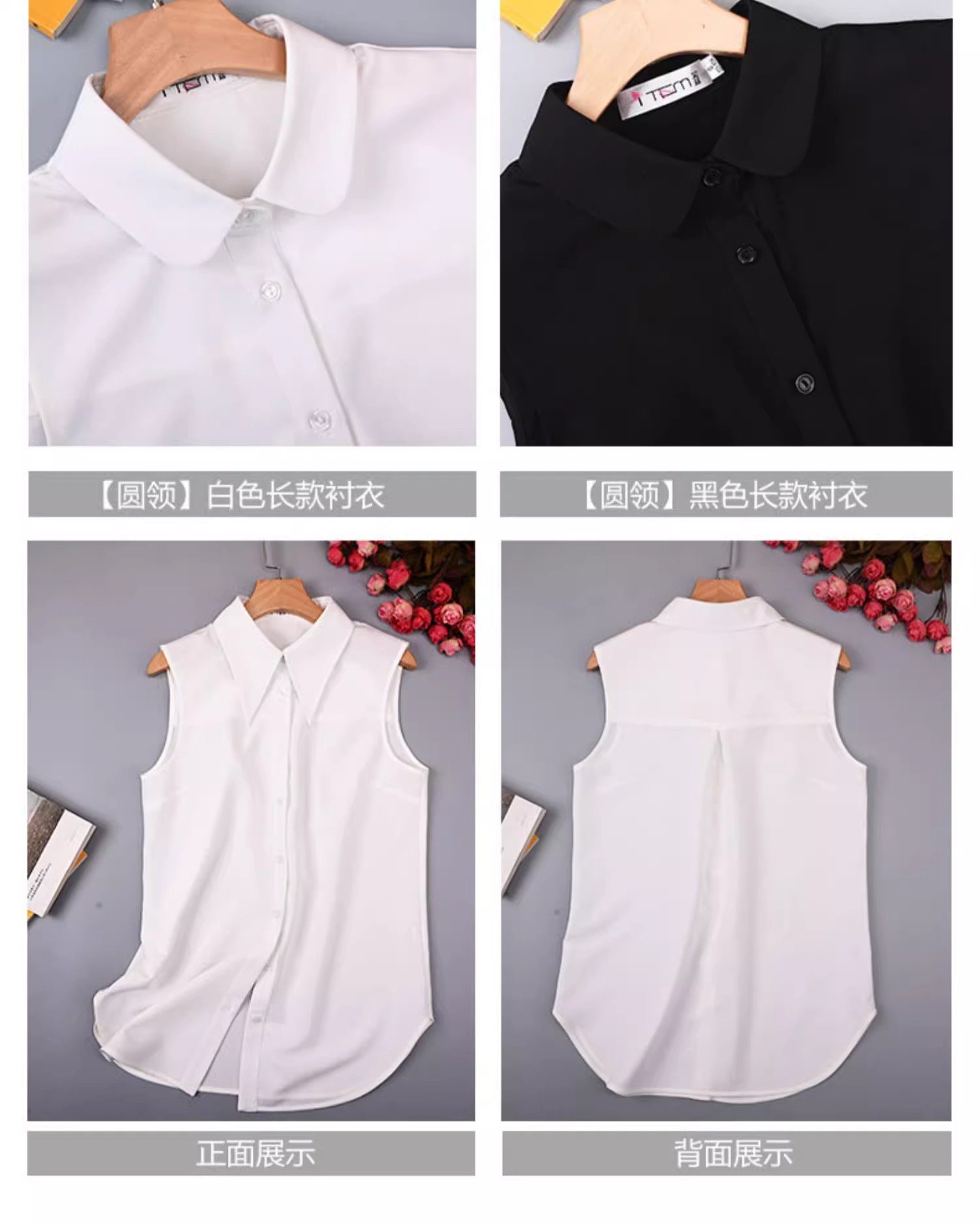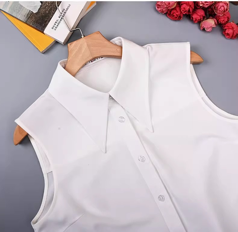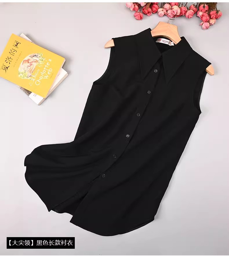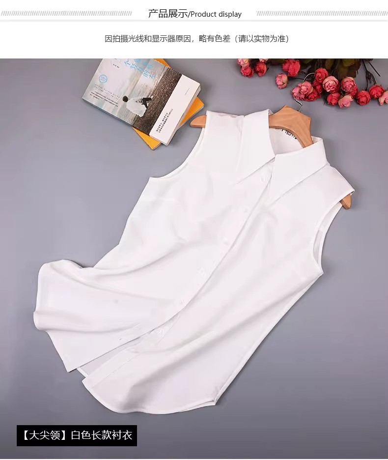빅 포인트 칼라 민소매 조끼 화이트 셔츠 전문 셔츠 이너 레이어드 셔츠 한국 스타일 탑 여성 라펠 쉬폰