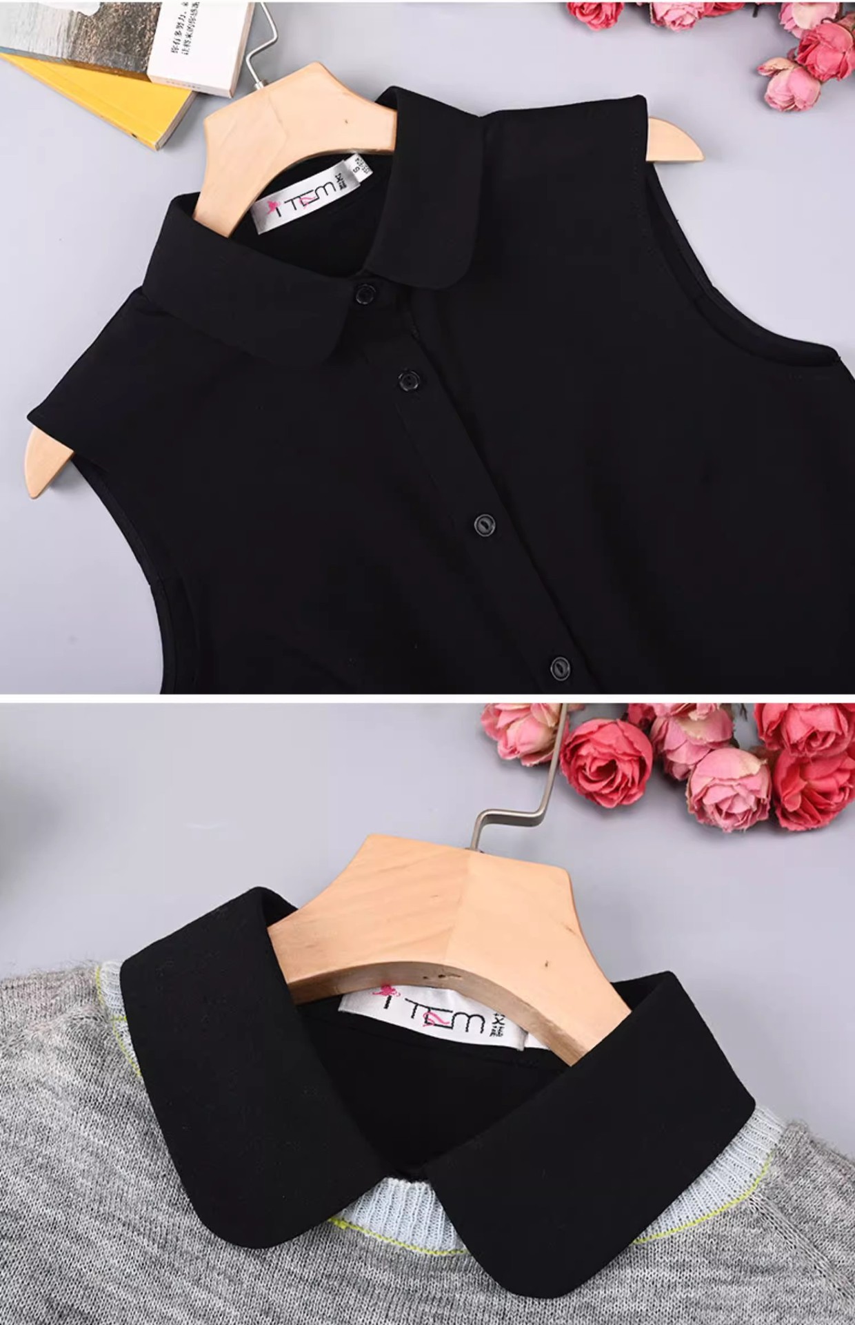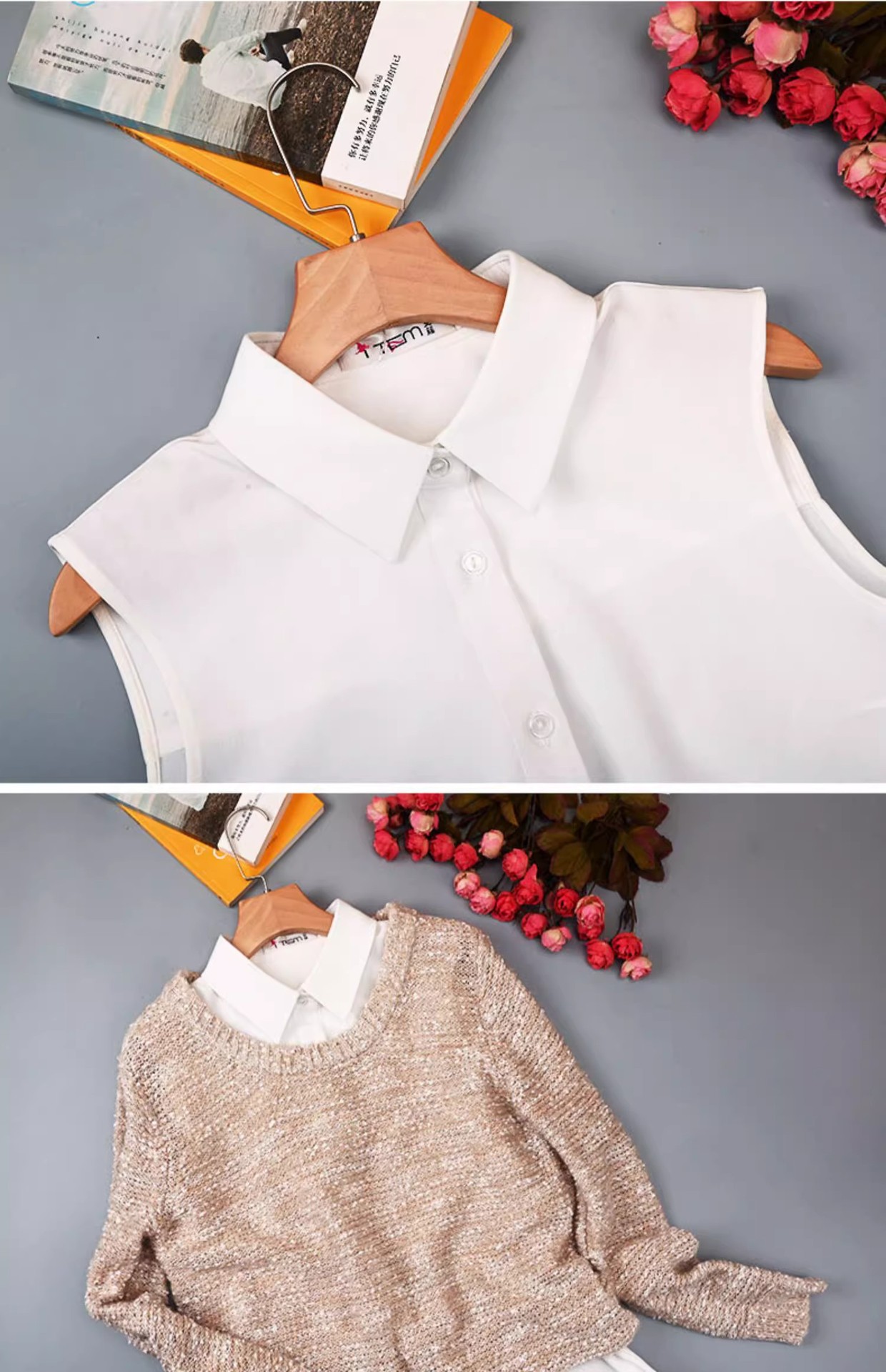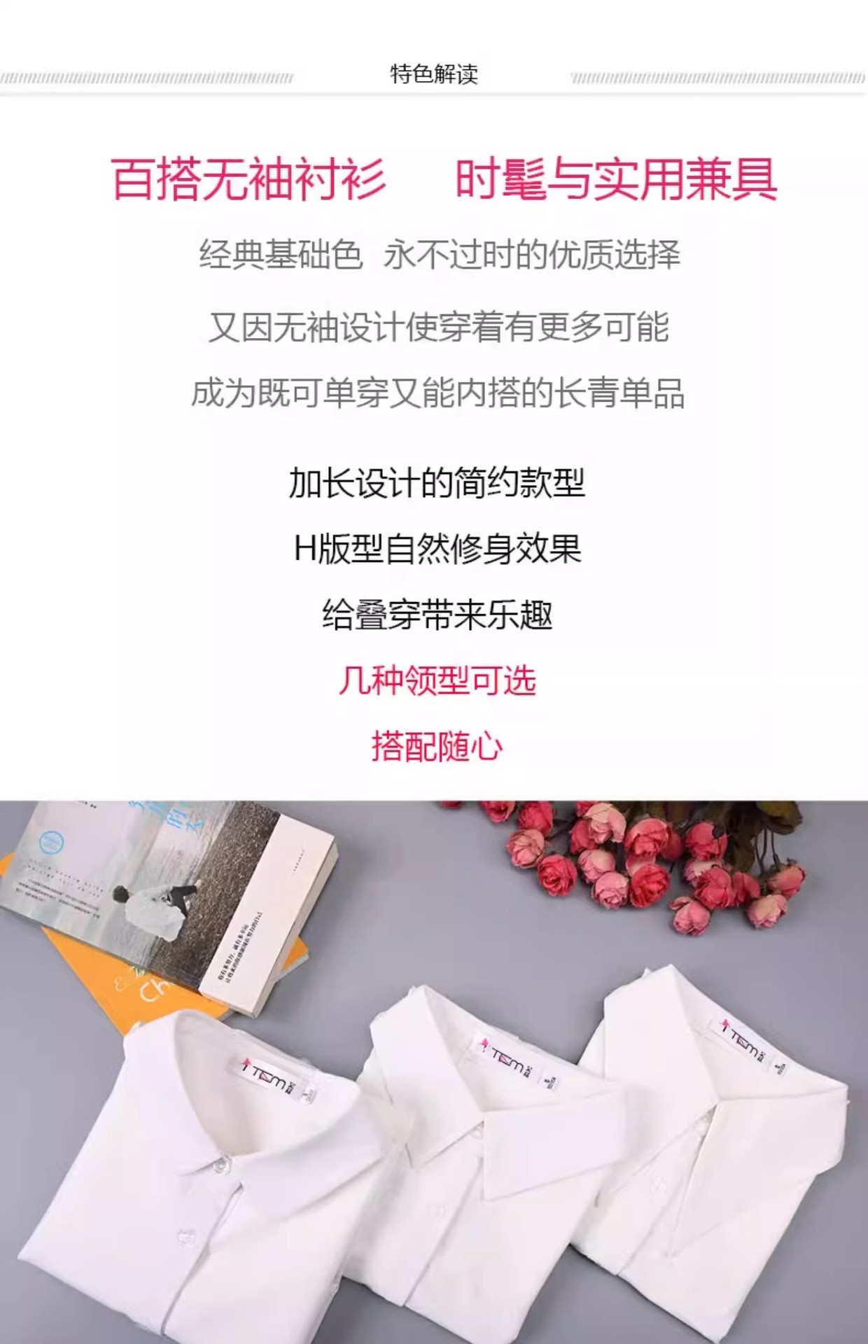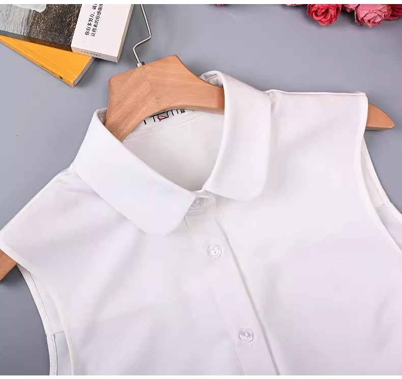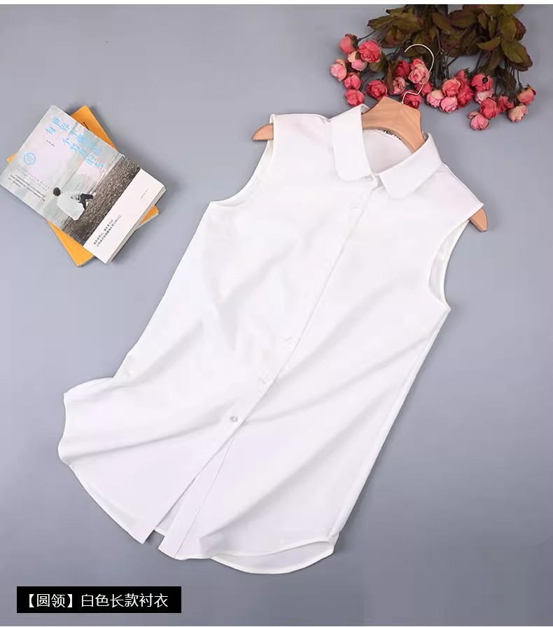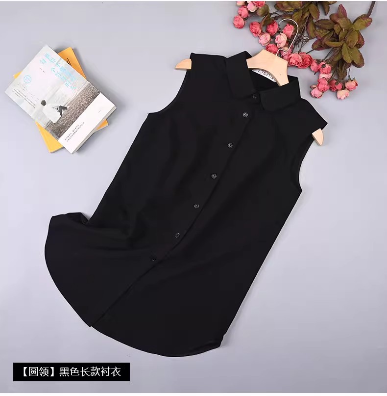 빅 포인트 칼라 민소매 조끼 화이트 셔츠 전문 셔츠 이너 레이어드 셔츠 한국 스타일 탑 여성 라펠 쉬폰