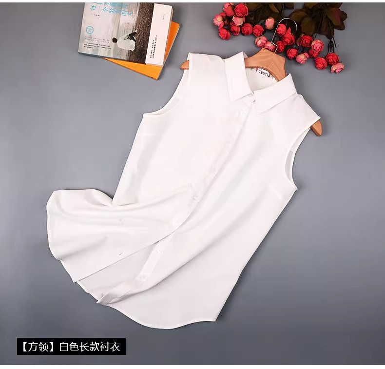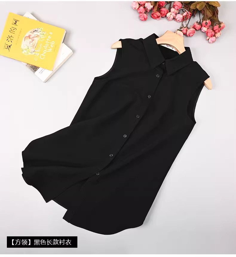 빅 포인트 칼라 민소매 조끼 화이트 셔츠 전문 셔츠 이너 레이어드 셔츠 한국 스타일 탑 여성 라펠 쉬폰스토어 가기