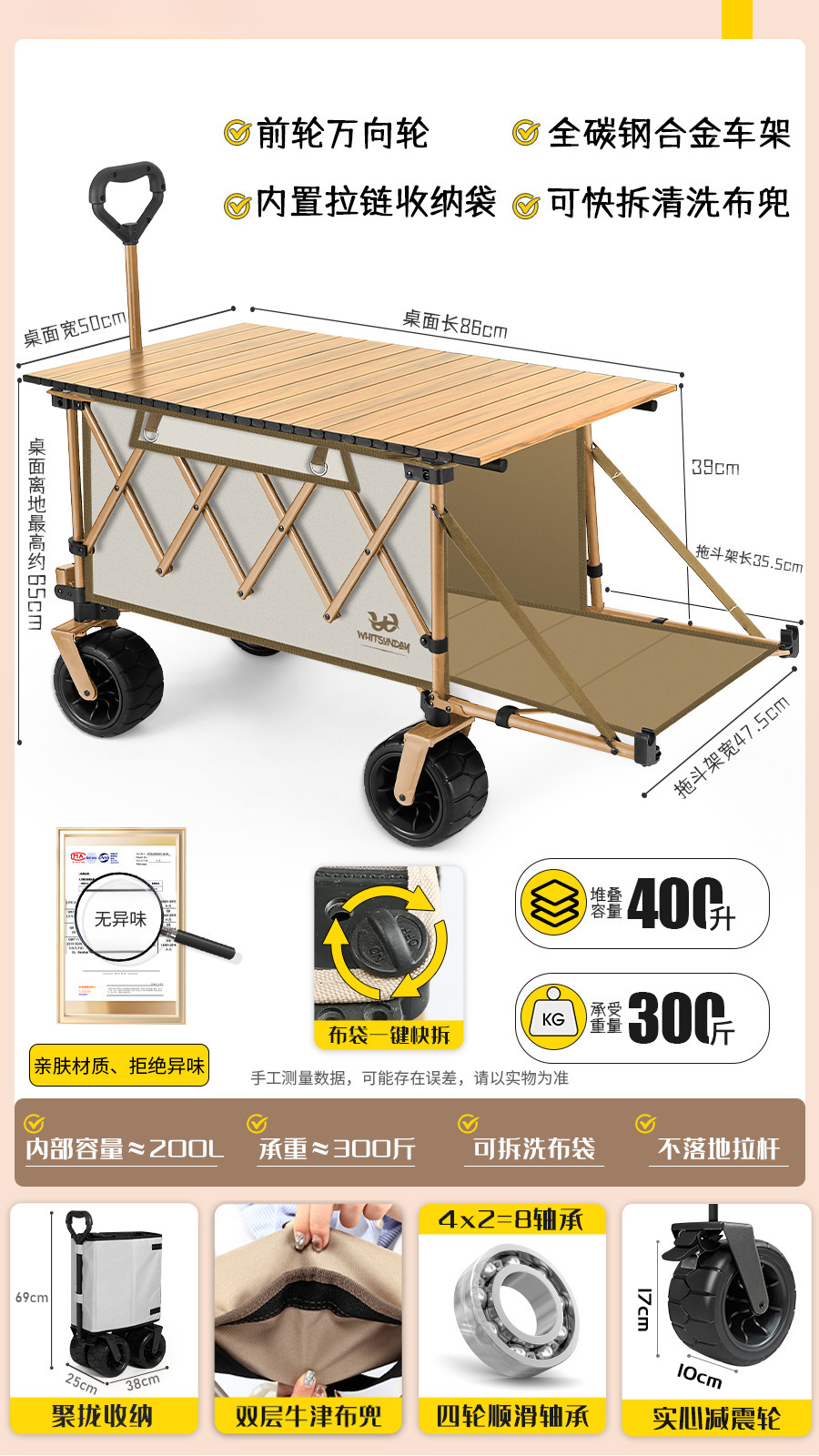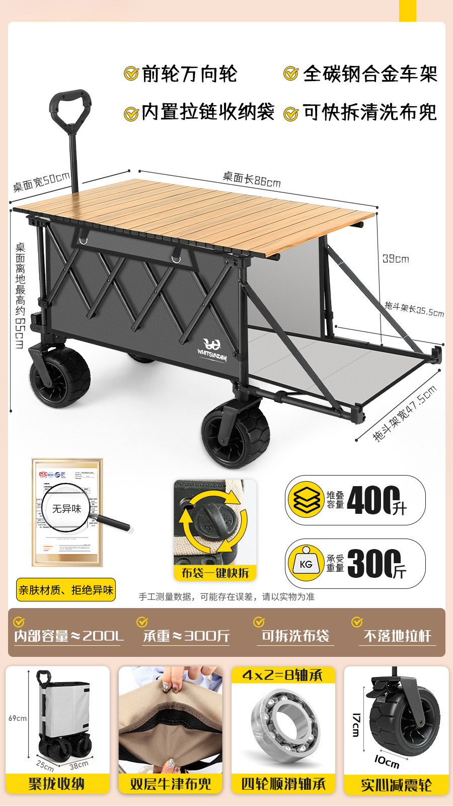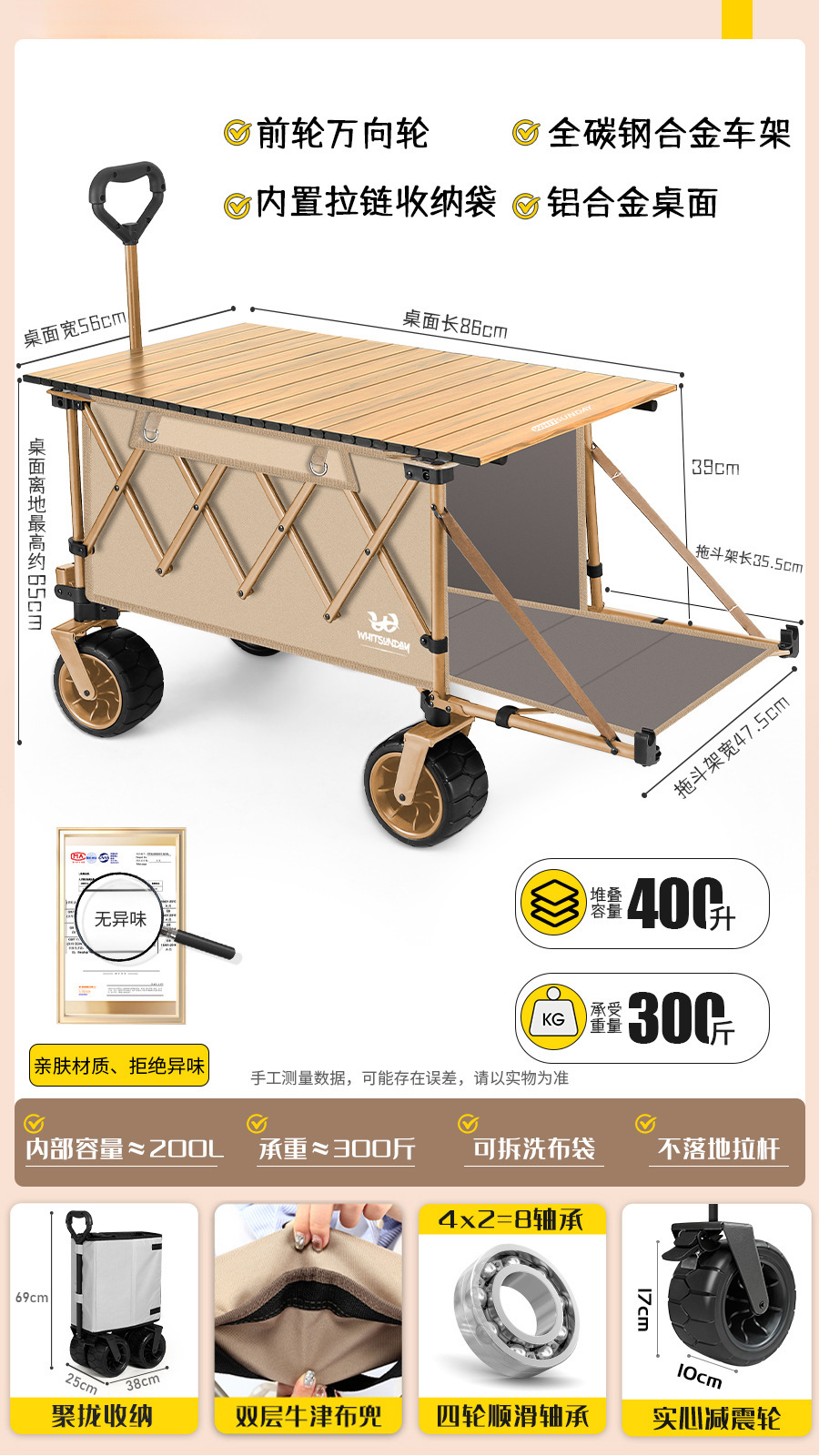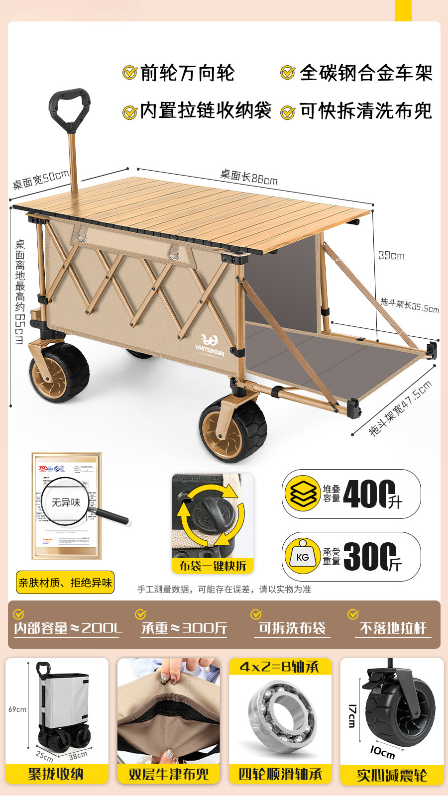 Yumi 야외 접이식 트롤리 캠프 캠핑 어린이 트레일러 피크닉 모여 여행 스톨 캠핑 캠핑 트롤리스토어 가기