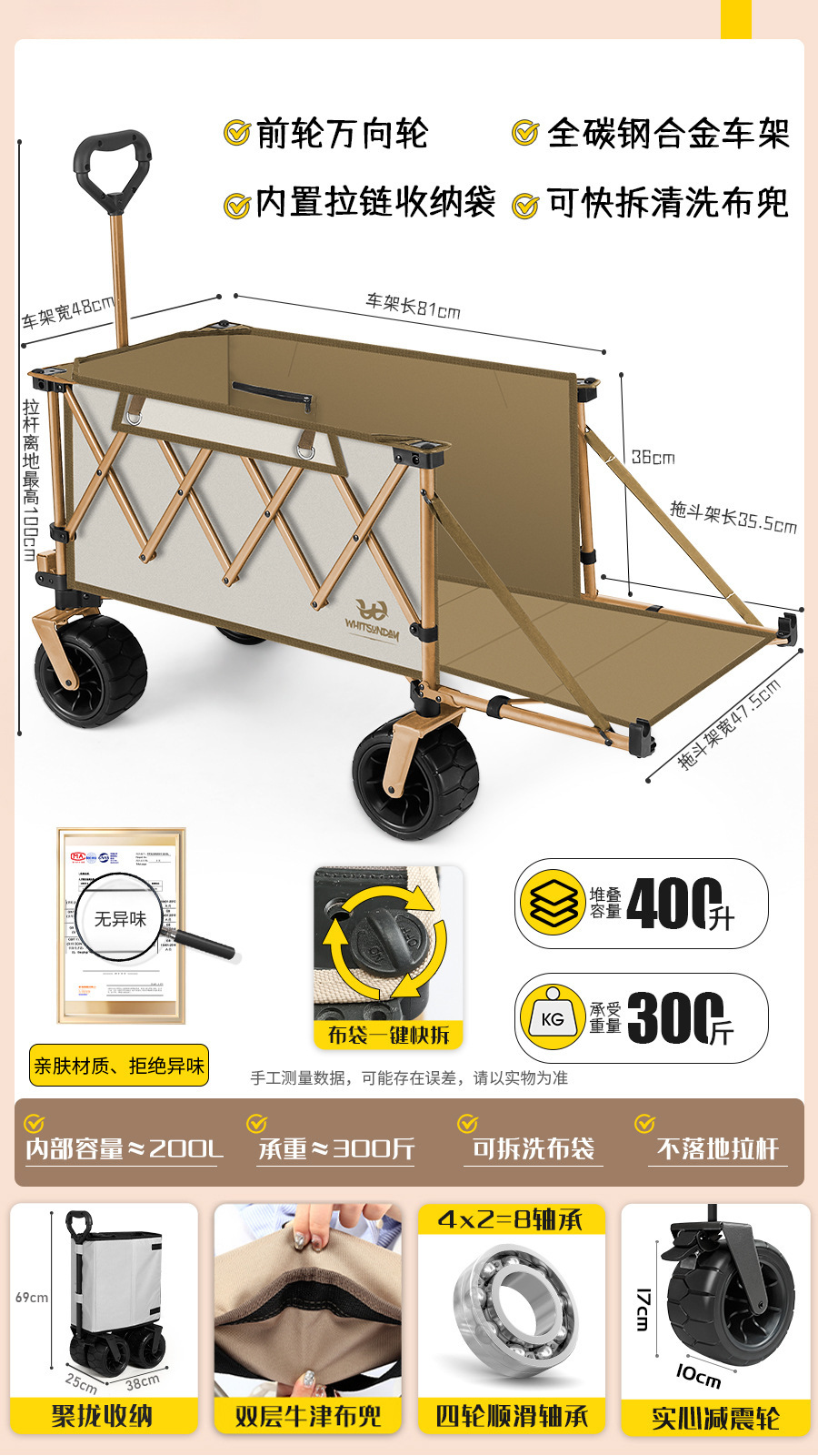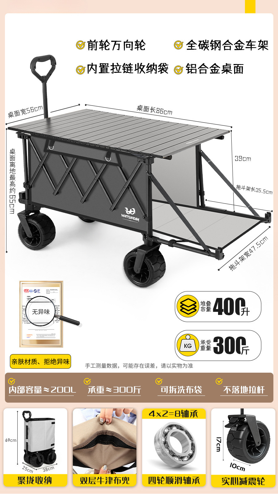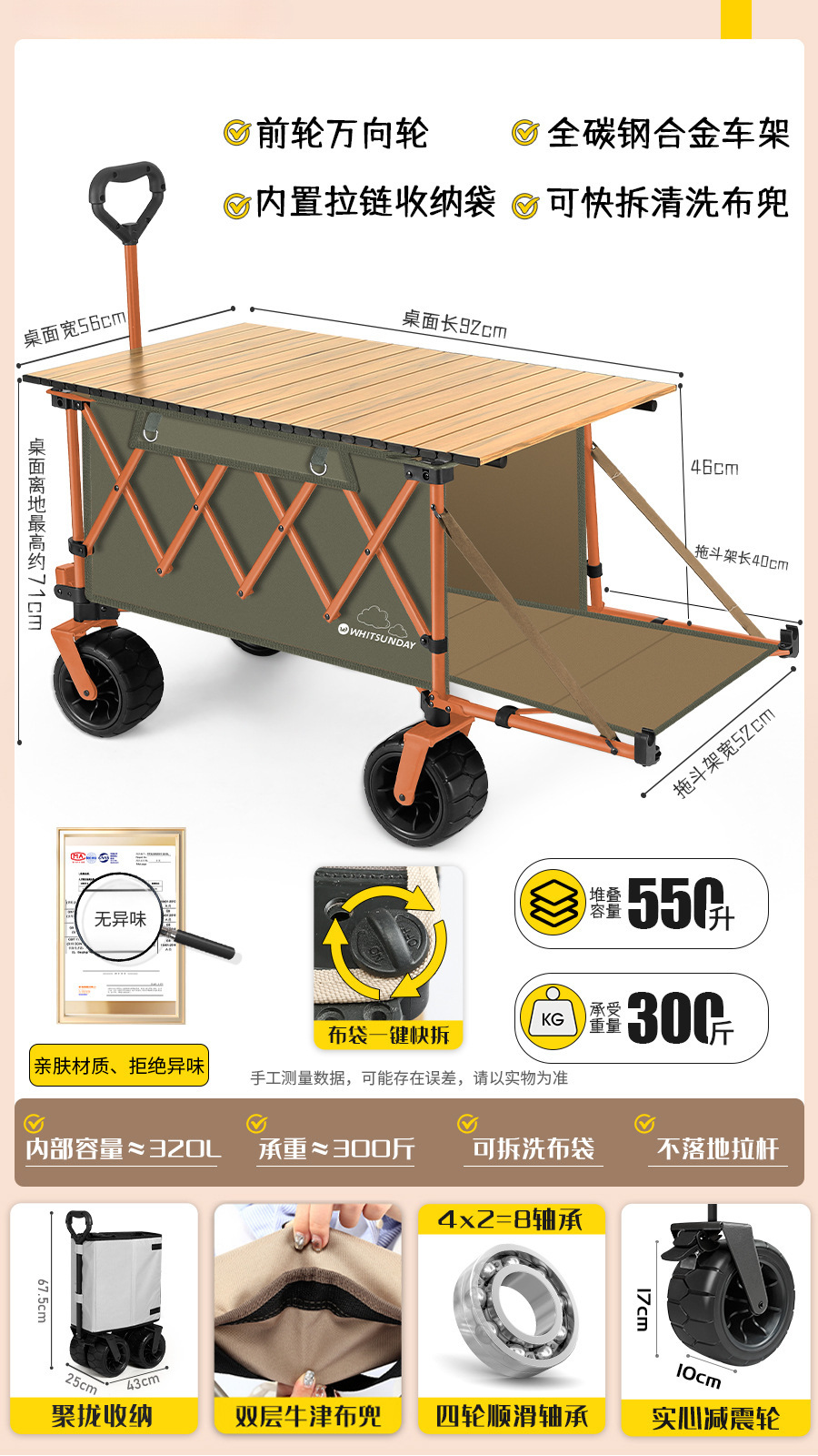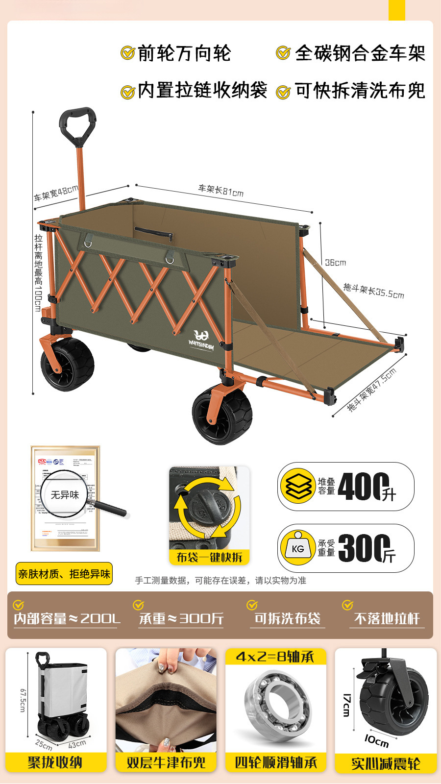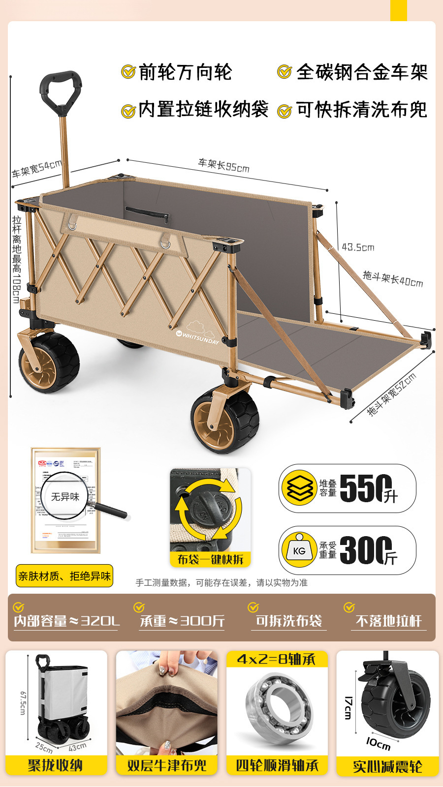Yumi 야외 접이식 트롤리 캠프 캠핑 어린이 트레일러 피크닉 모여 여행 스톨 캠핑 캠핑 트롤리스토어 가기