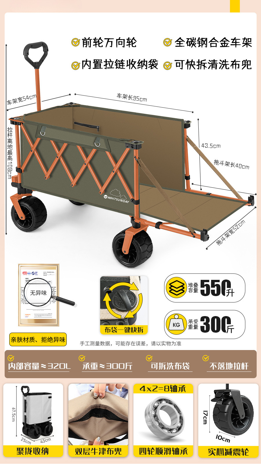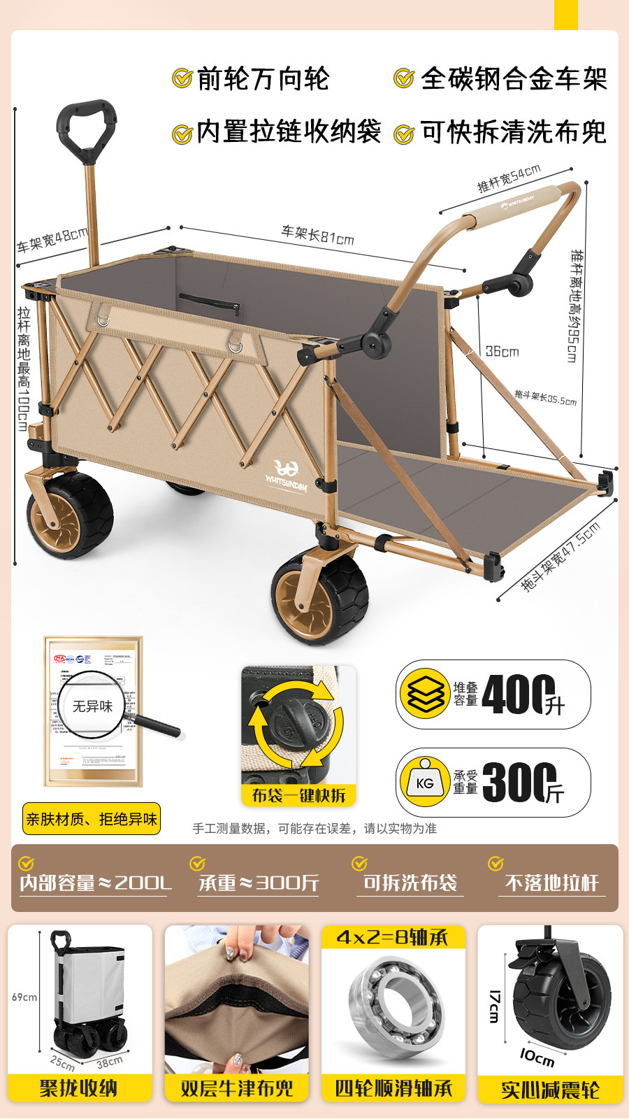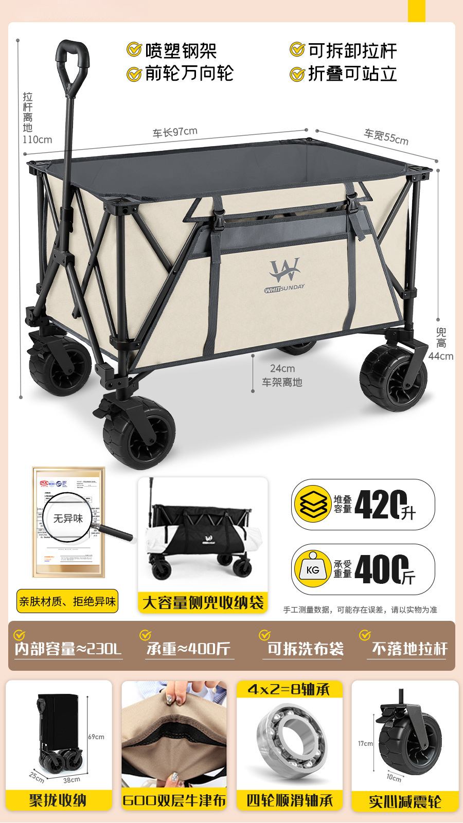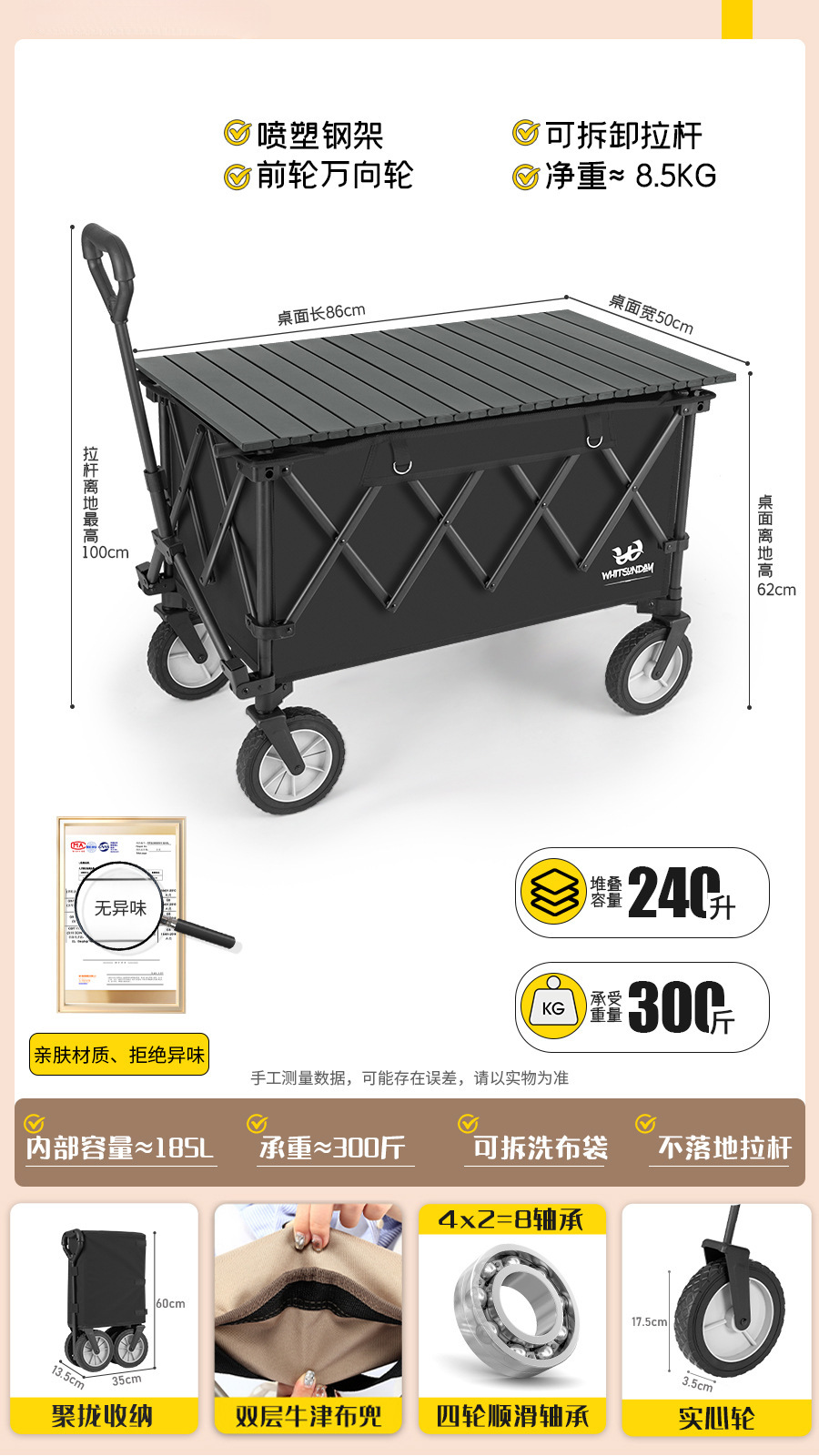 Yumi 야외 접이식 트롤리 캠프 캠핑 어린이 트레일러 피크닉 모여 여행 스톨 캠핑 캠핑 트롤리스토어 가기