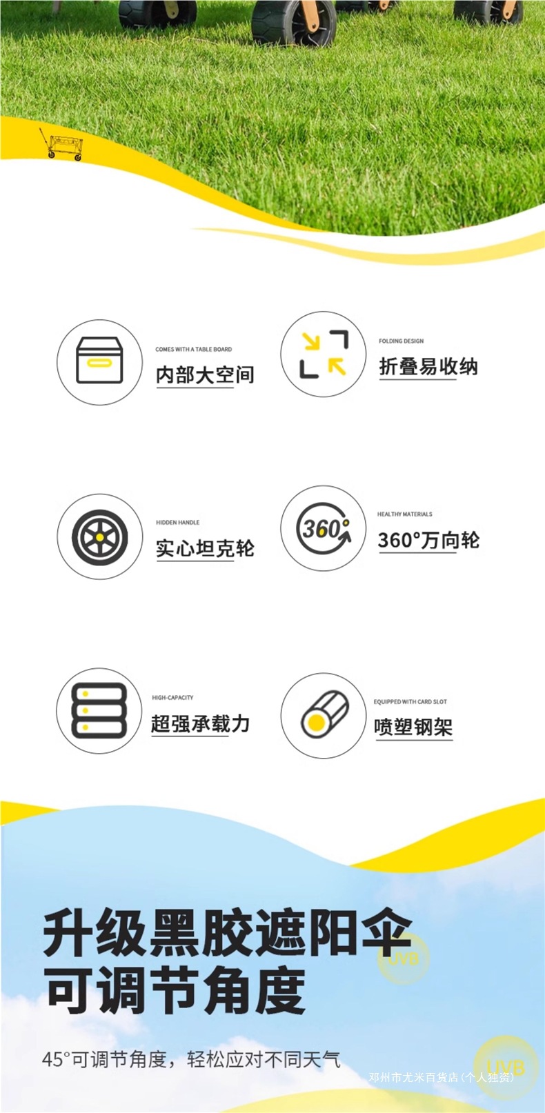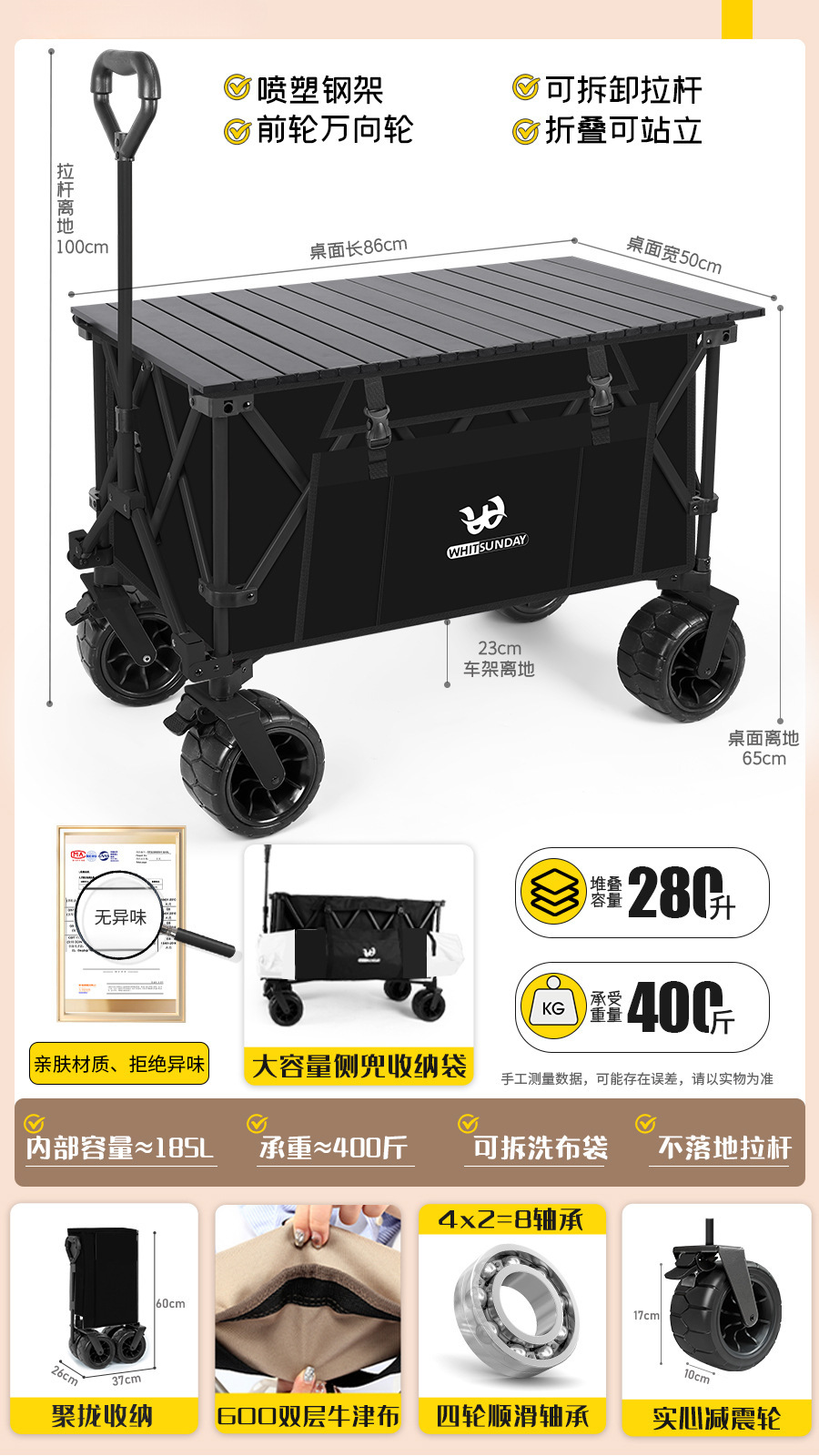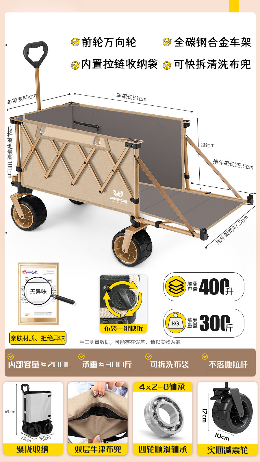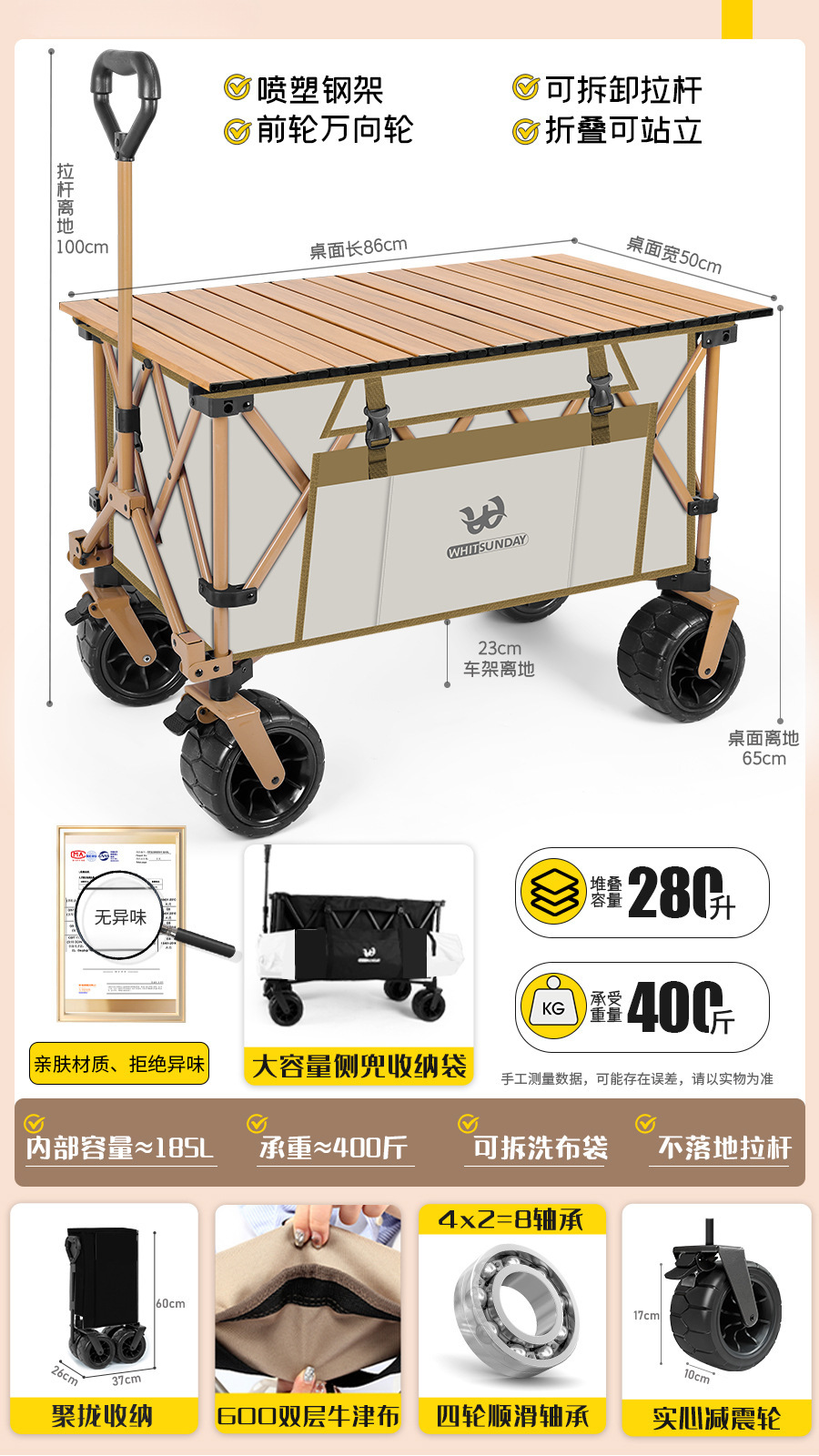 Yumi 야외 접이식 트롤리 캠프 캠핑 어린이 트레일러 피크닉 모여 여행 스톨 캠핑 캠핑 트롤리