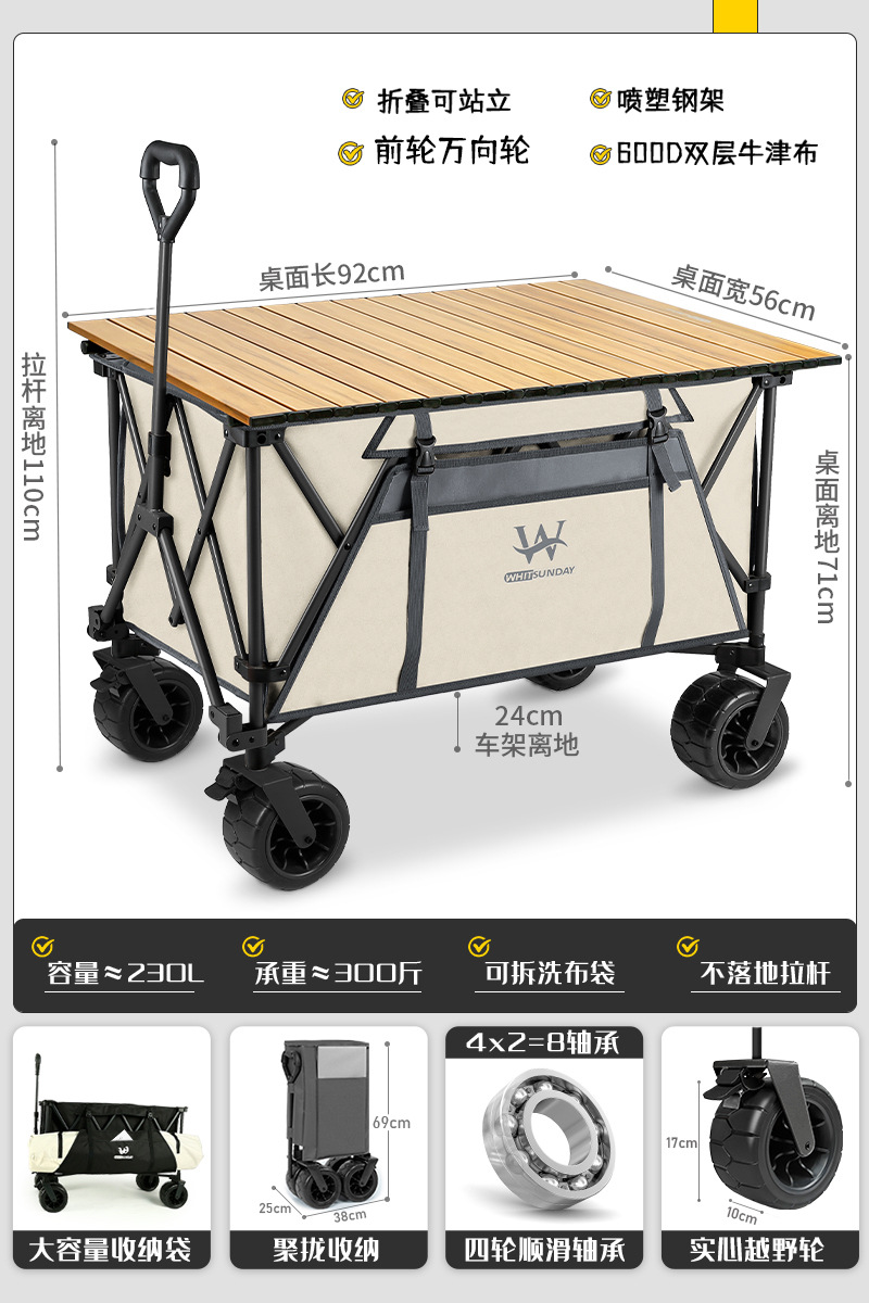 • 초대형 오프화이트 모델 + 대용량 사이드백 [충격흡수 와이드 휠 + 올스틸 프레임 + 4륜 이중 베어링] + 접이식 휴대용 에그롤 데스크탑