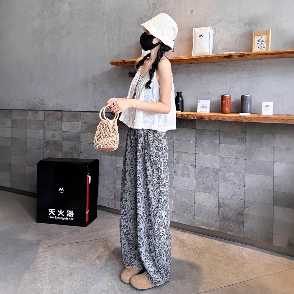 면화와 리넨 자카드 넓은 다리 바지 여자 2025 얇은 리넨 작은 게으른 슬리밍 바지 발목 길이 바지스토어 가기