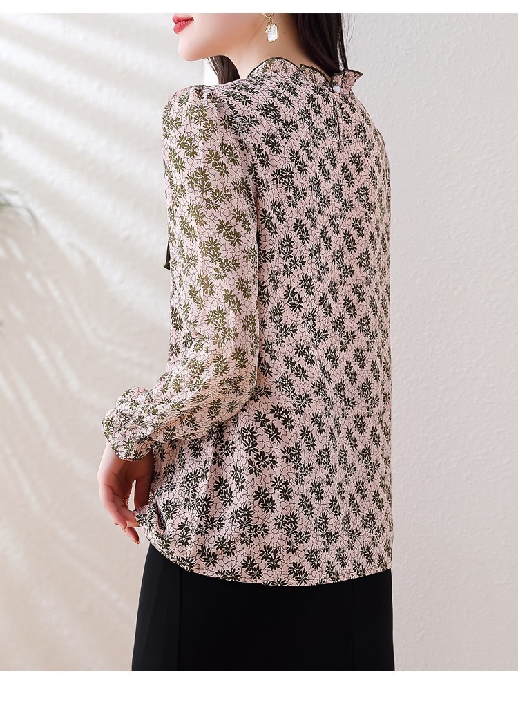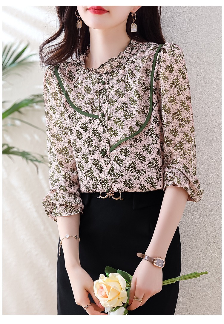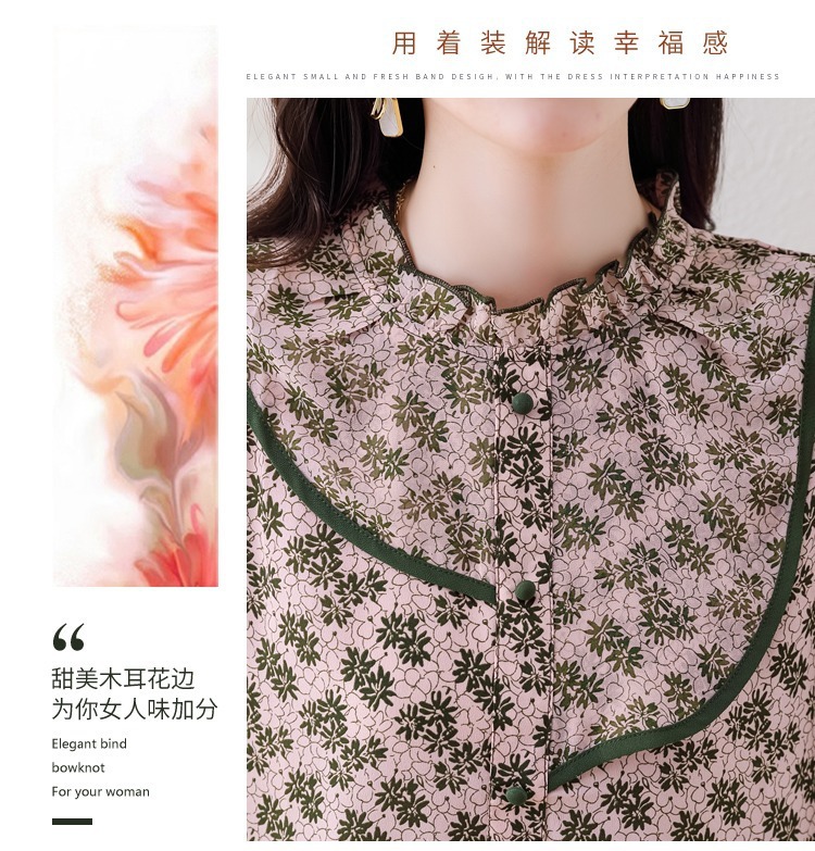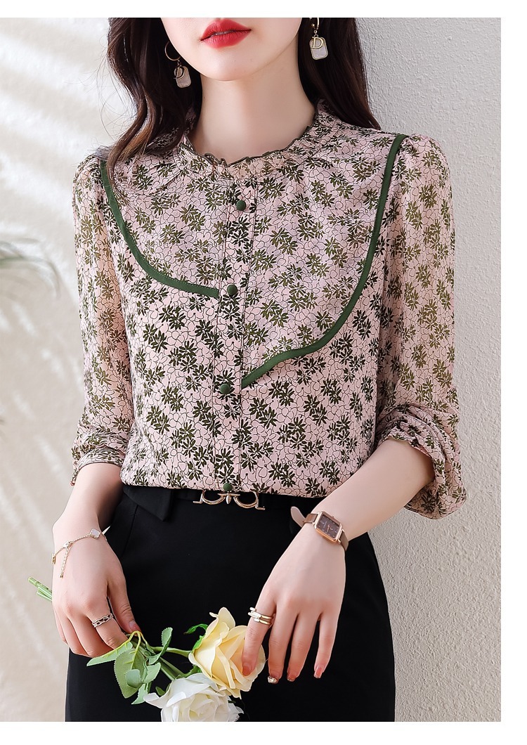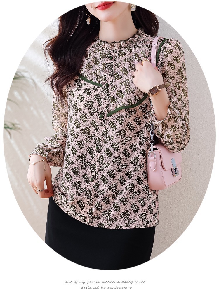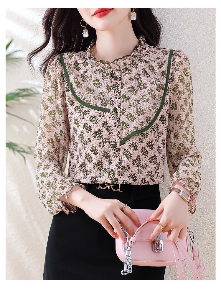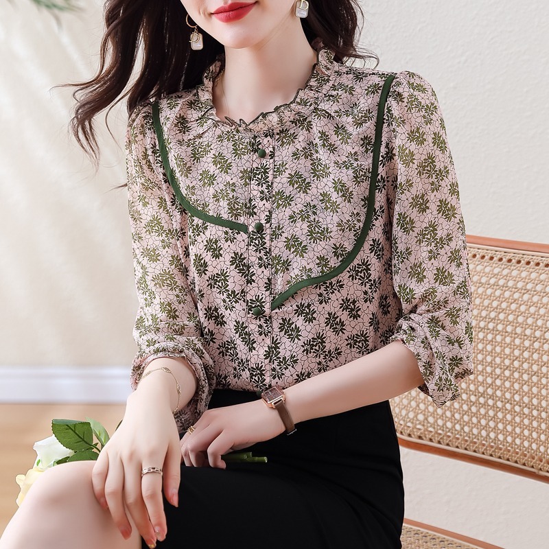 여성을 위한 패셔너블한 연령 감소 꽃무늬 쉬폰 셔츠 2025 봄, 가을 새로운 스타일의 여성용 셔츠로 배를 커버하고 슬림하게 보이게 해줍니다.