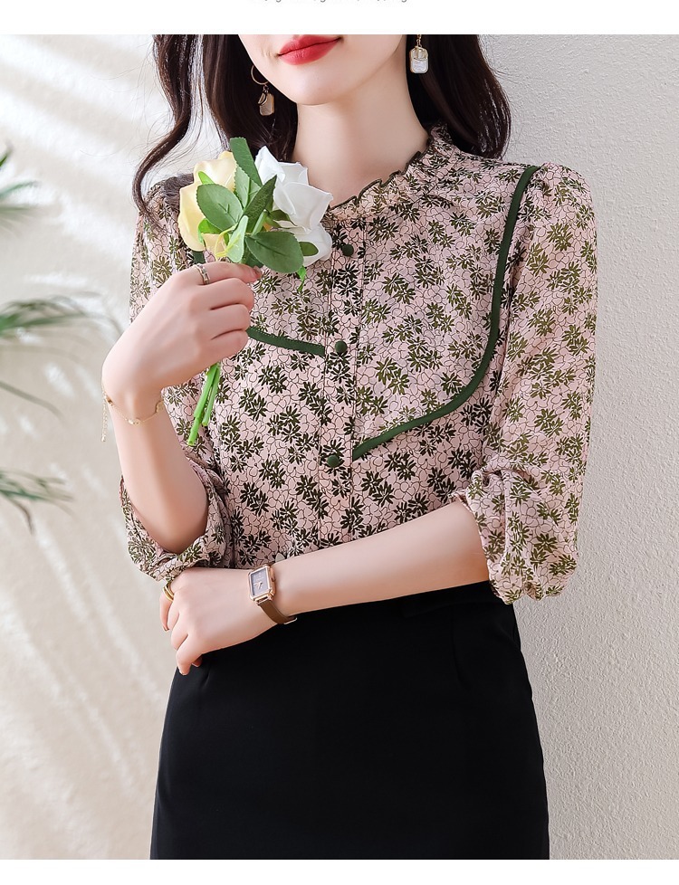 여성을 위한 패셔너블한 연령 감소 꽃무늬 쉬폰 셔츠 2025 봄, 가을 새로운 스타일의 여성용 셔츠로 배를 커버하고 슬림하게 보이게 해줍니다.스토어 가기