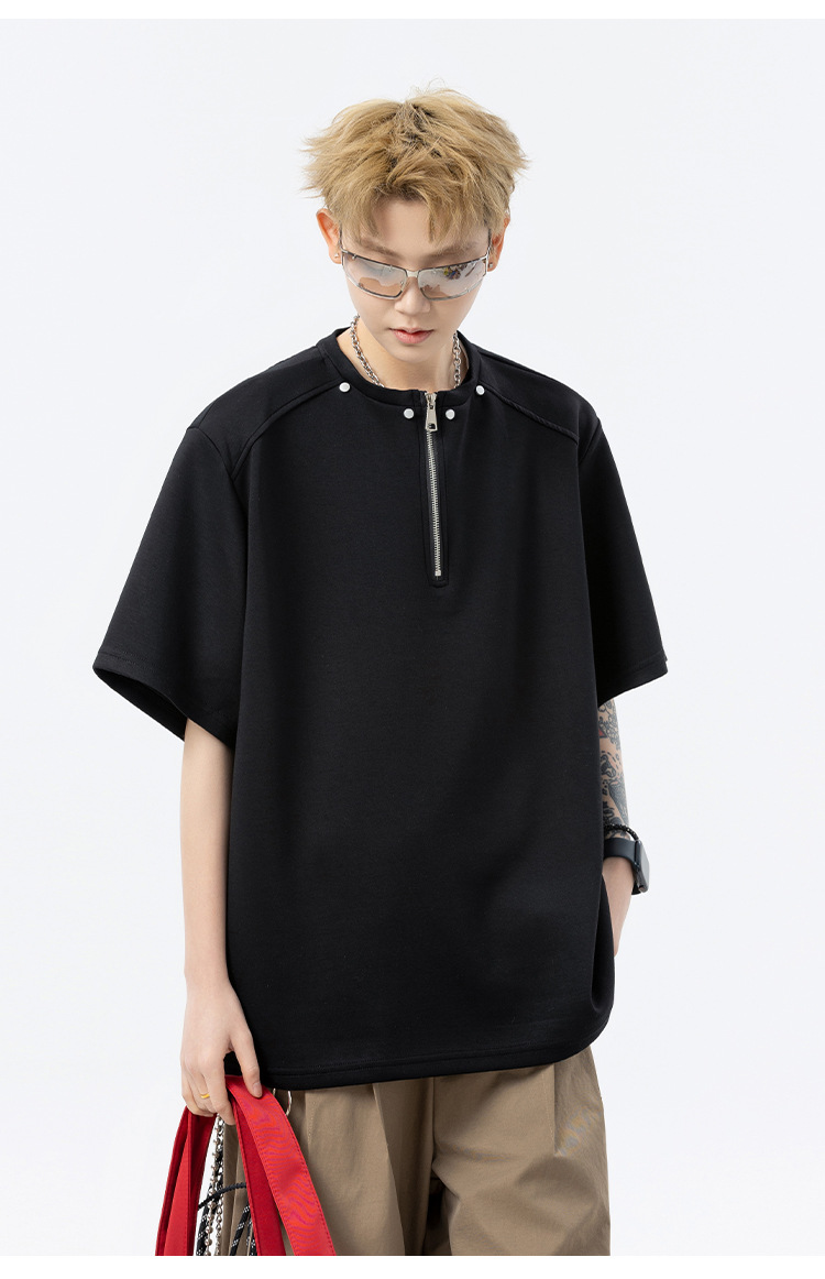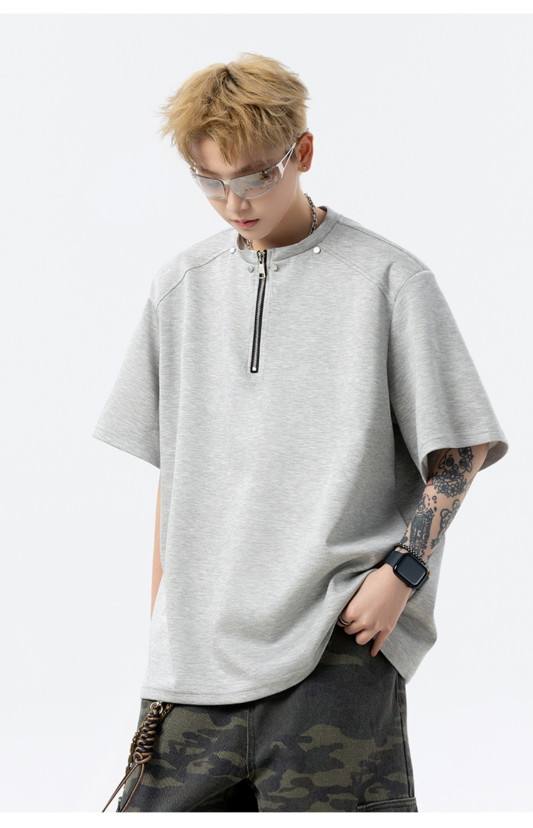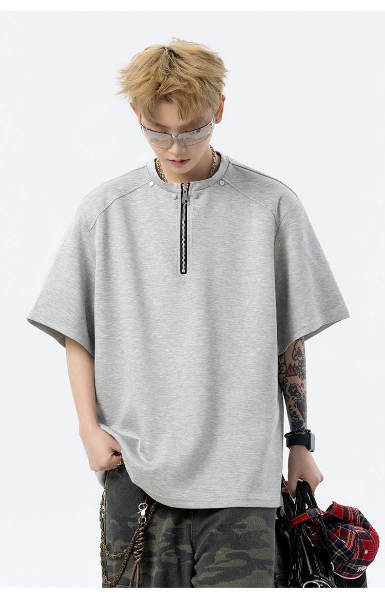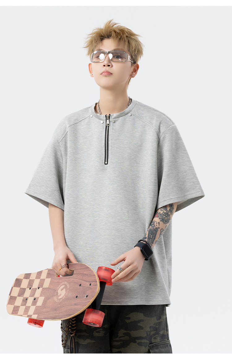 남성과 여성을 위한 미국 헤비급 하프 지퍼 반팔 티셔츠 2025 새로운 트렌디 브랜드 여름 착용 디자인 5부 반팔스토어 가기