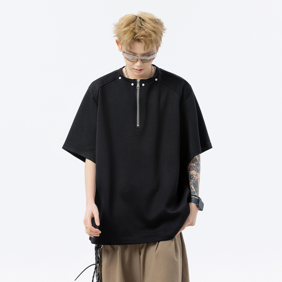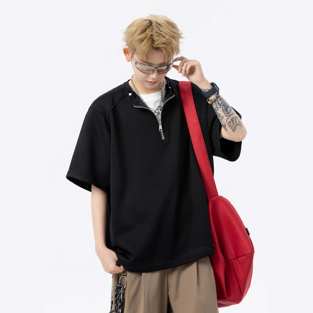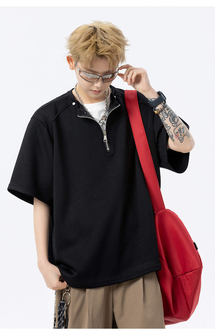 남성과 여성을 위한 미국 헤비급 하프 지퍼 반팔 티셔츠 2025 새로운 트렌디 브랜드 여름 착용 디자인 5부 반팔스토어 가기