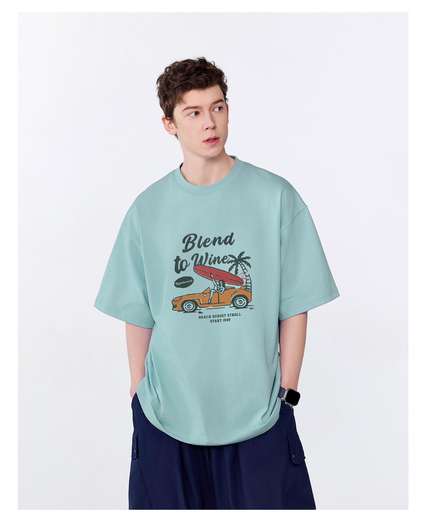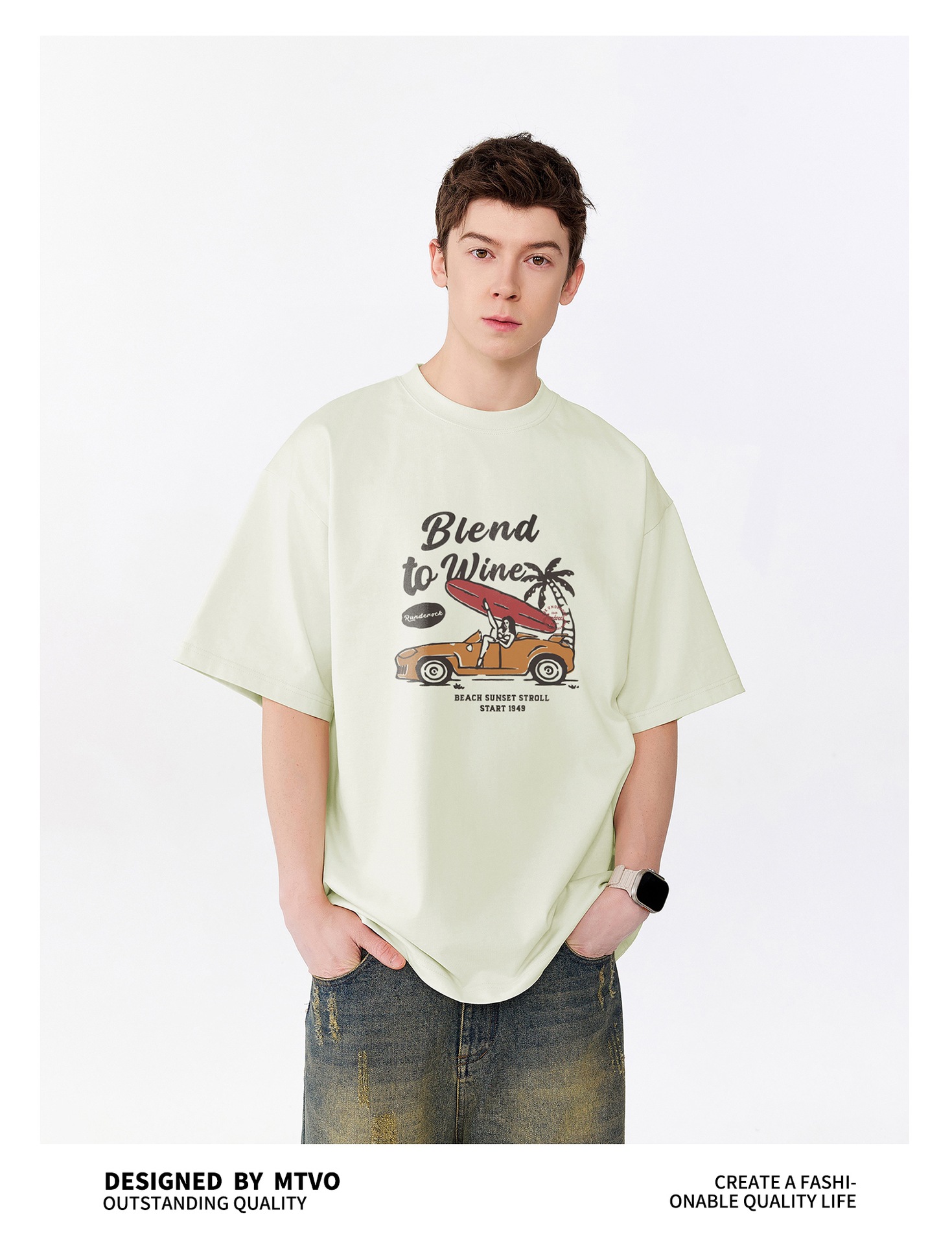 220g 헤비 코튼 인쇄 반팔 티셔츠 소년 느슨한 여름 새로운 패션 브랜드 미국 십대 티셔츠스토어 가기
