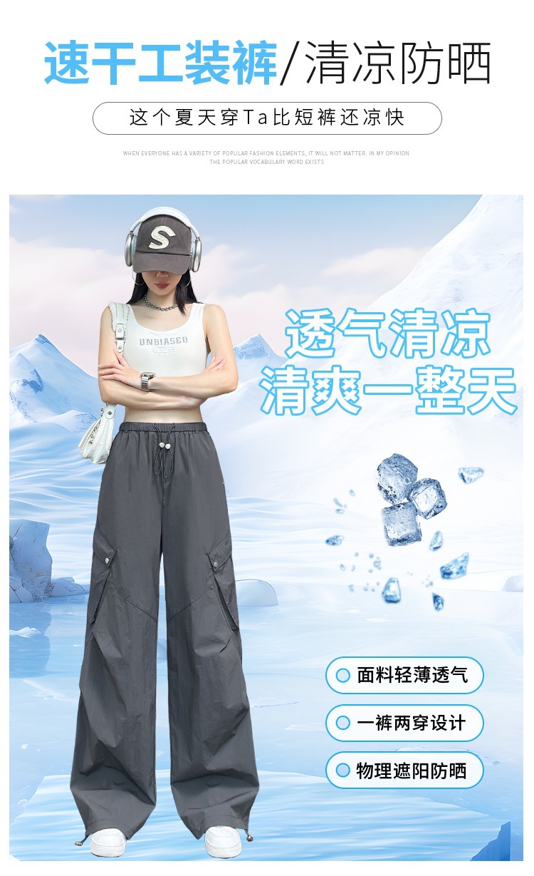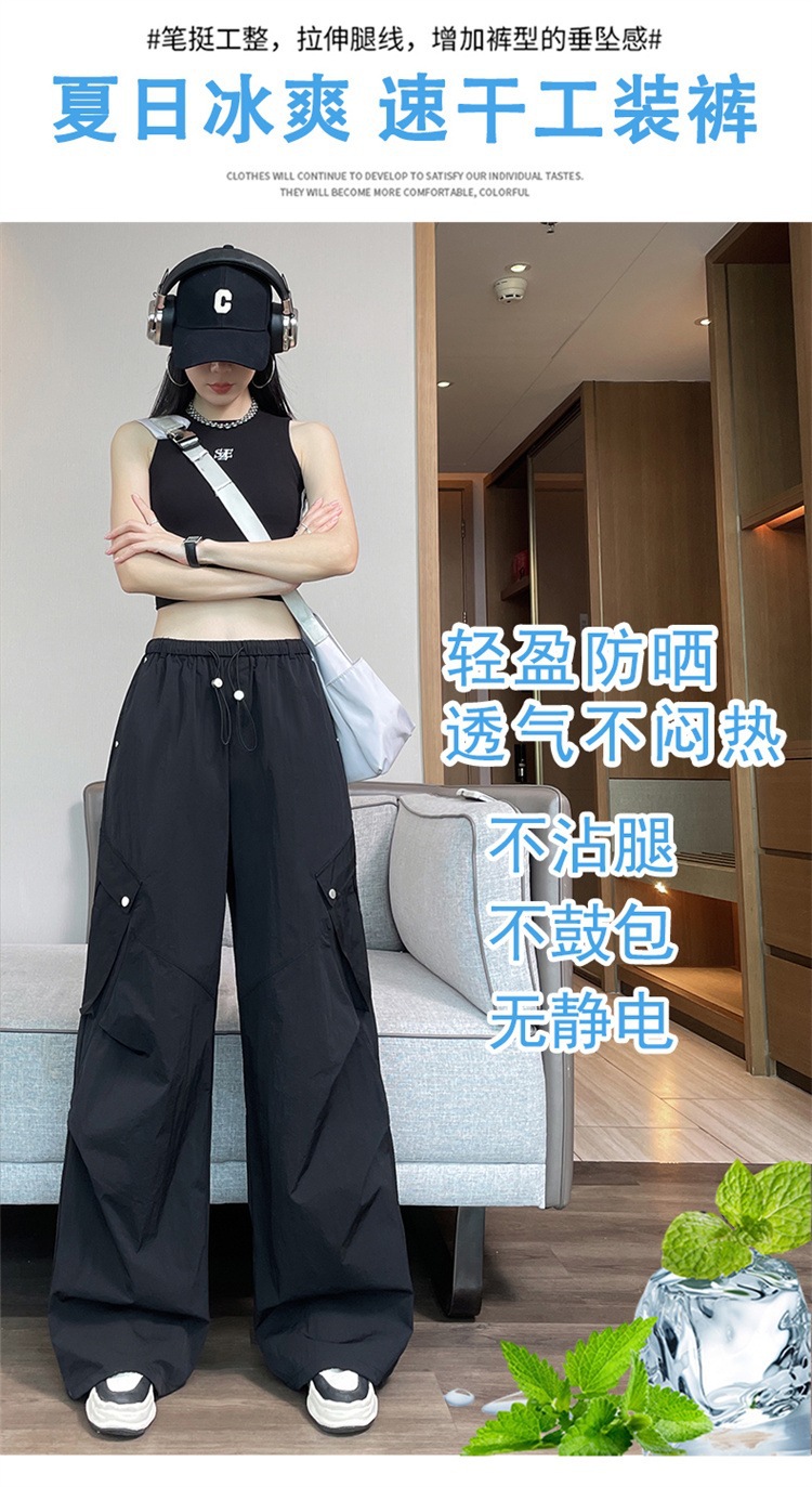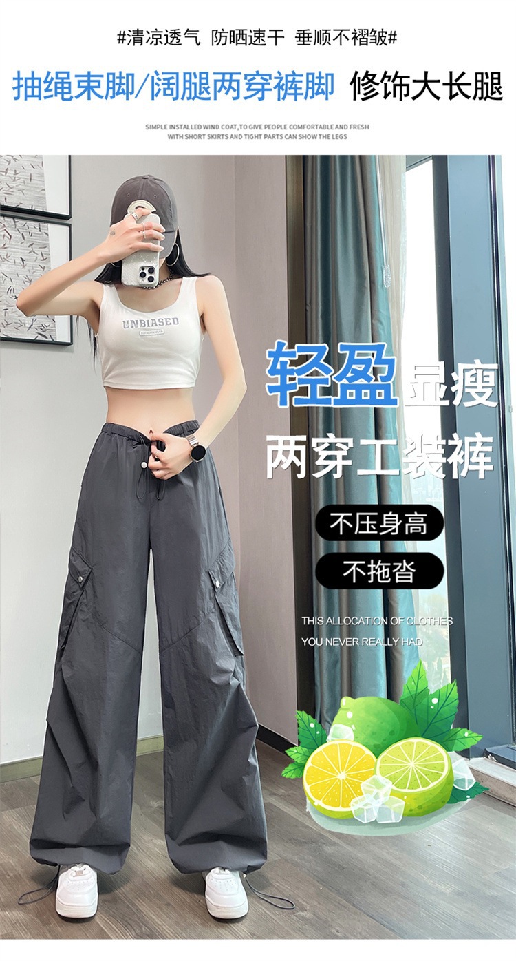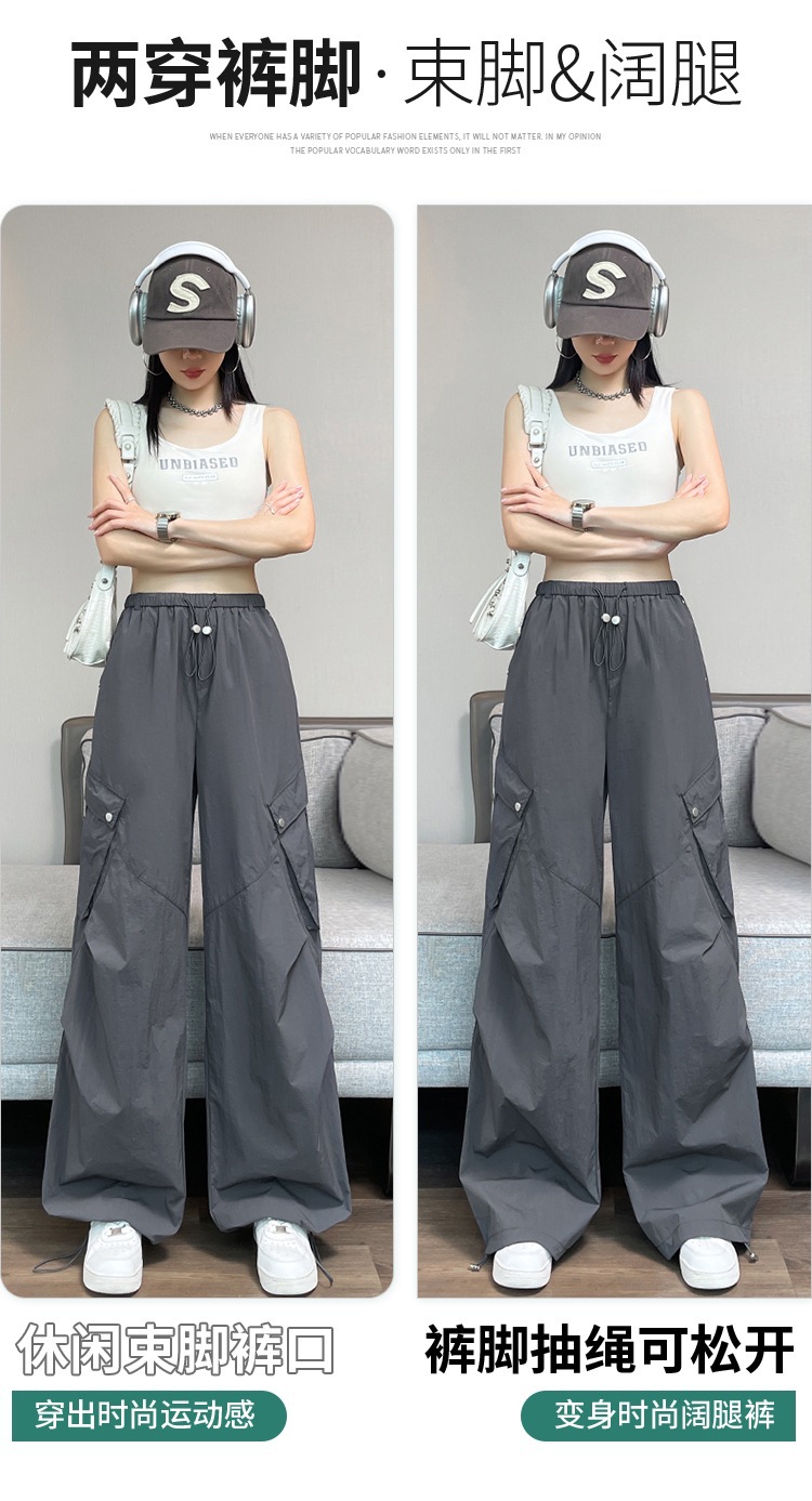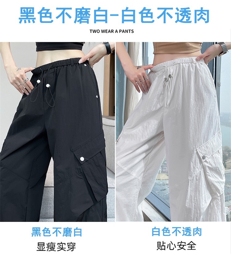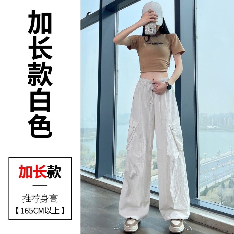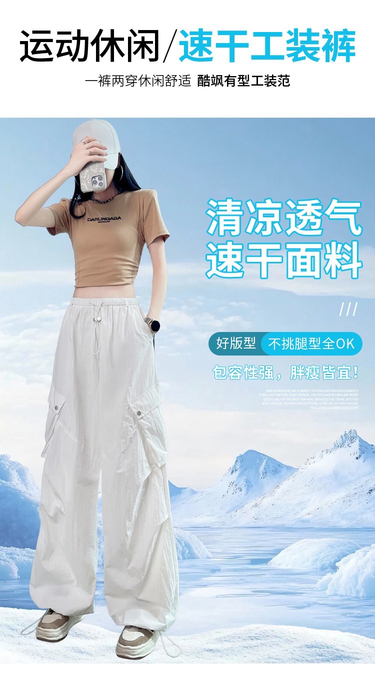 여성용 흰색 속건성 작업복 여름 얇은 2025 새로운 하이 웨이스트 레깅스 낙하산 바지 스포츠 와이드 레그 하이킹 바지