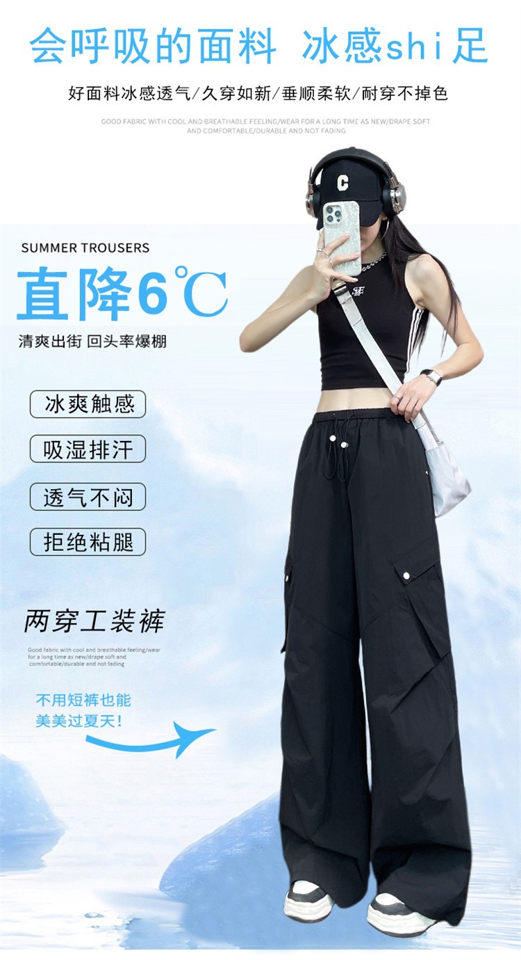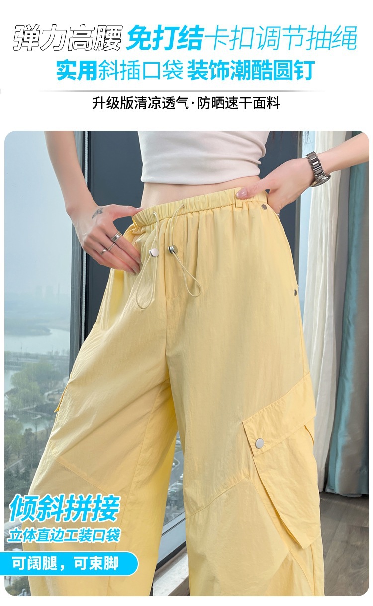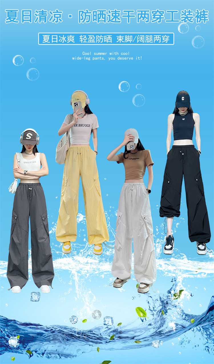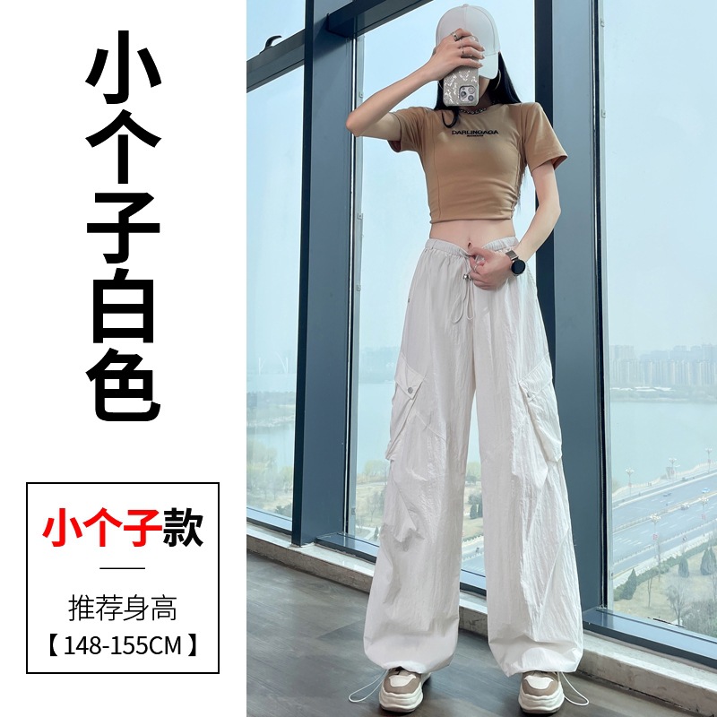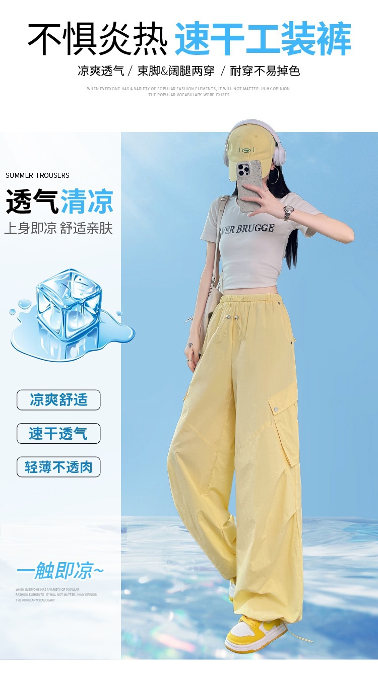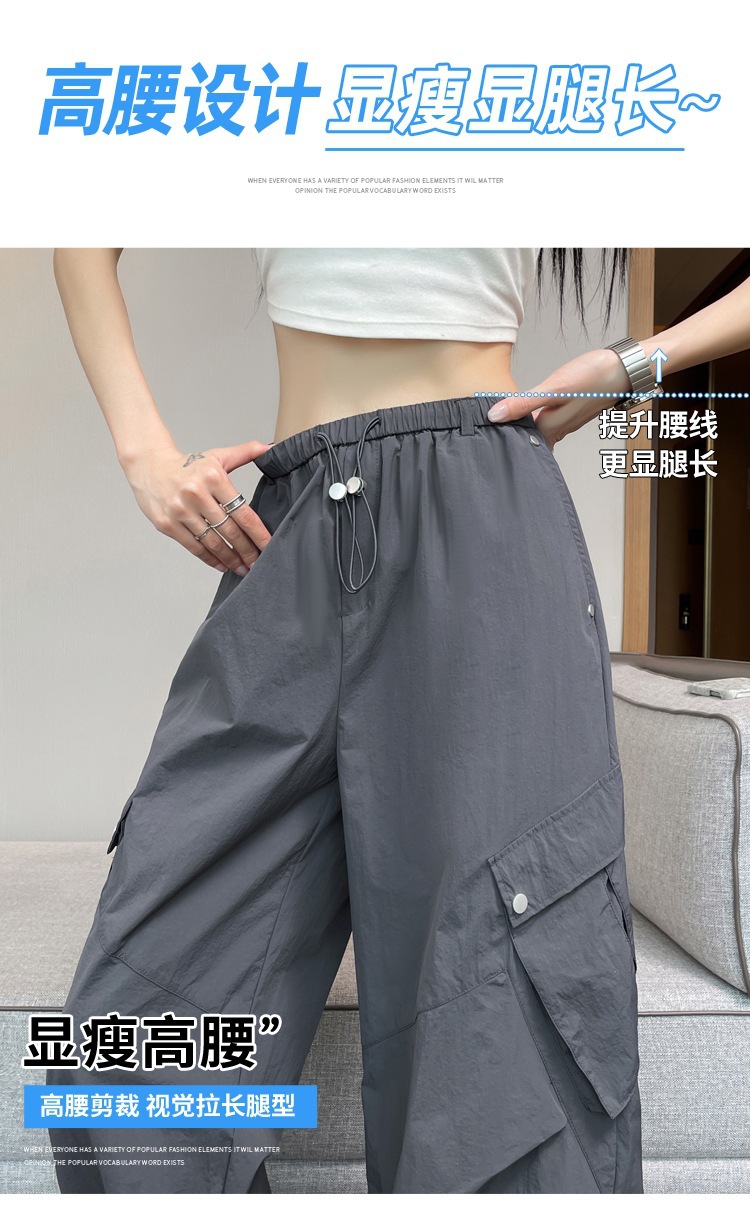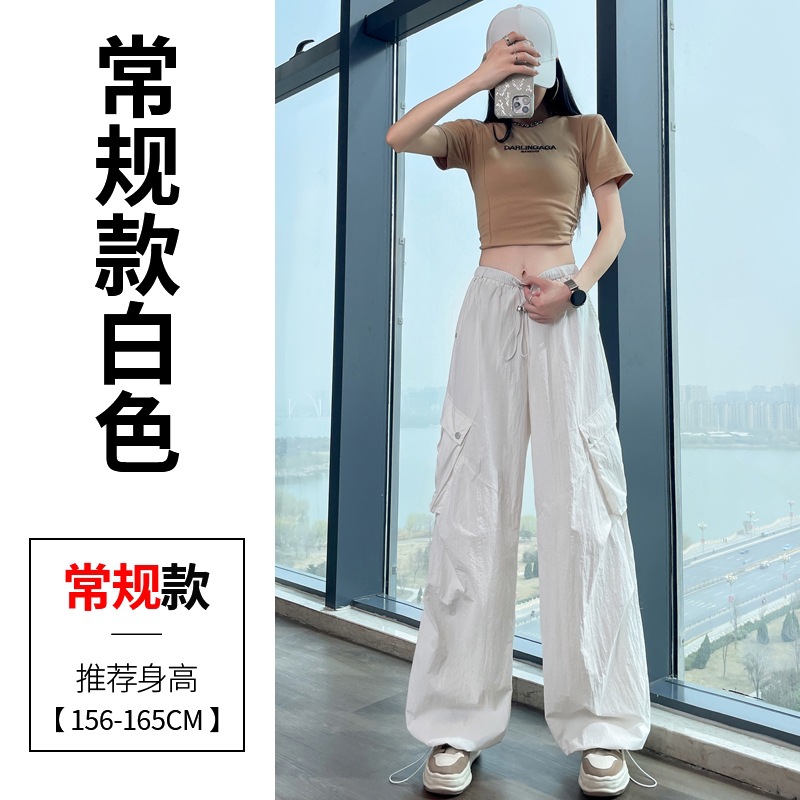 여성용 흰색 속건성 작업복 여름 얇은 2025 새로운 하이 웨이스트 레깅스 낙하산 바지 스포츠 와이드 레그 하이킹 바지