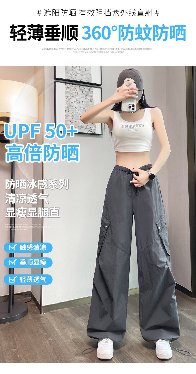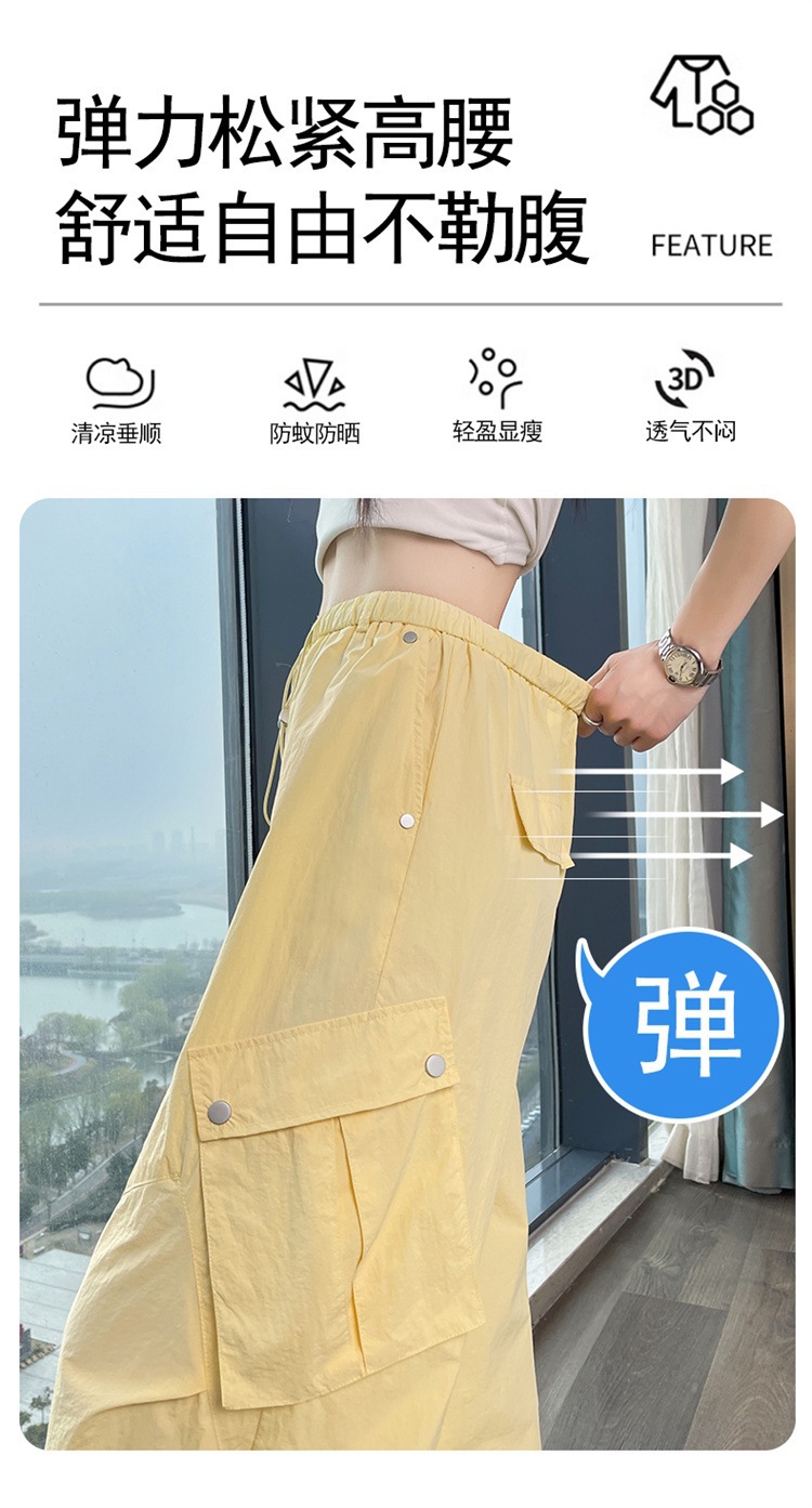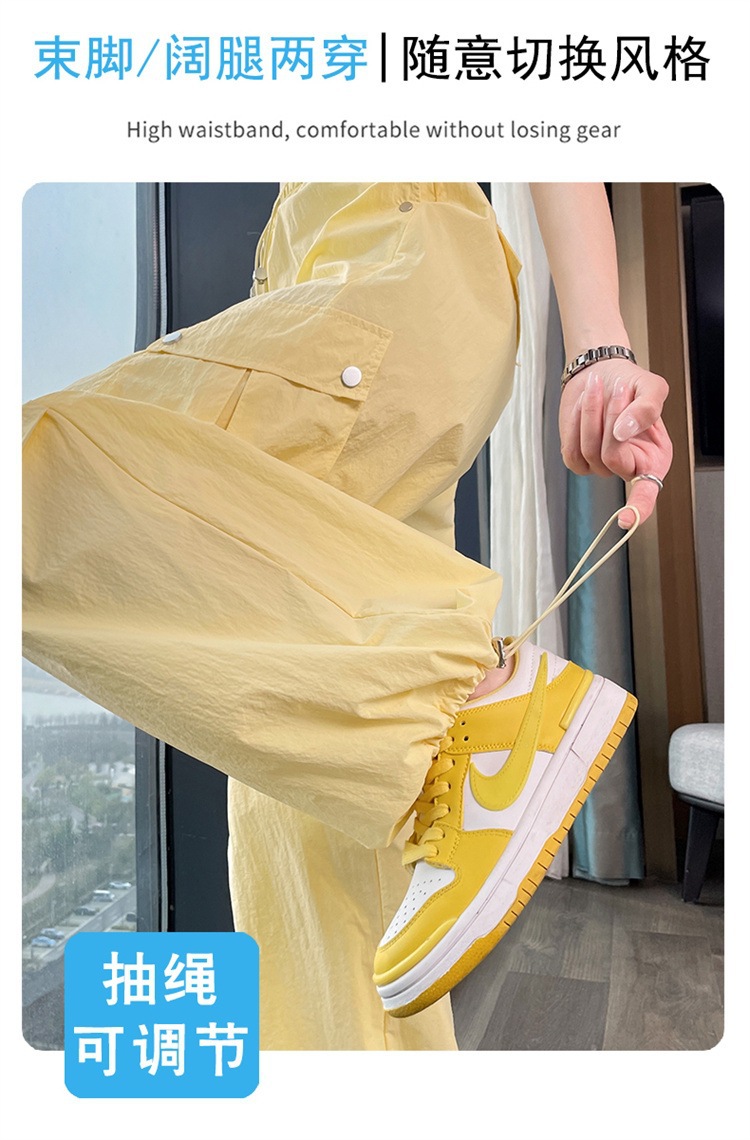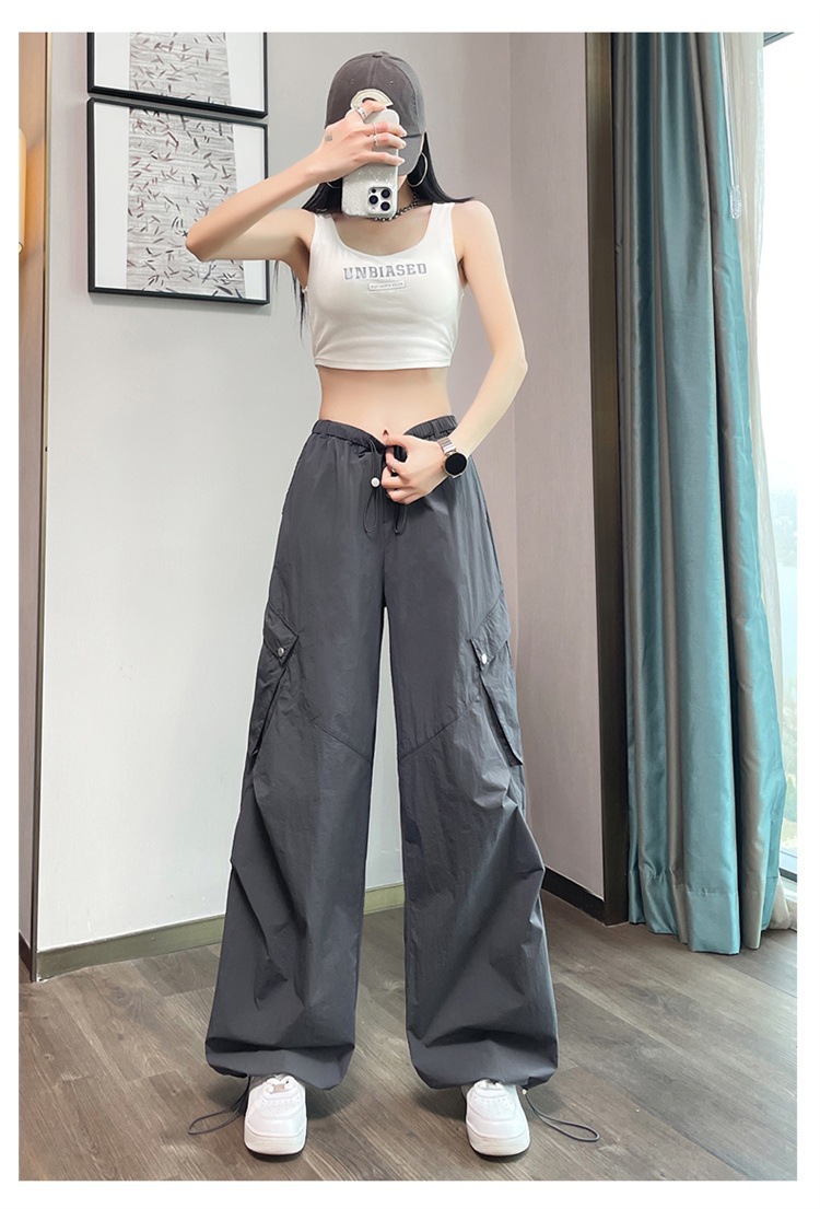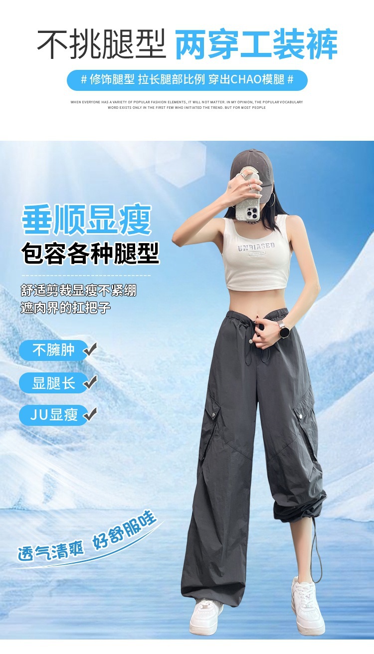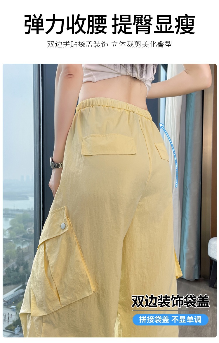 여성용 흰색 속건성 작업복 여름 얇은 2025 새로운 하이 웨이스트 레깅스 낙하산 바지 스포츠 와이드 레그 하이킹 바지