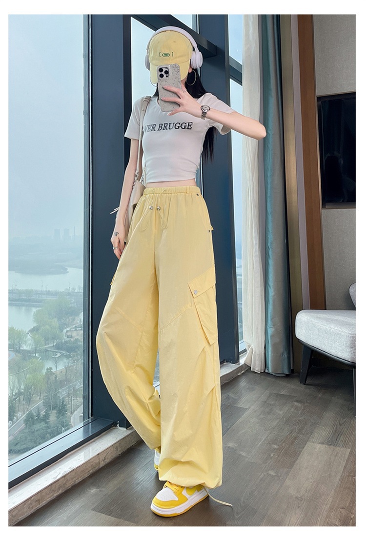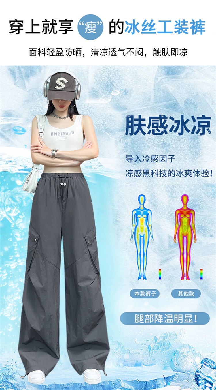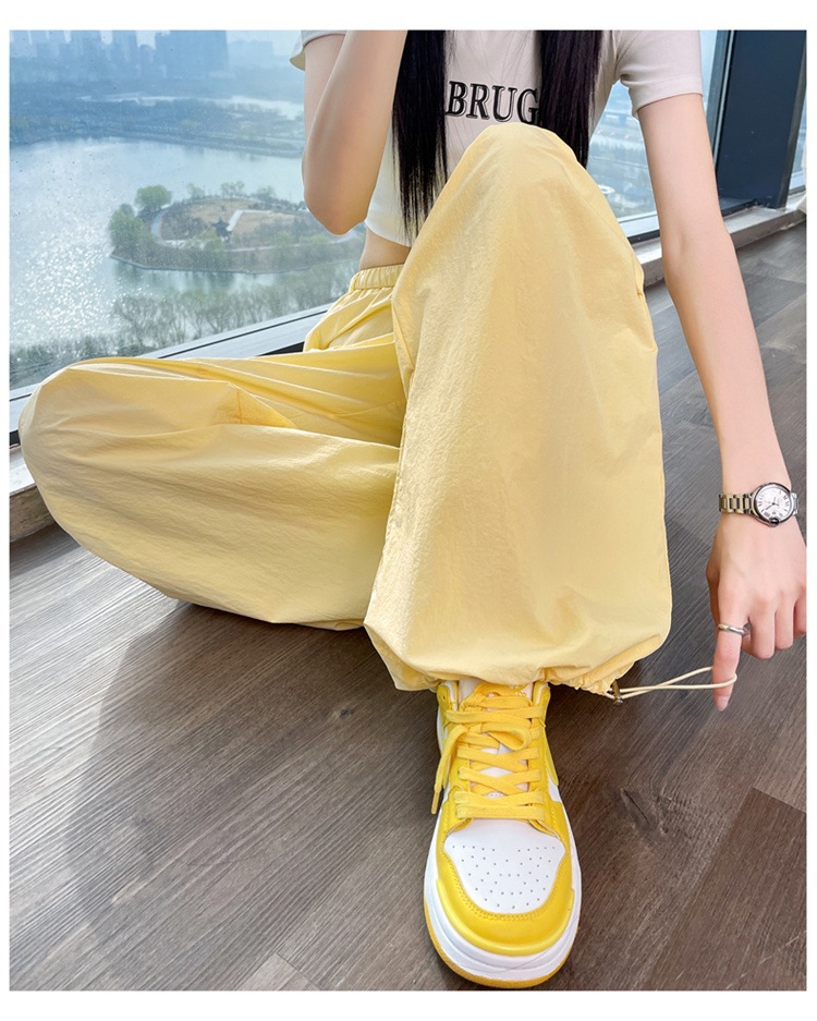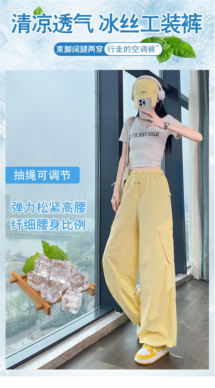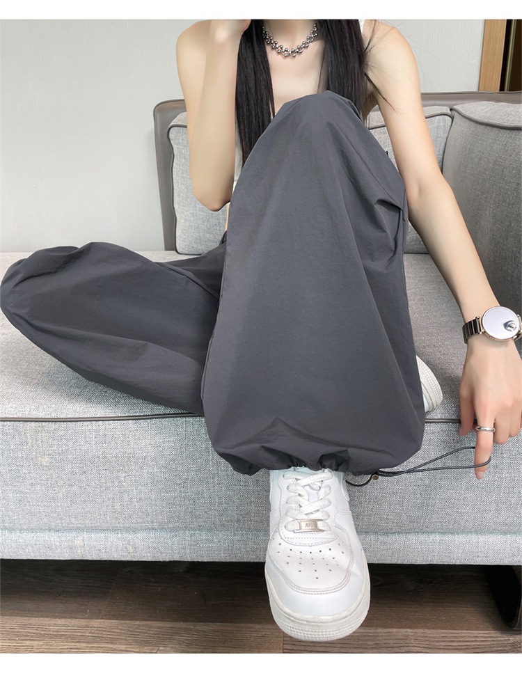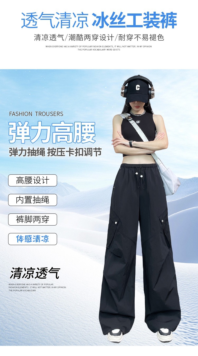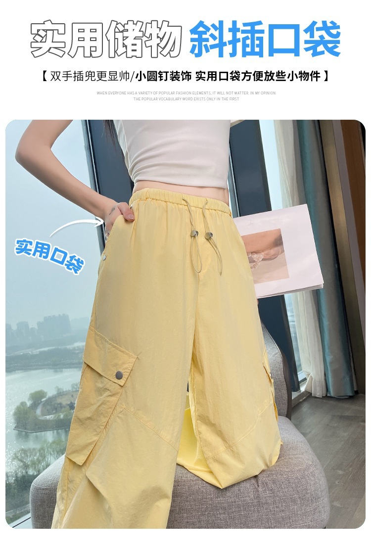 여성용 흰색 속건성 작업복 여름 얇은 2025 새로운 하이 웨이스트 레깅스 낙하산 바지 스포츠 와이드 레그 하이킹 바지