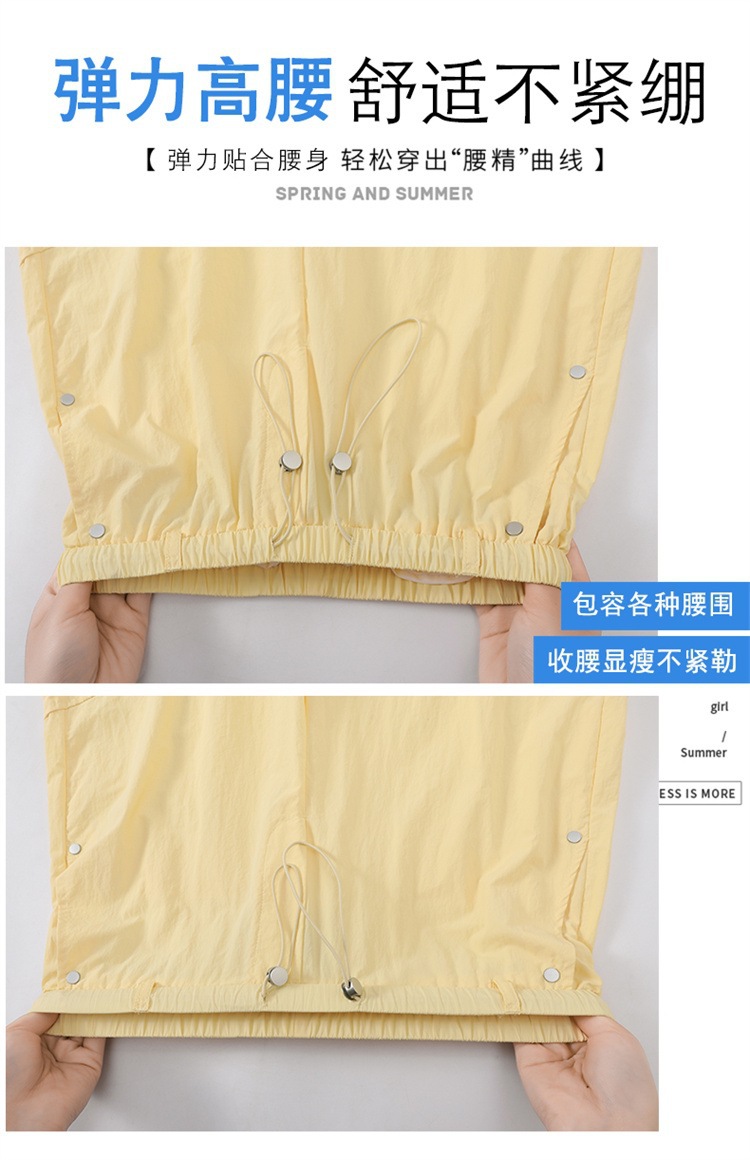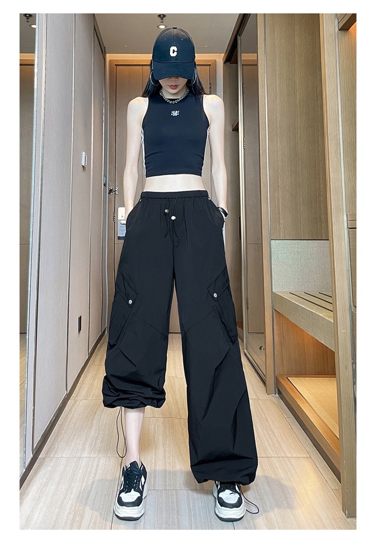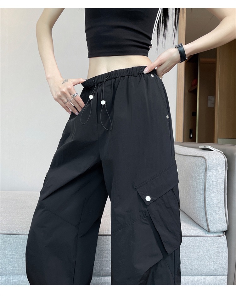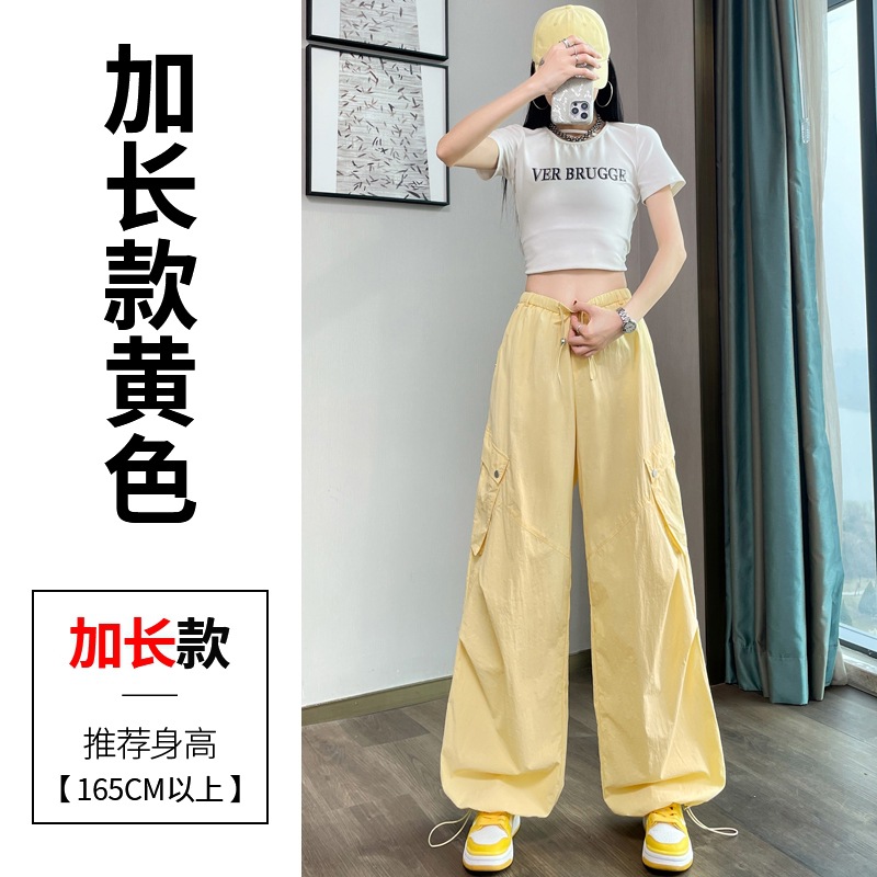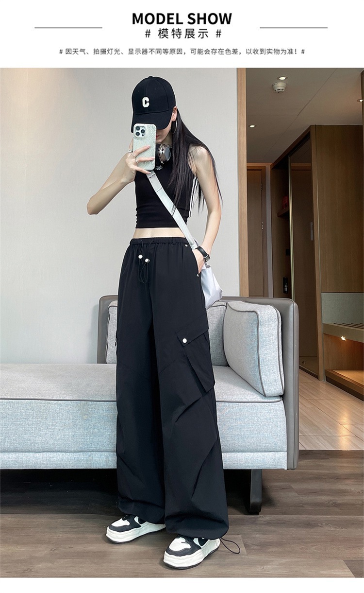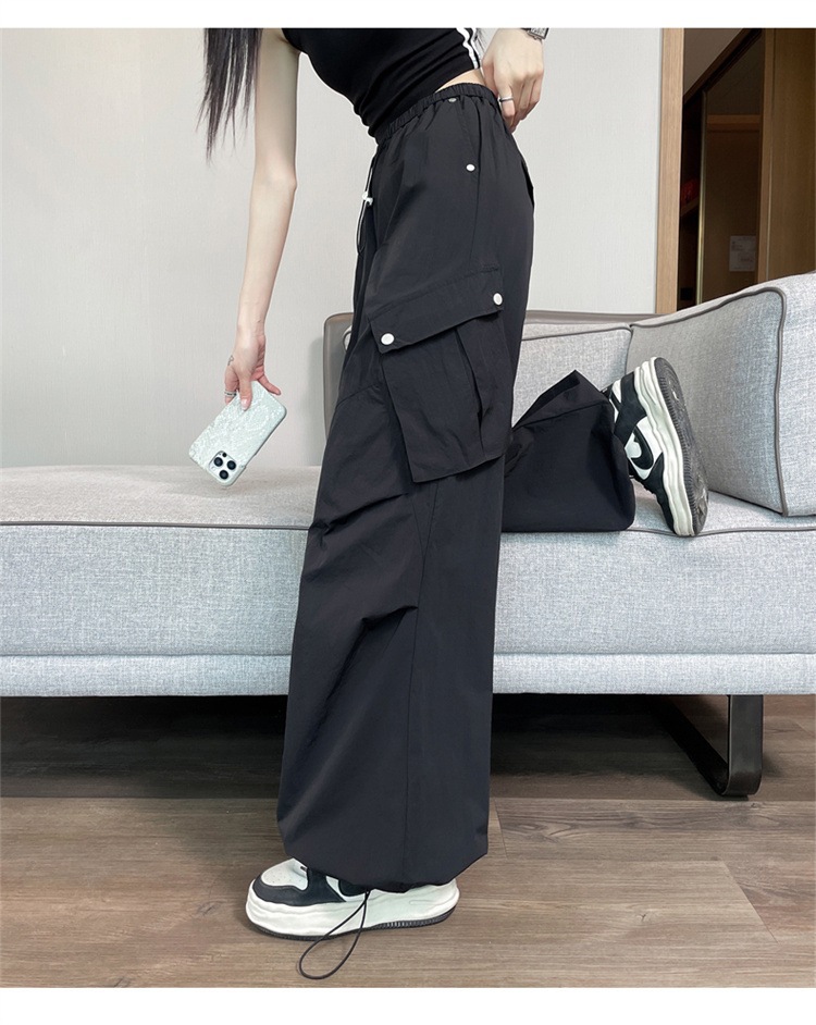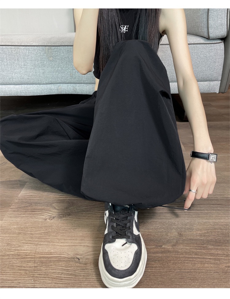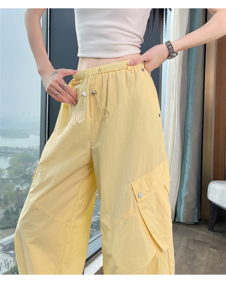 여성용 흰색 속건성 작업복 여름 얇은 2025 새로운 하이 웨이스트 레깅스 낙하산 바지 스포츠 와이드 레그 하이킹 바지