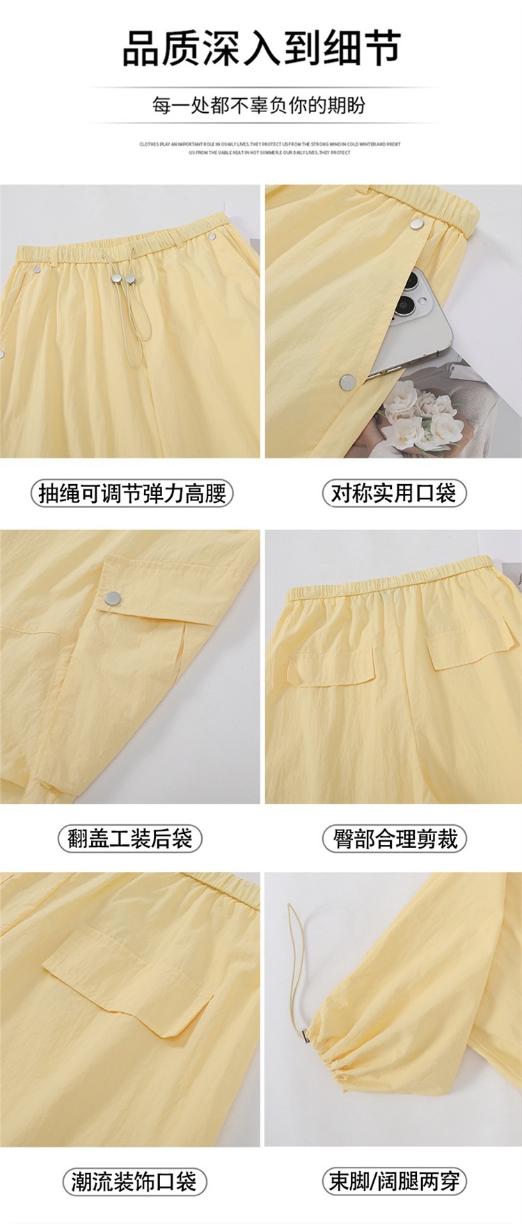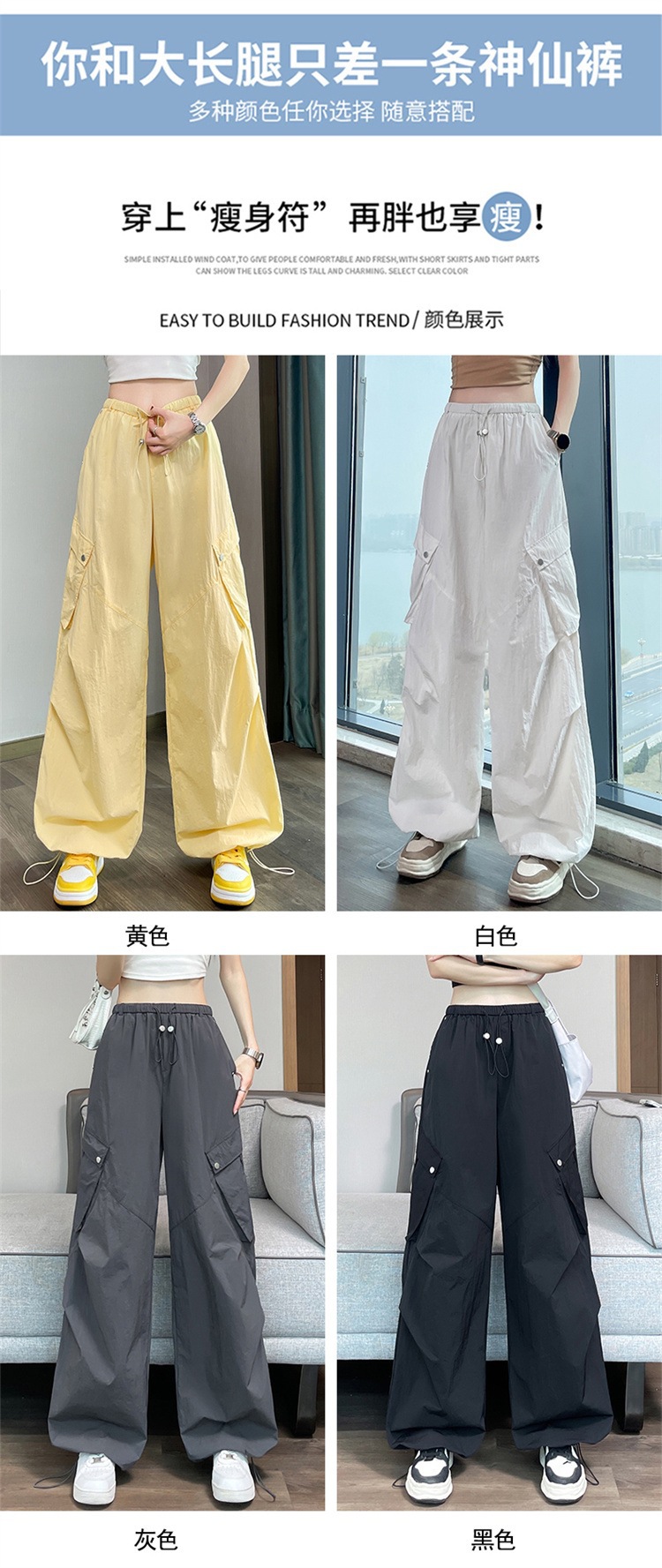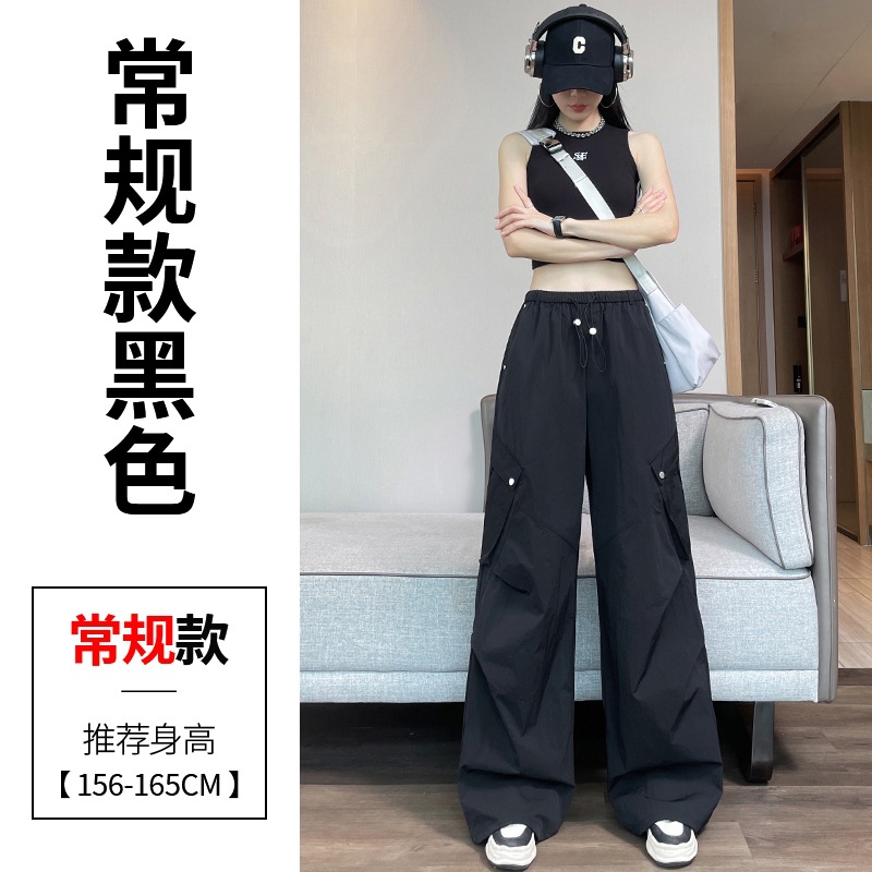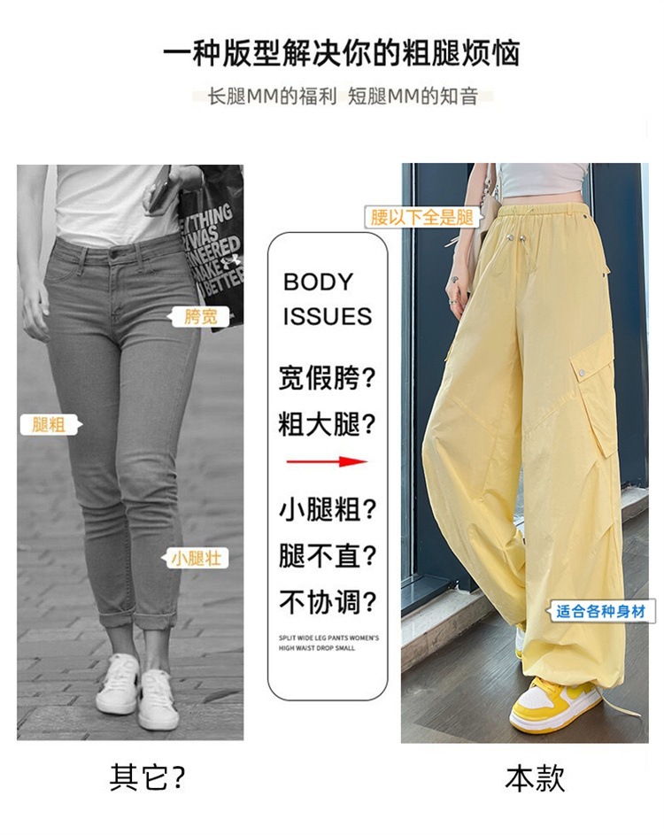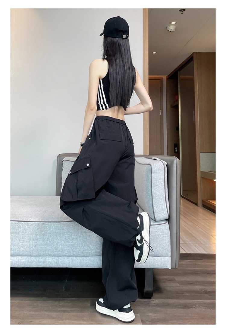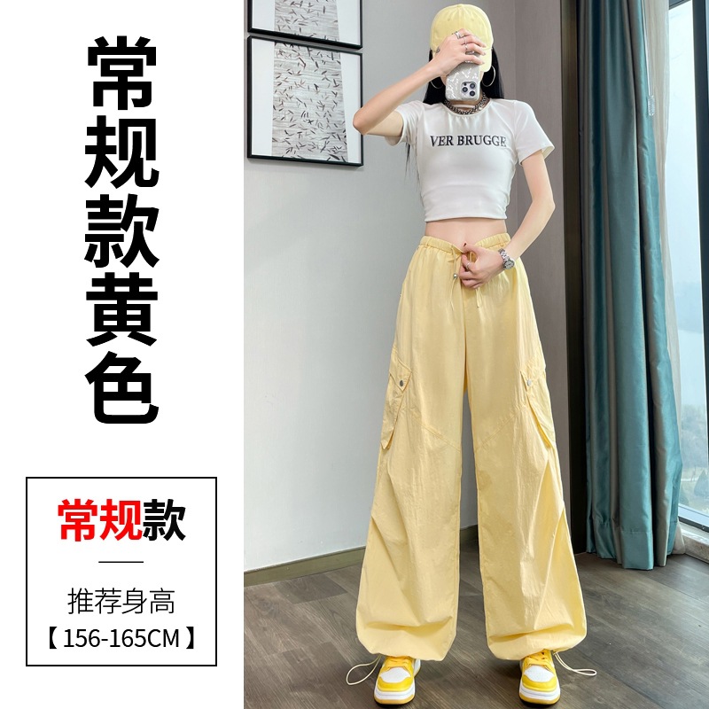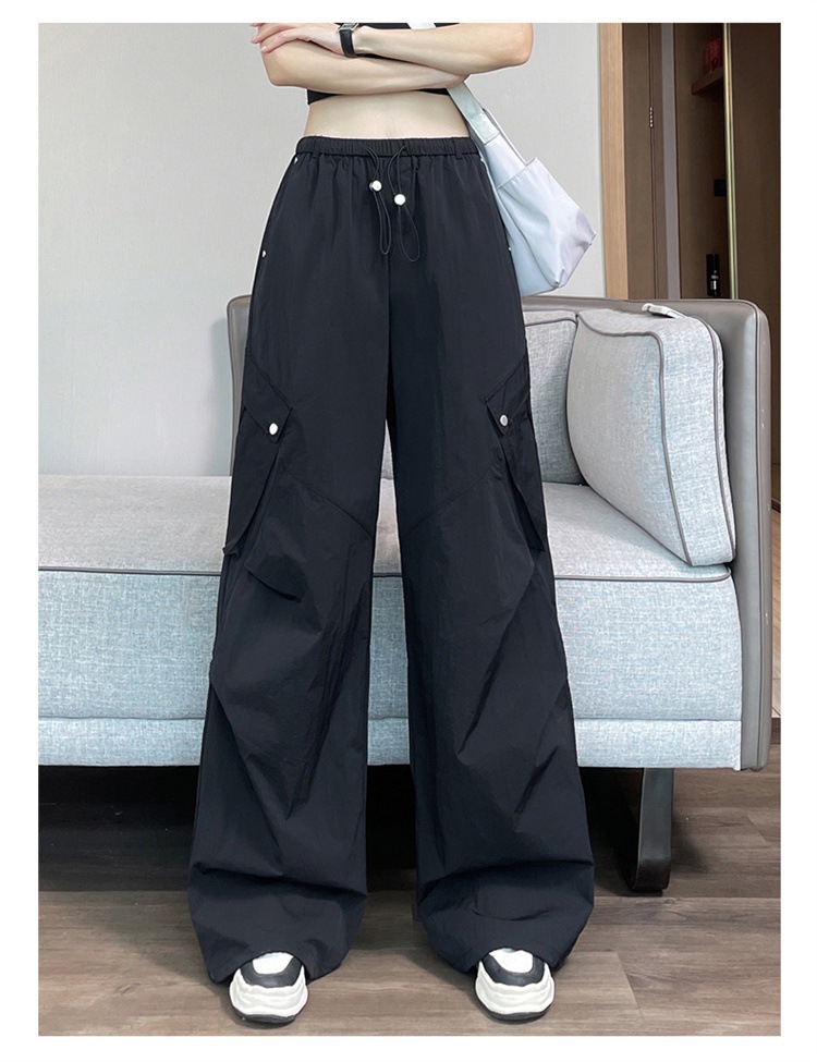 여성용 흰색 속건성 작업복 여름 얇은 2025 새로운 하이 웨이스트 레깅스 낙하산 바지 스포츠 와이드 레그 하이킹 바지