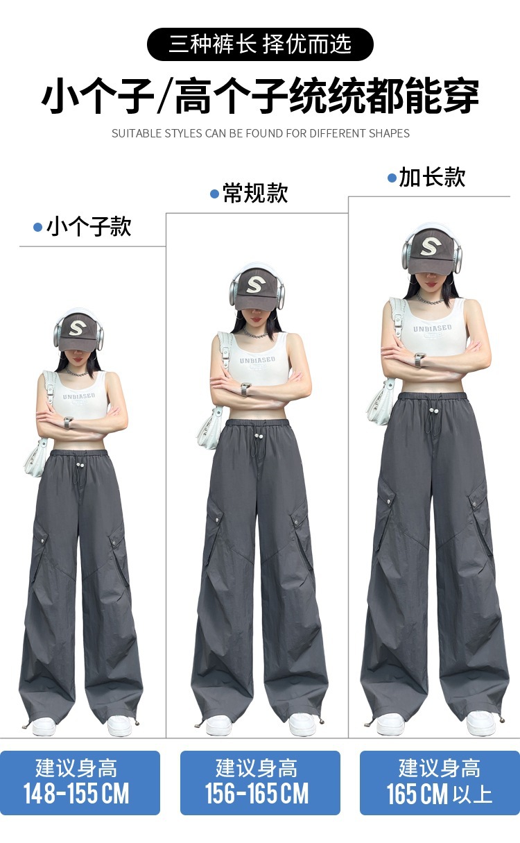 여성용 흰색 속건성 작업복 여름 얇은 2025 새로운 하이 웨이스트 레깅스 낙하산 바지 스포츠 와이드 레그 하이킹 바지스토어 가기