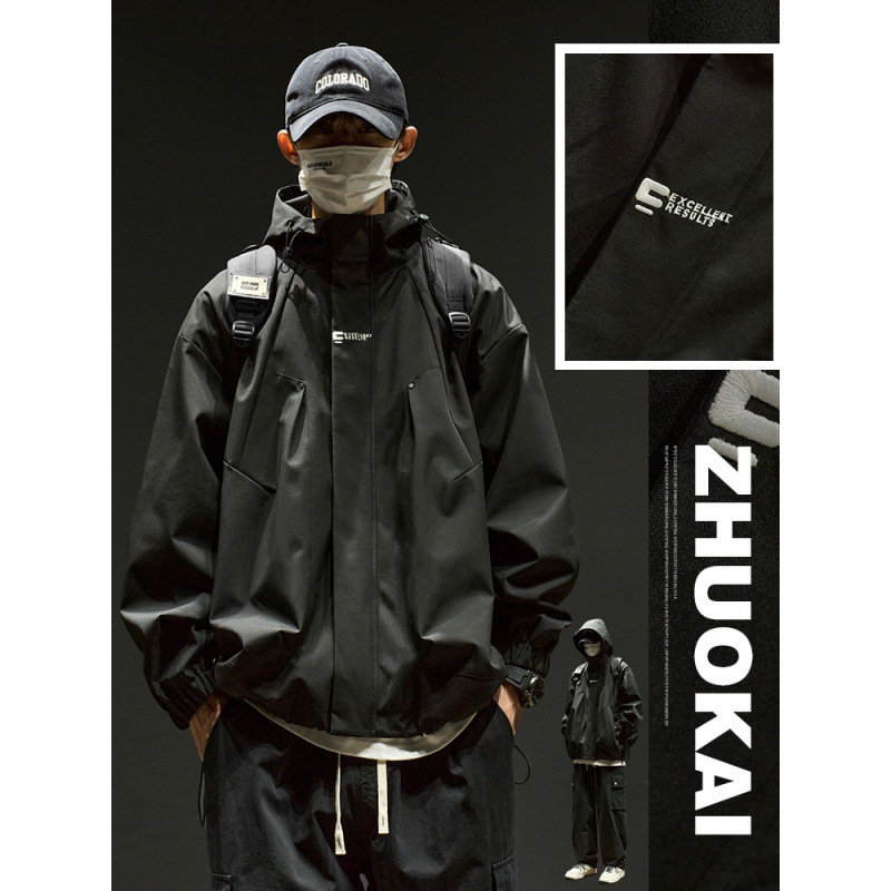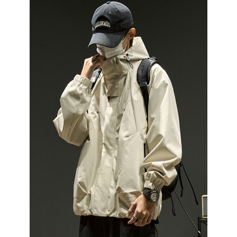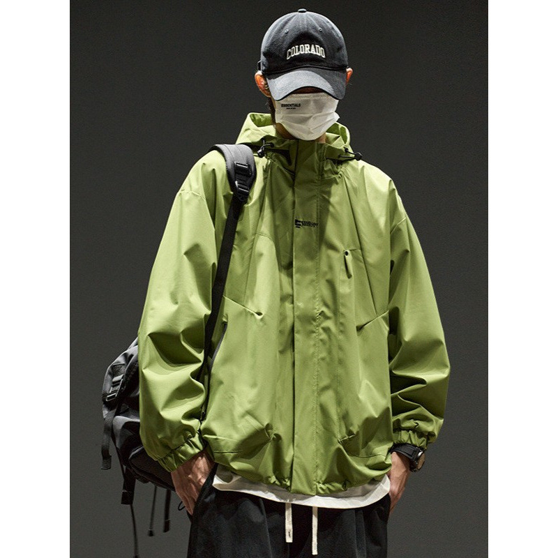 스트리트 레트로 심플 솔리드 컬러 기능성 후드 자켓 남성 트렌디 브랜드 루즈 커플 자켓 오버 사이즈