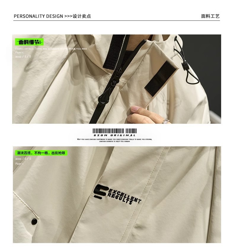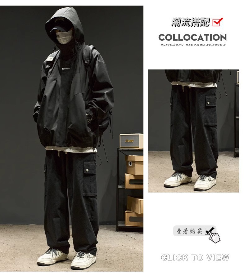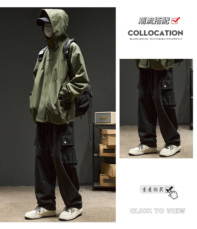 스트리트 레트로 심플 솔리드 컬러 기능성 후드 자켓 남성 트렌디 브랜드 루즈 커플 자켓 오버 사이즈스토어 가기