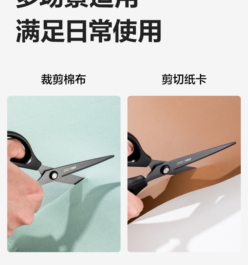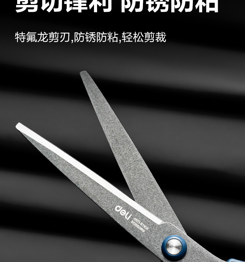 델리 0603-F 테프론 가위, 수제 안전 가위, 사무용 가위, 검정날 산업용 가위, 가정용 종이 절단