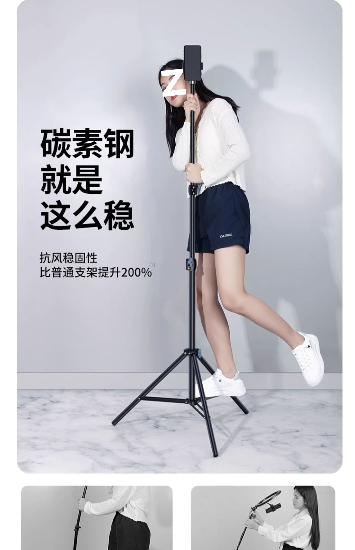 • 2.1m [상단 탄소강 브래킷 포함] 단일 카메라 [무료 Douyin 리모컨 + 보관 가방]