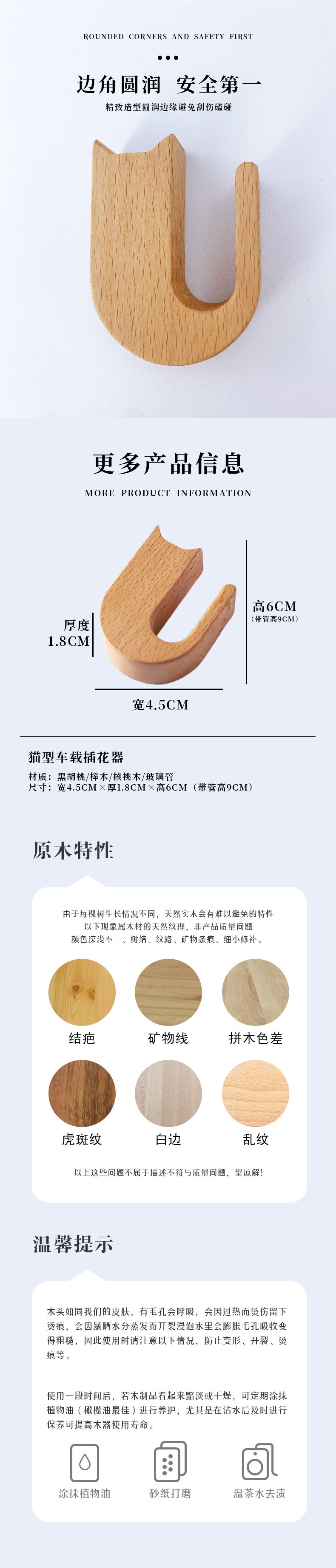 • 너도밤나무 고양이 모양 클립 일체형 수직 스타일
