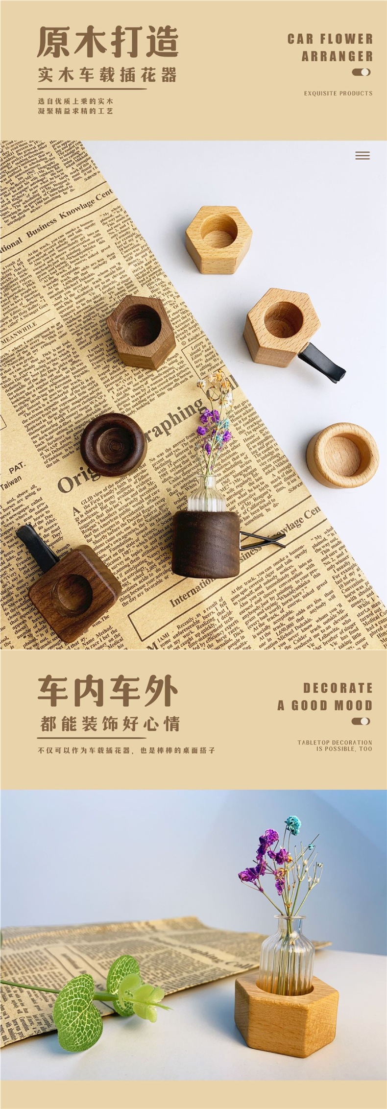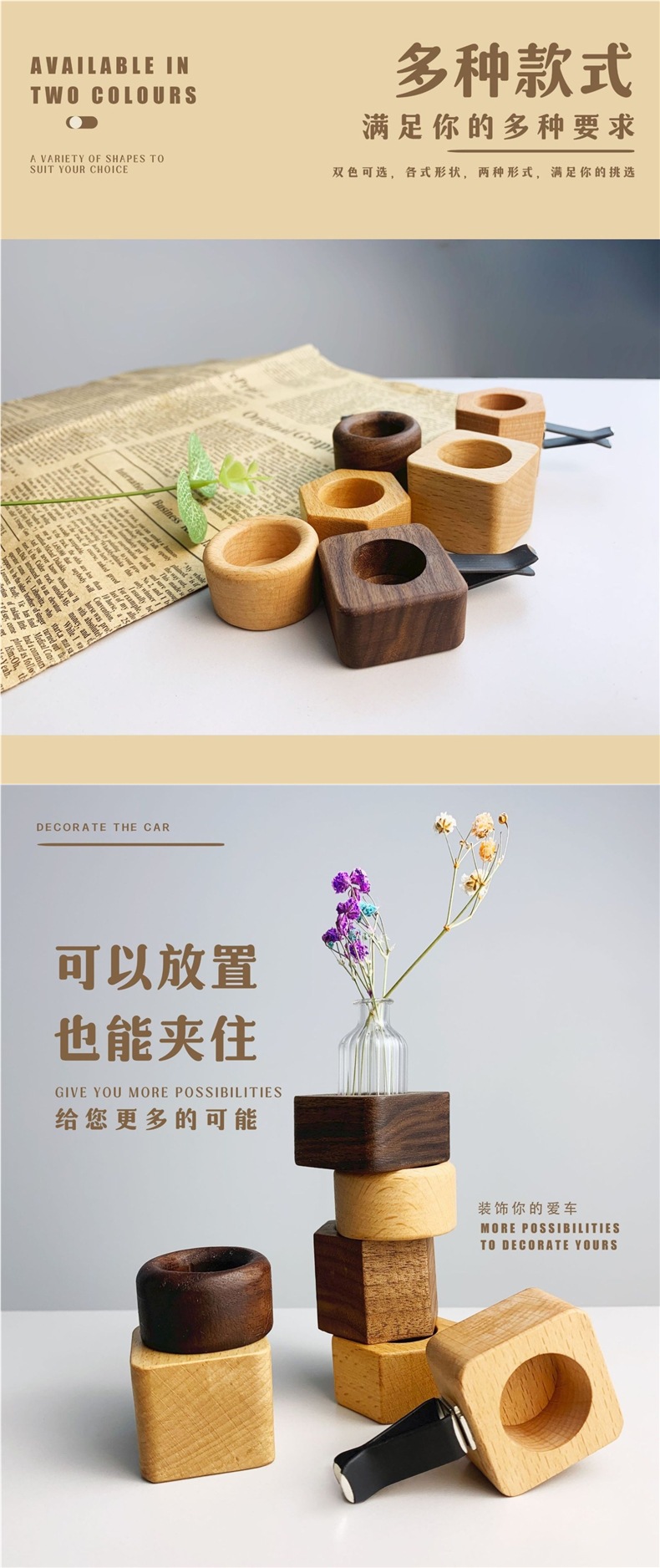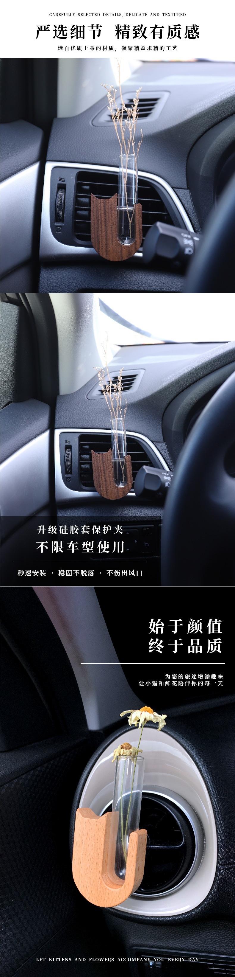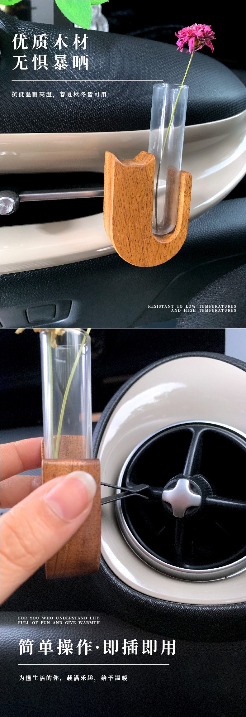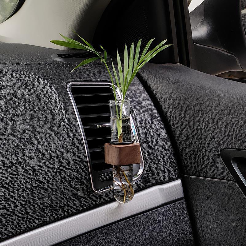 간단한 검은 호두 단단한 나무 자동차 수경 테스트 튜브 꽃꽂이 식물 자동차 인테리어 꽃병 에어컨 공기 배출구 장식스토어 가기