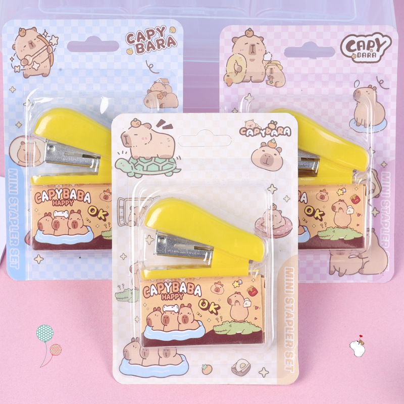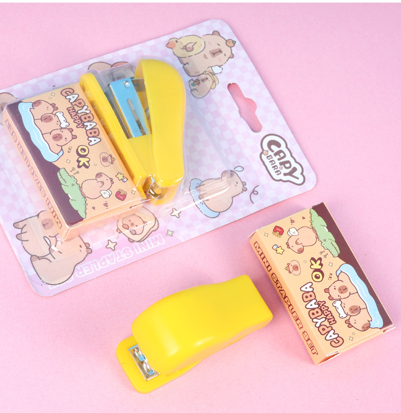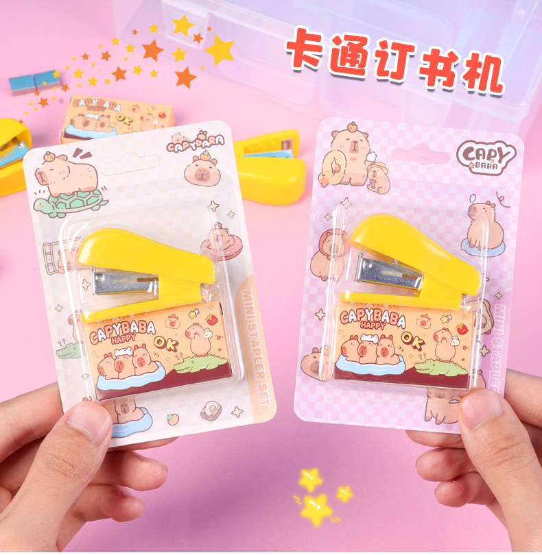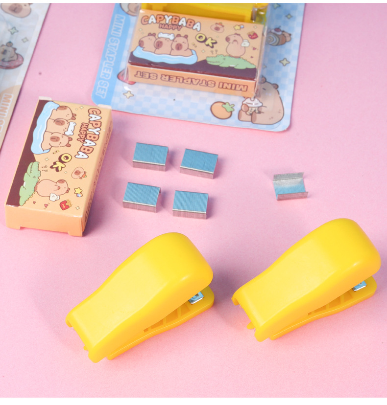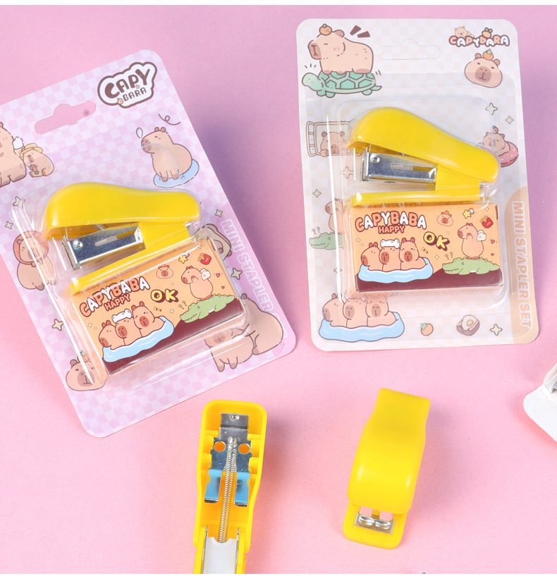 카피바라 귀여운 스테이플러 학생 만화 귀여운 애완 동물 미니 스테이플 리무버 학습 사무실 필수 작은 문구 도매스토어 가기