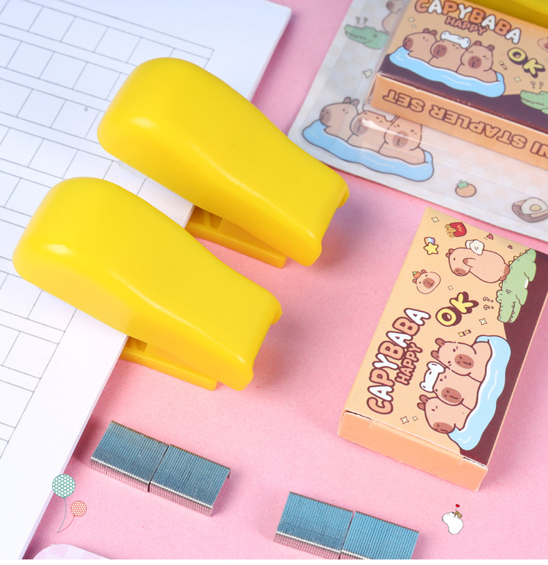 카피바라 귀여운 스테이플러 학생 만화 귀여운 애완 동물 미니 스테이플 리무버 학습 사무실 필수 작은 문구 도매