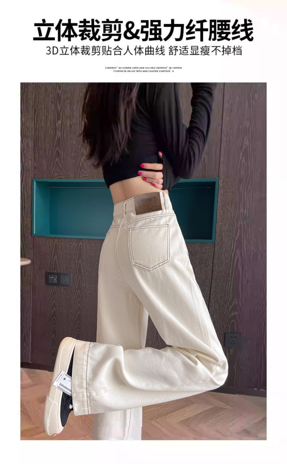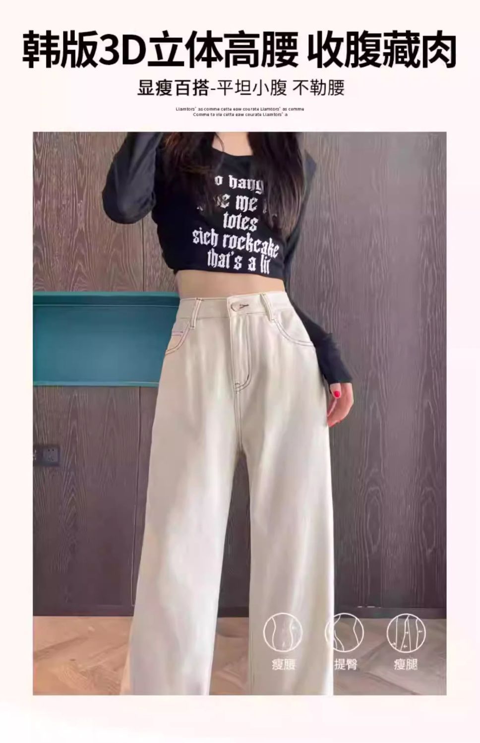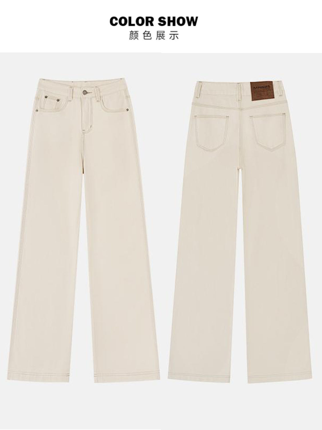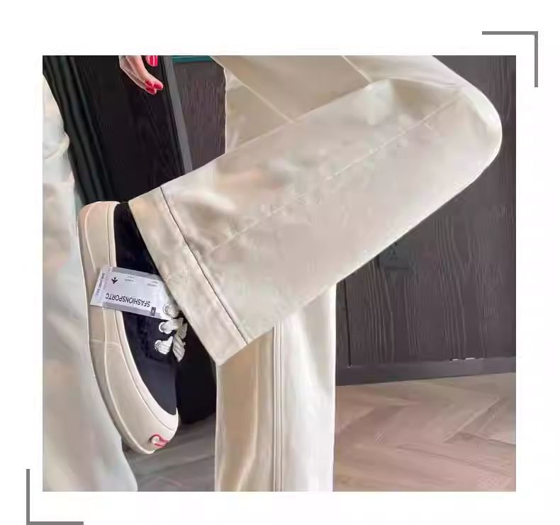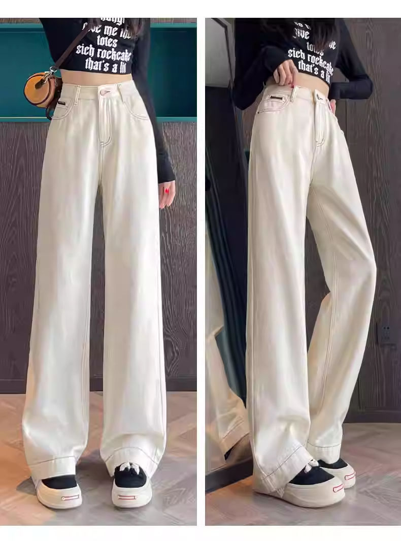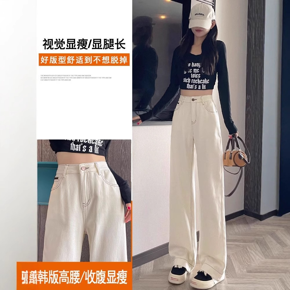여성용 살구색 하이웨이스트 와이드 레그 청바지, 봄, 가을 신상 슬림 스트레이트 드레이프 한국식 바닥 길이 바지스토어 가기