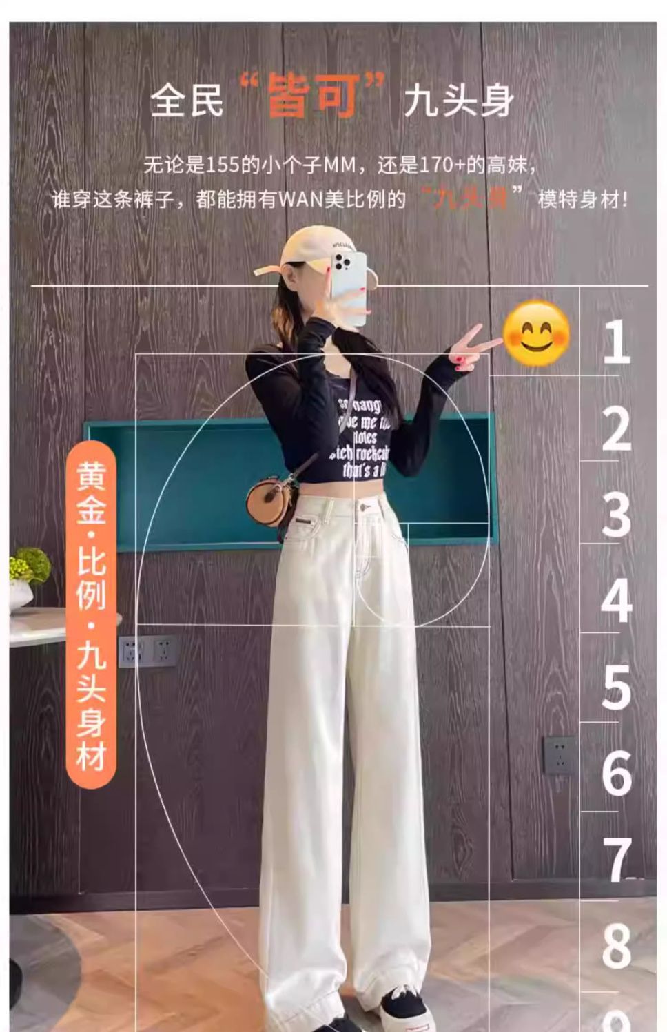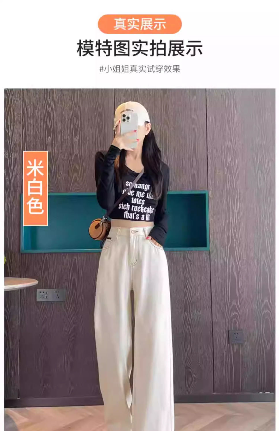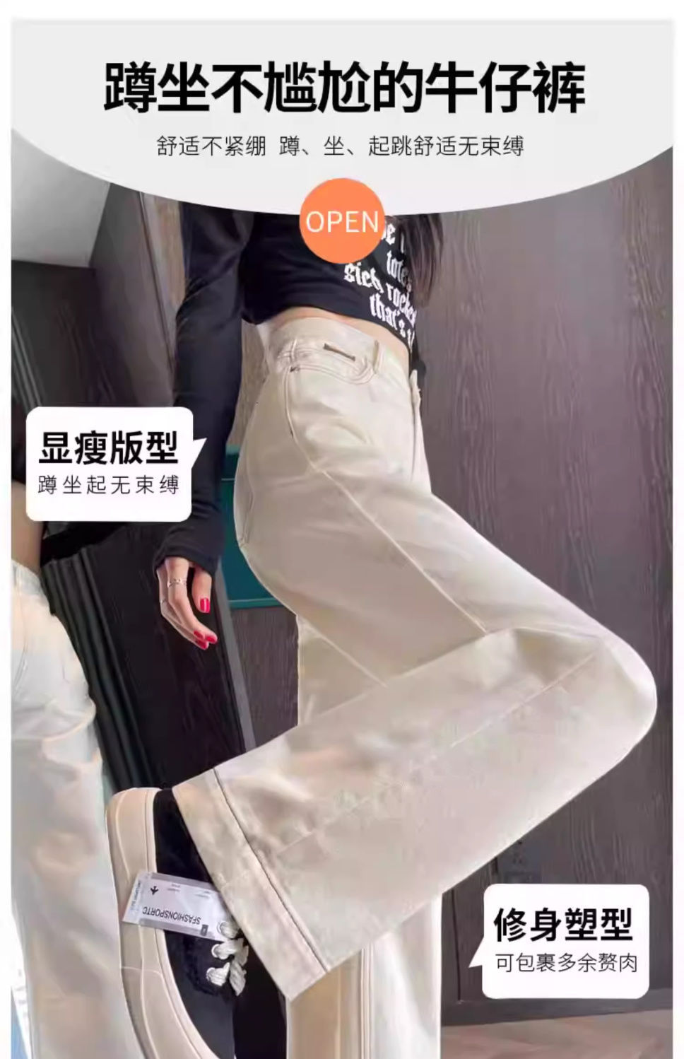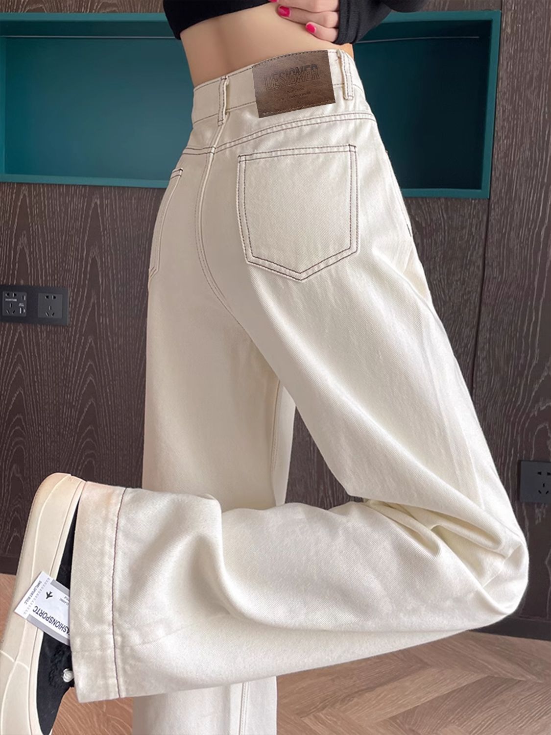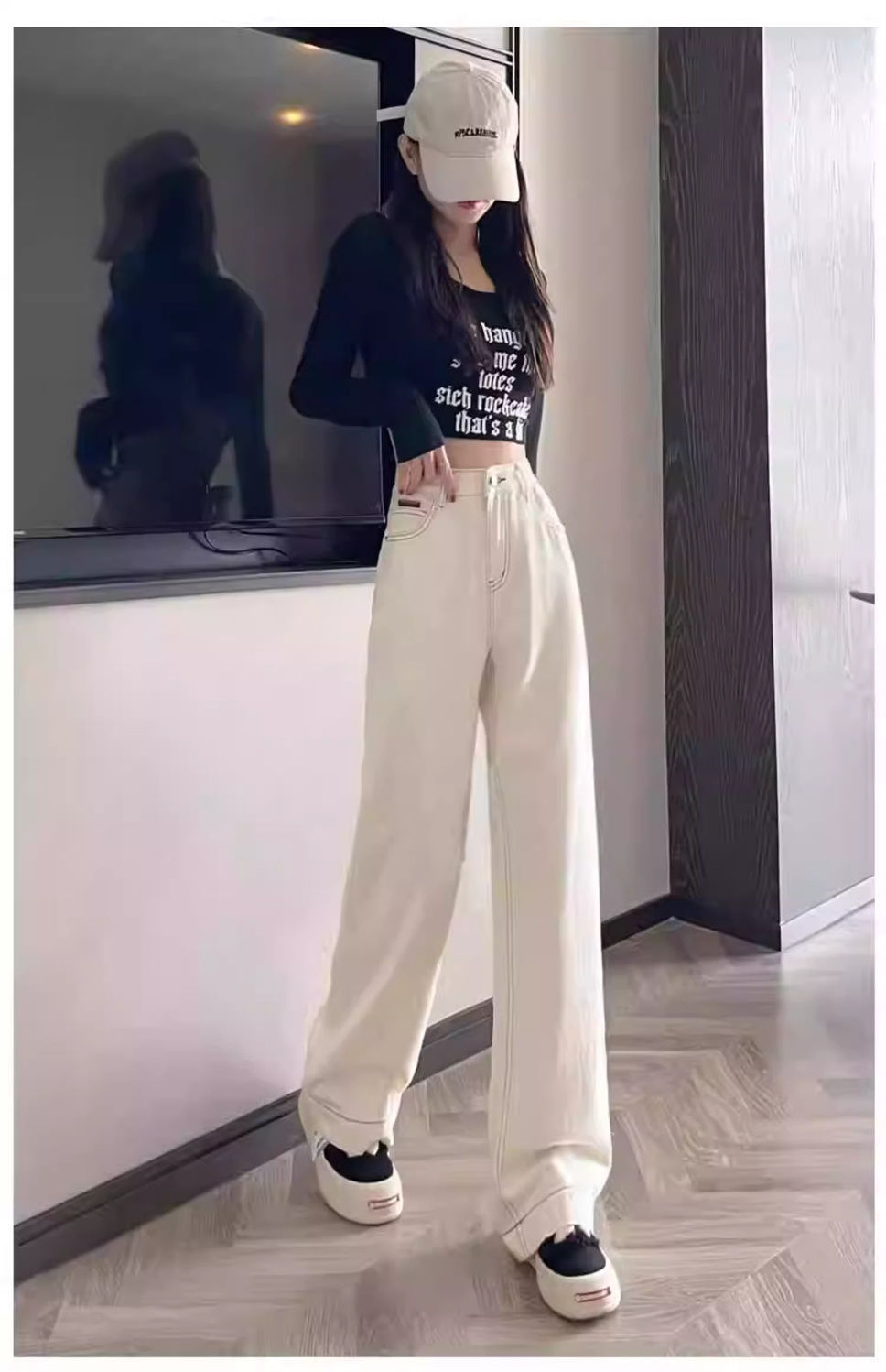 여성용 살구색 하이웨이스트 와이드 레그 청바지, 봄, 가을 신상 슬림 스트레이트 드레이프 한국식 바닥 길이 바지스토어 가기
