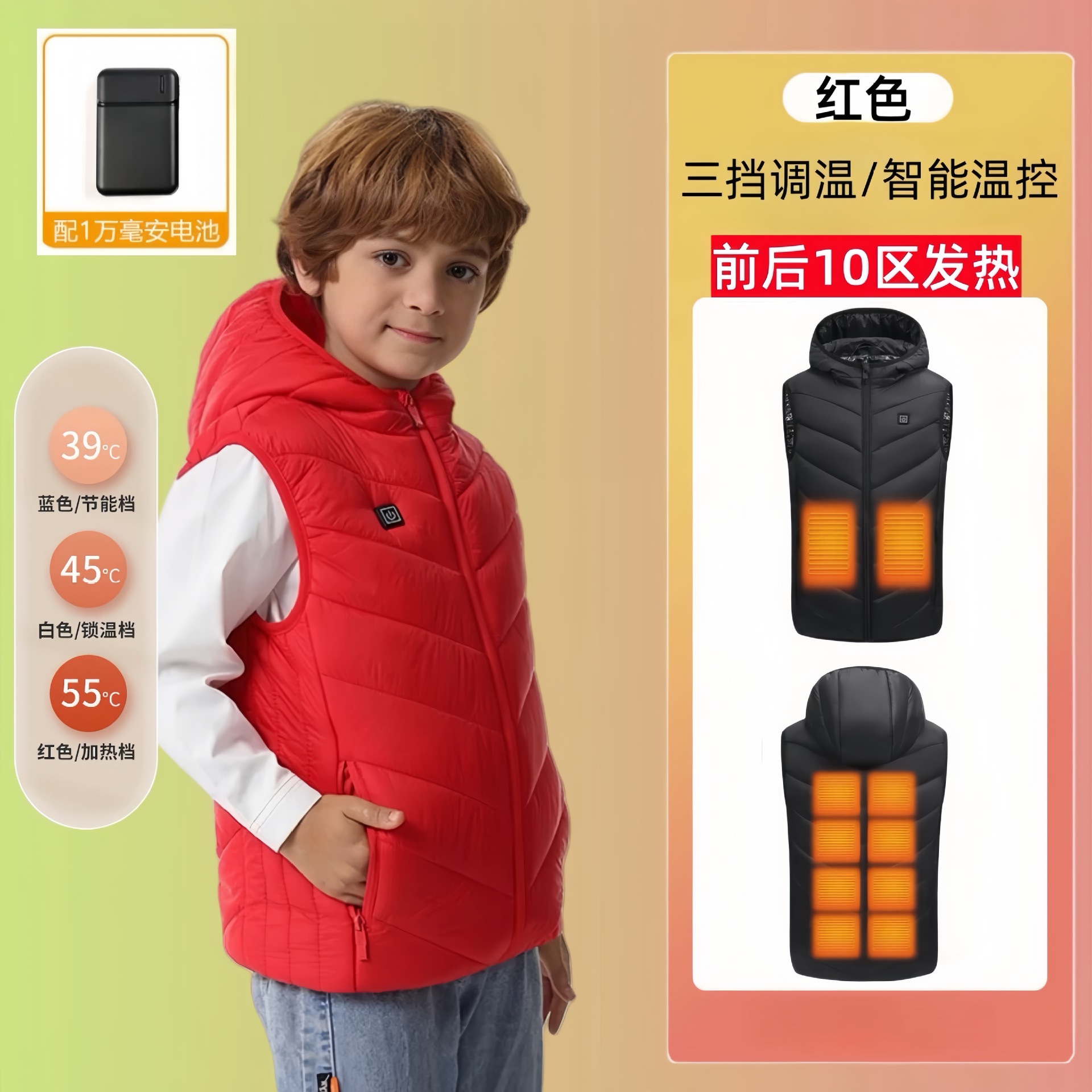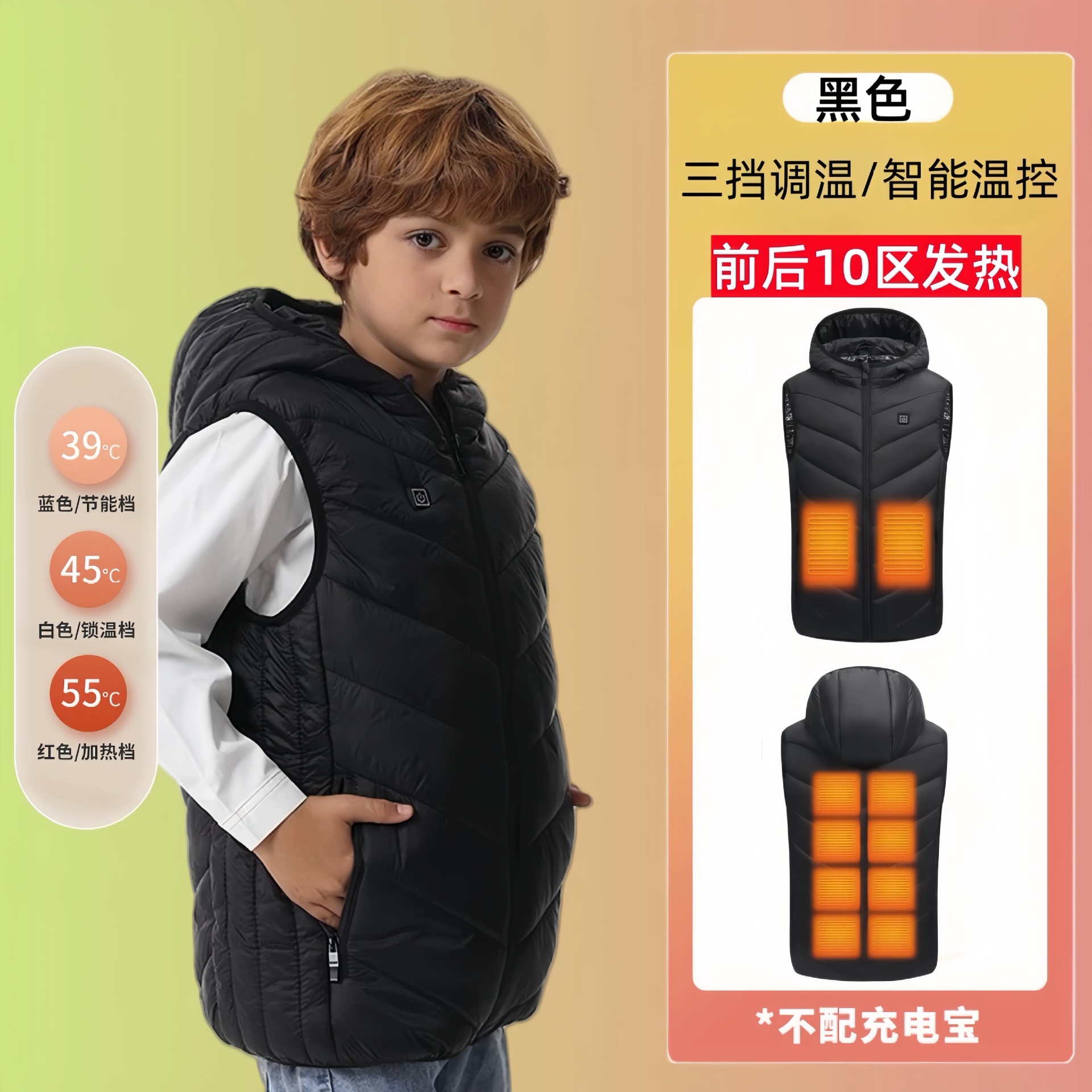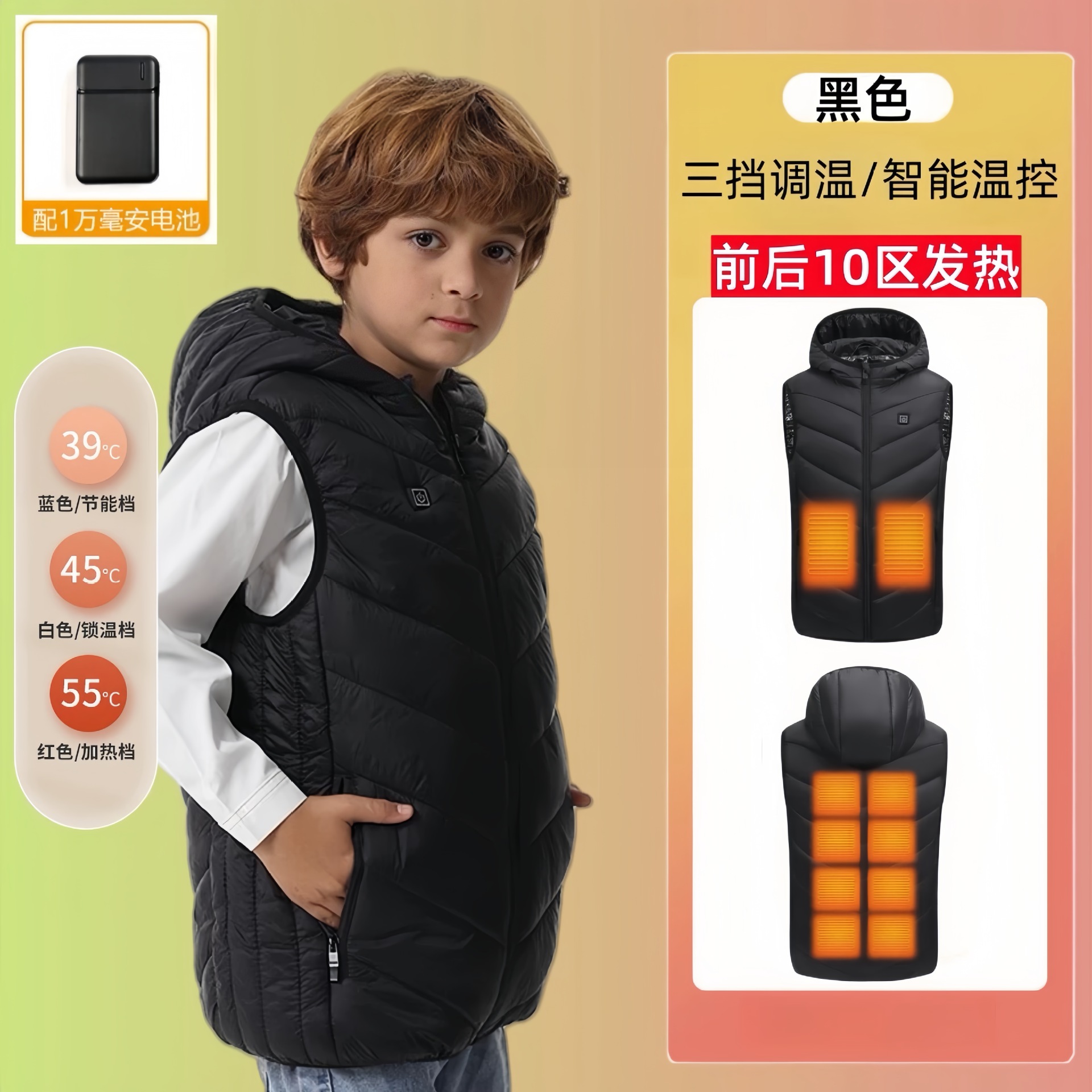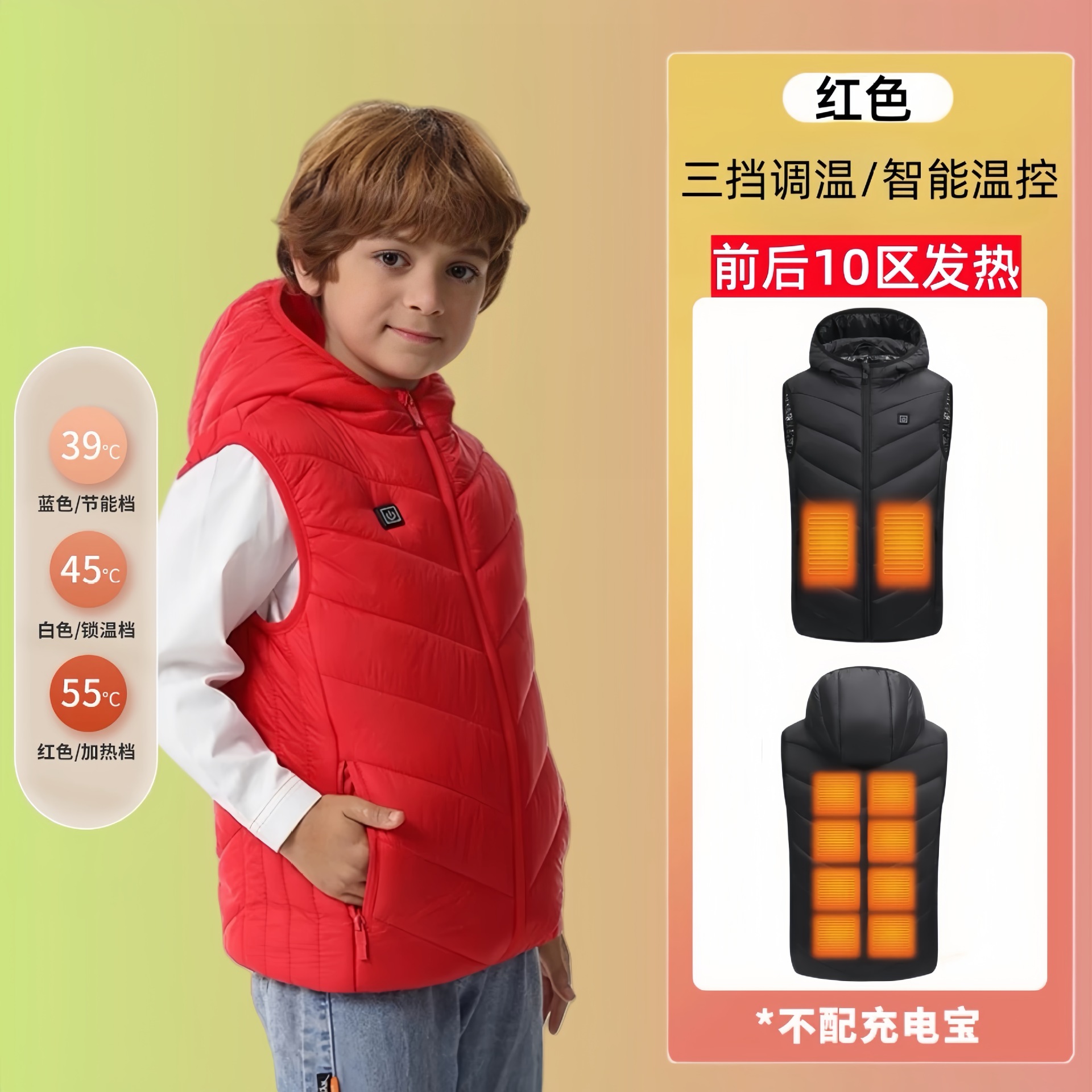 크로스보더 겨울용 어린이 전기난방 조끼 USB 단일 제어 10존 지능형 온도조절 아동용 보온 조끼 외부 착용 가능