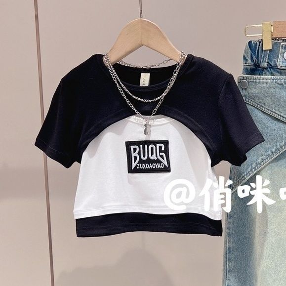 여자 여름 정장 2024 새로운 유행 어린이 스타일 티셔츠 여름 스타일 아기 소녀 유행 청바지 투피스 세트