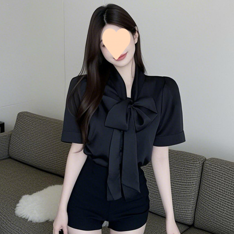 여성을위한 하이 엔드 블랙 쉬폰 셔츠 여름 새로운 작은 보우 셔츠 느슨한 전문 통근 탑