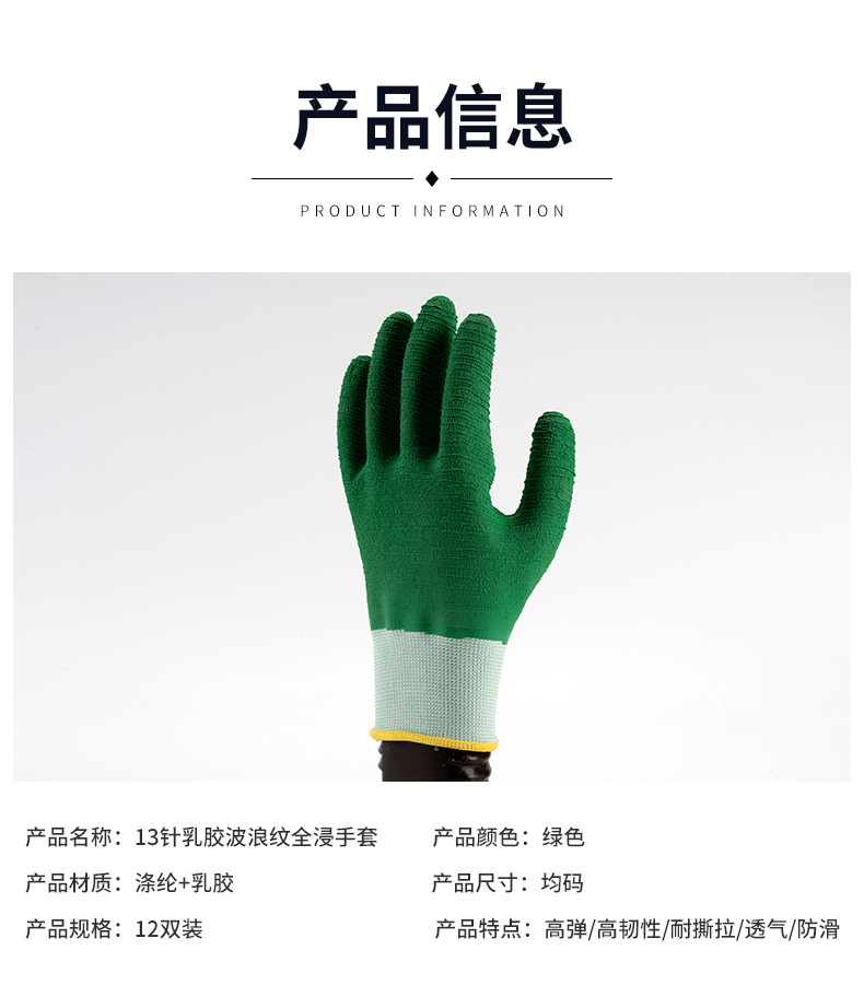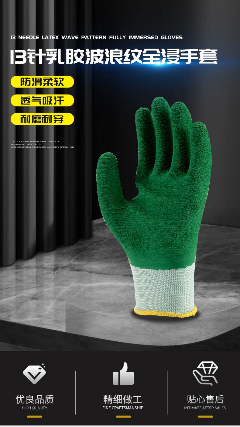 국경 간 도매 13 바늘 라텍스 웨이브 패턴 완전 침수 장갑 라텍스 폼 노동 보호 장갑 통기성 내마모성 장갑스토어 가기